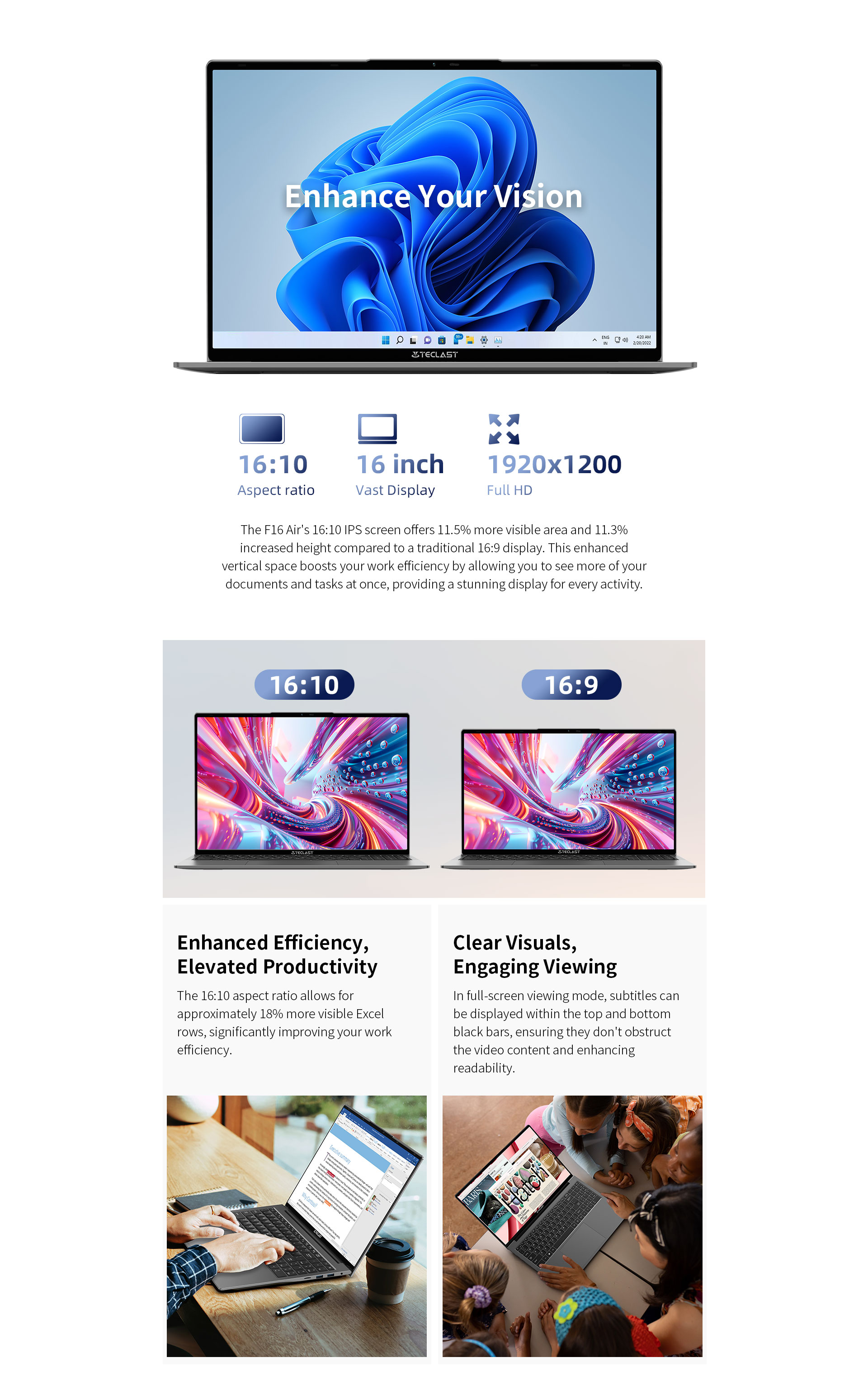 - 16-inch Vast Display with 1920x1200 Full HD