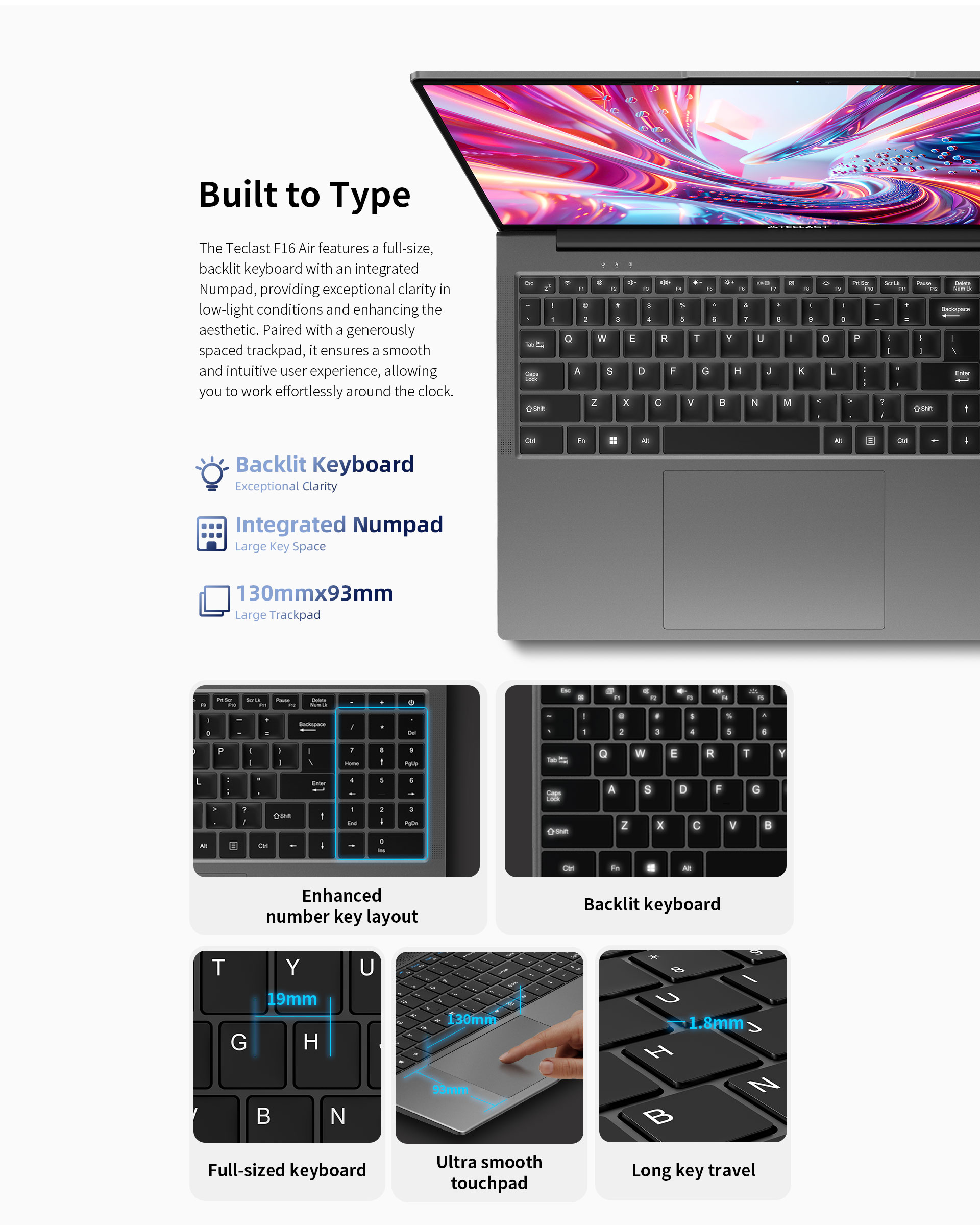 - Backlit Keyboard with 130mm X 93mm Large Trackpad
