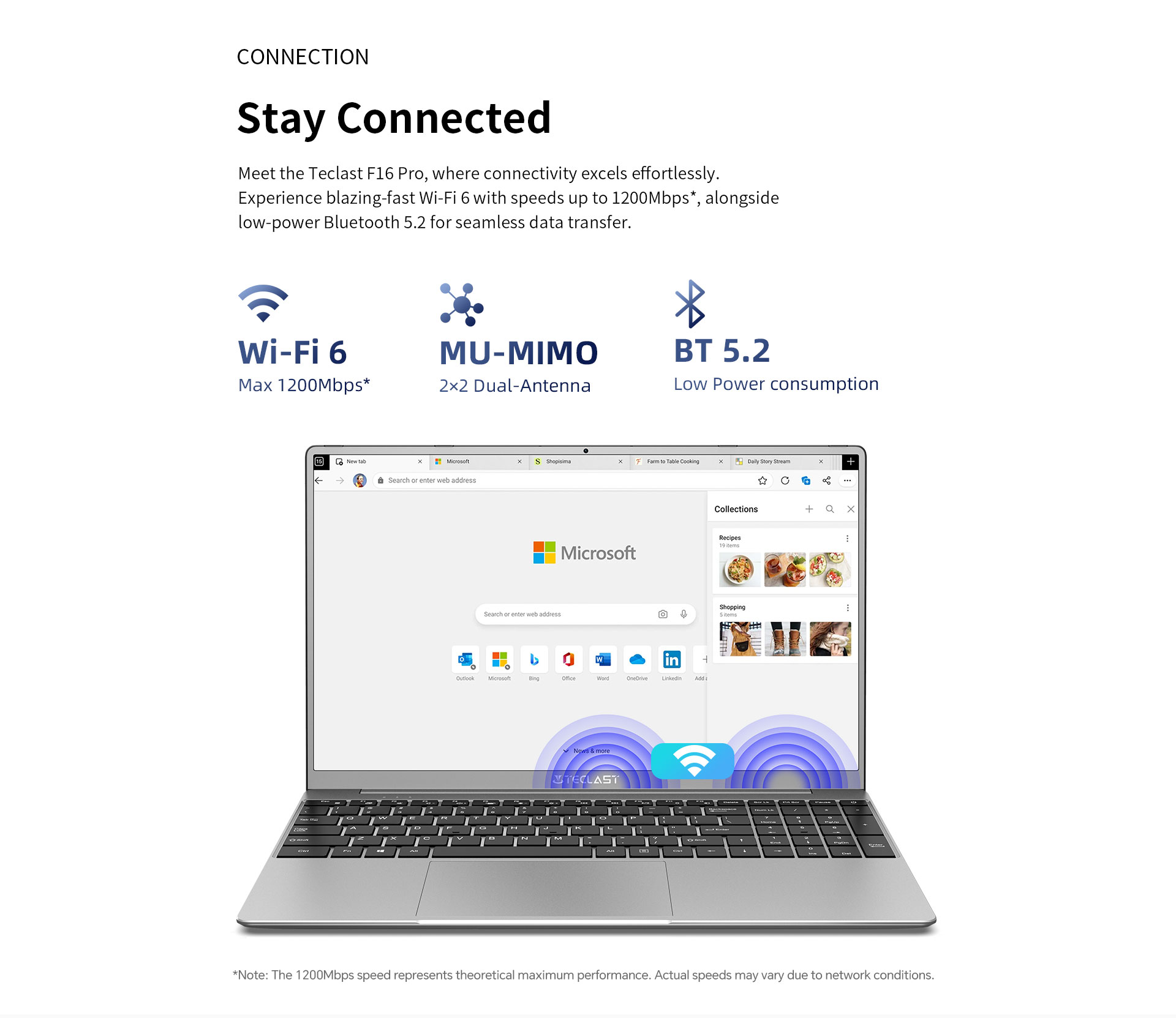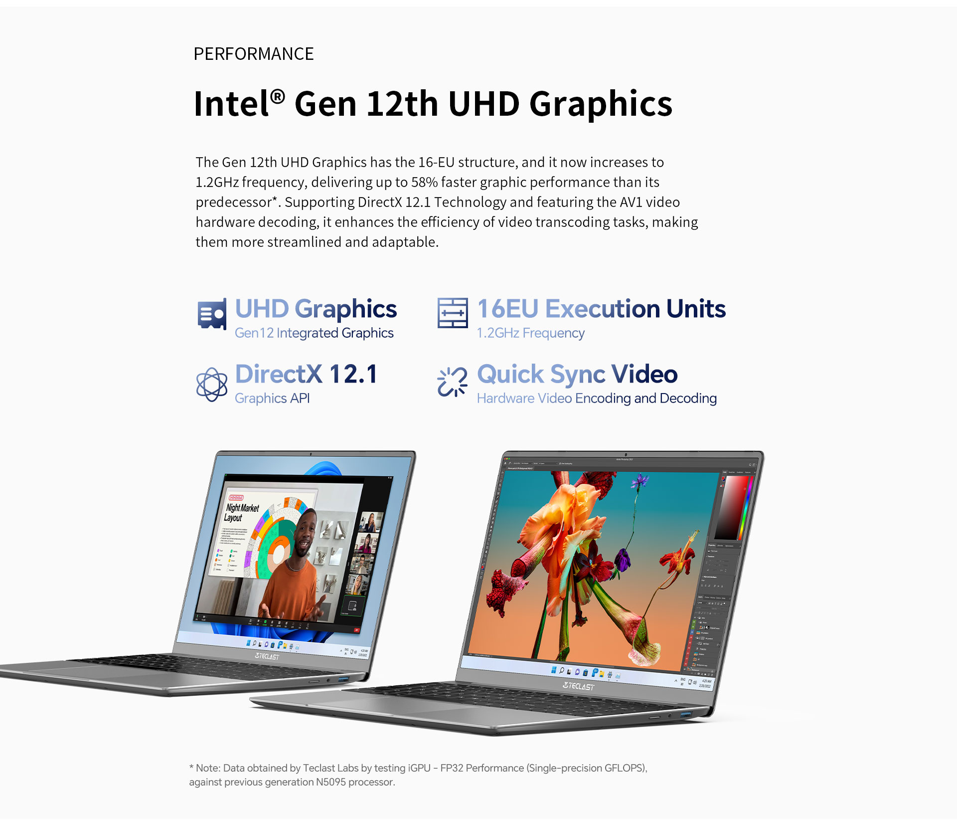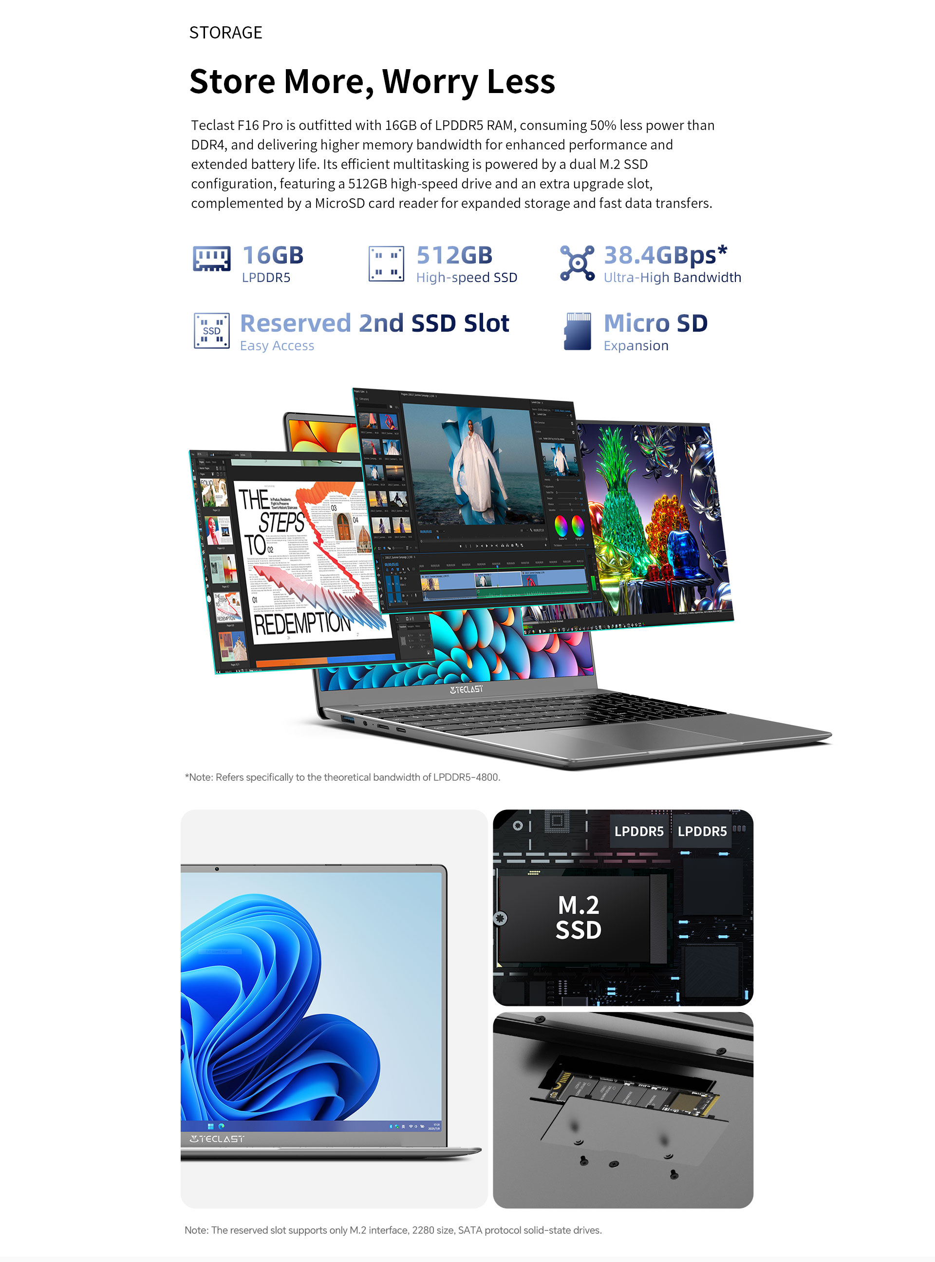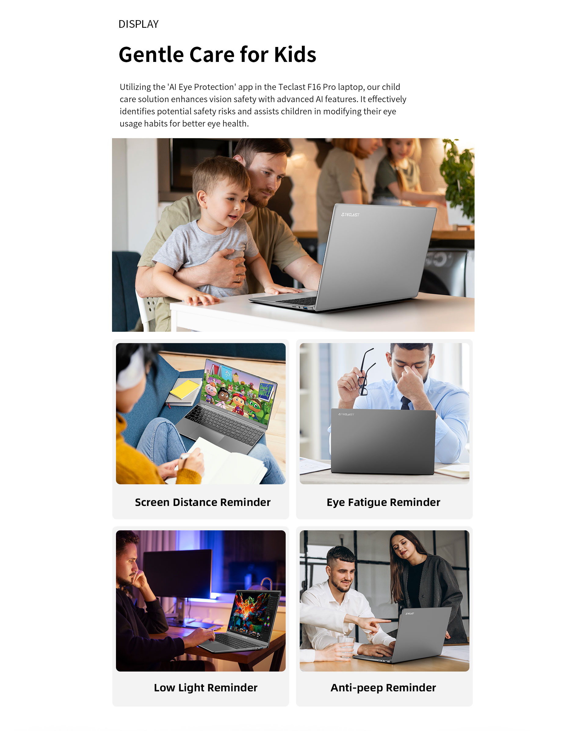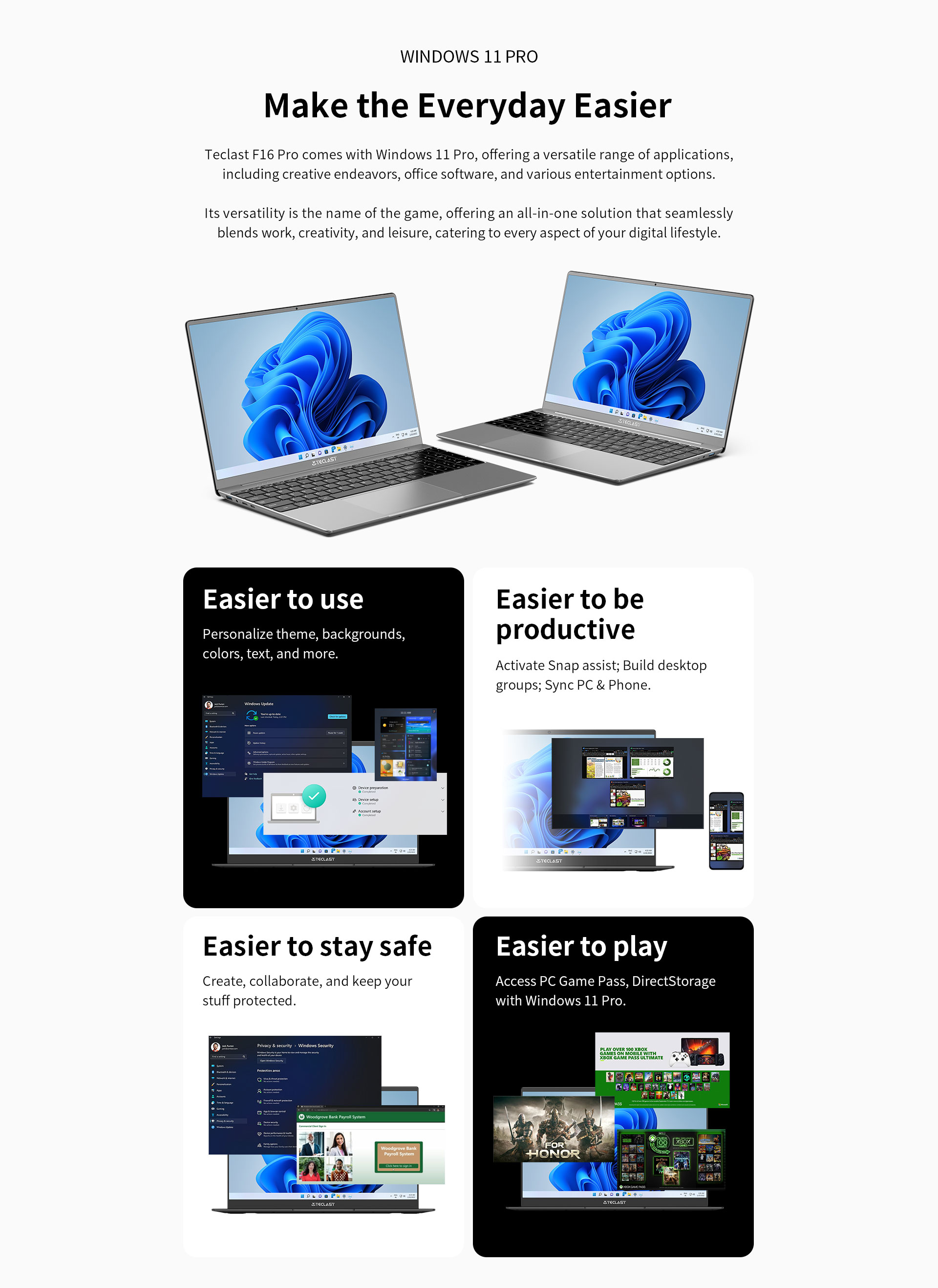 [Intel® Gen 12th N95] Powered by the Intel® Gen 12th Alder Lake N95 Processor, the F16 Pro reaches up to 3.4GHz with Turbo Boost, delivering exceptional speed and responsiveness for multitasking and demanding applications.