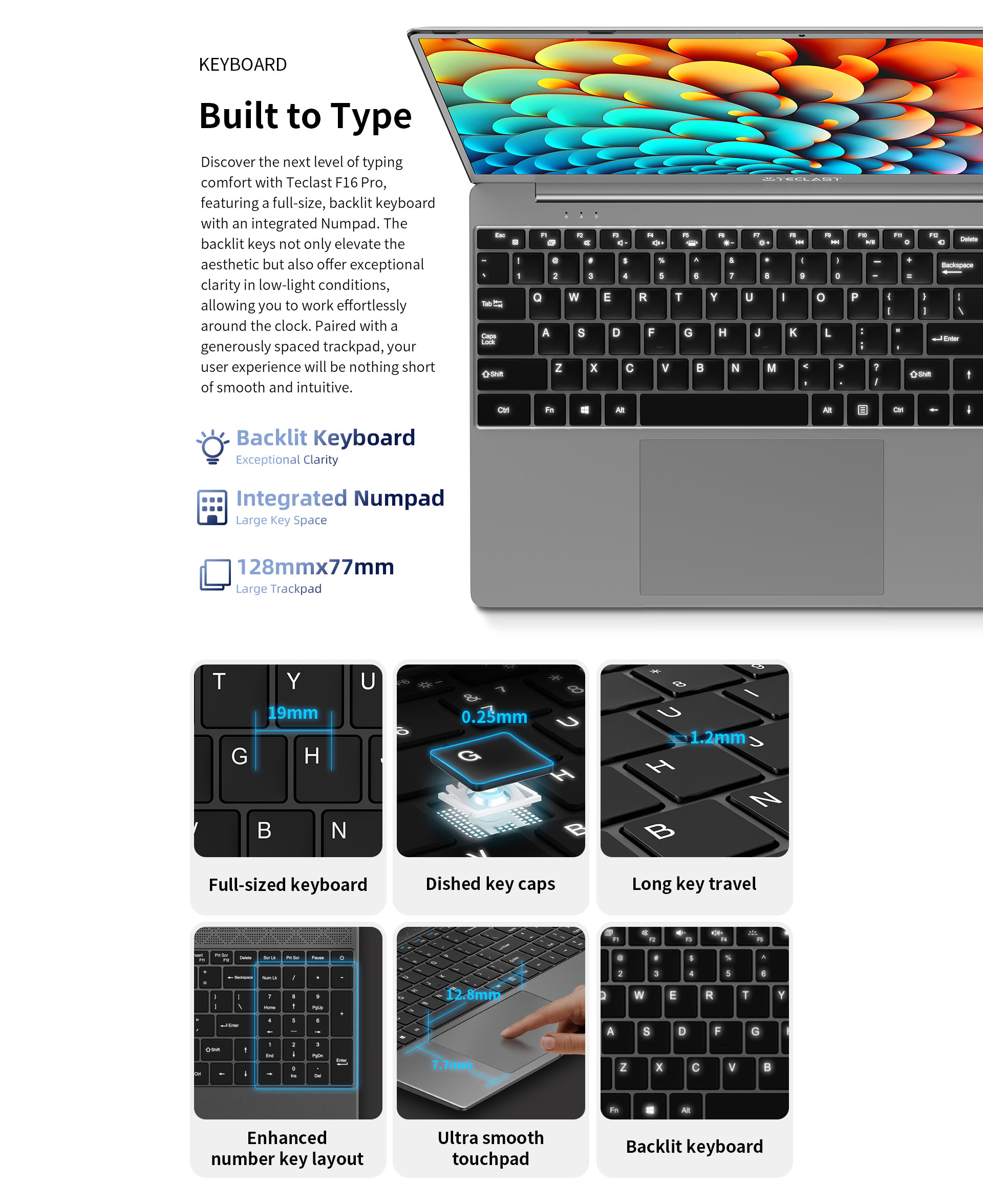 [Backlit Keyboard] Enhance your typing experience with the backlit keyboard and enjoy seamless navigation with the 128mmx77mm large trackpad, designed for efficiency and comfort.
