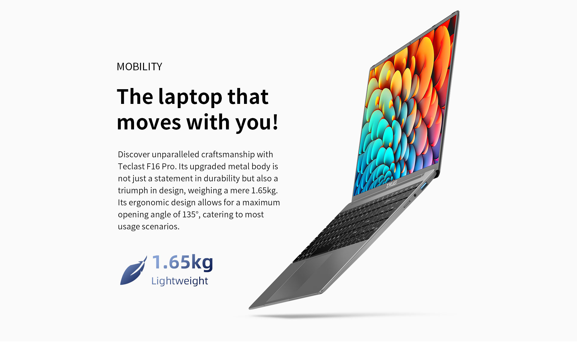 [Lightweight & Portability] Weighing just 1.65kg and featuring a 135° ergonomic design, the F16 Pro is not only stylish but also comfortable to use, making it a great companion for those on the move.
