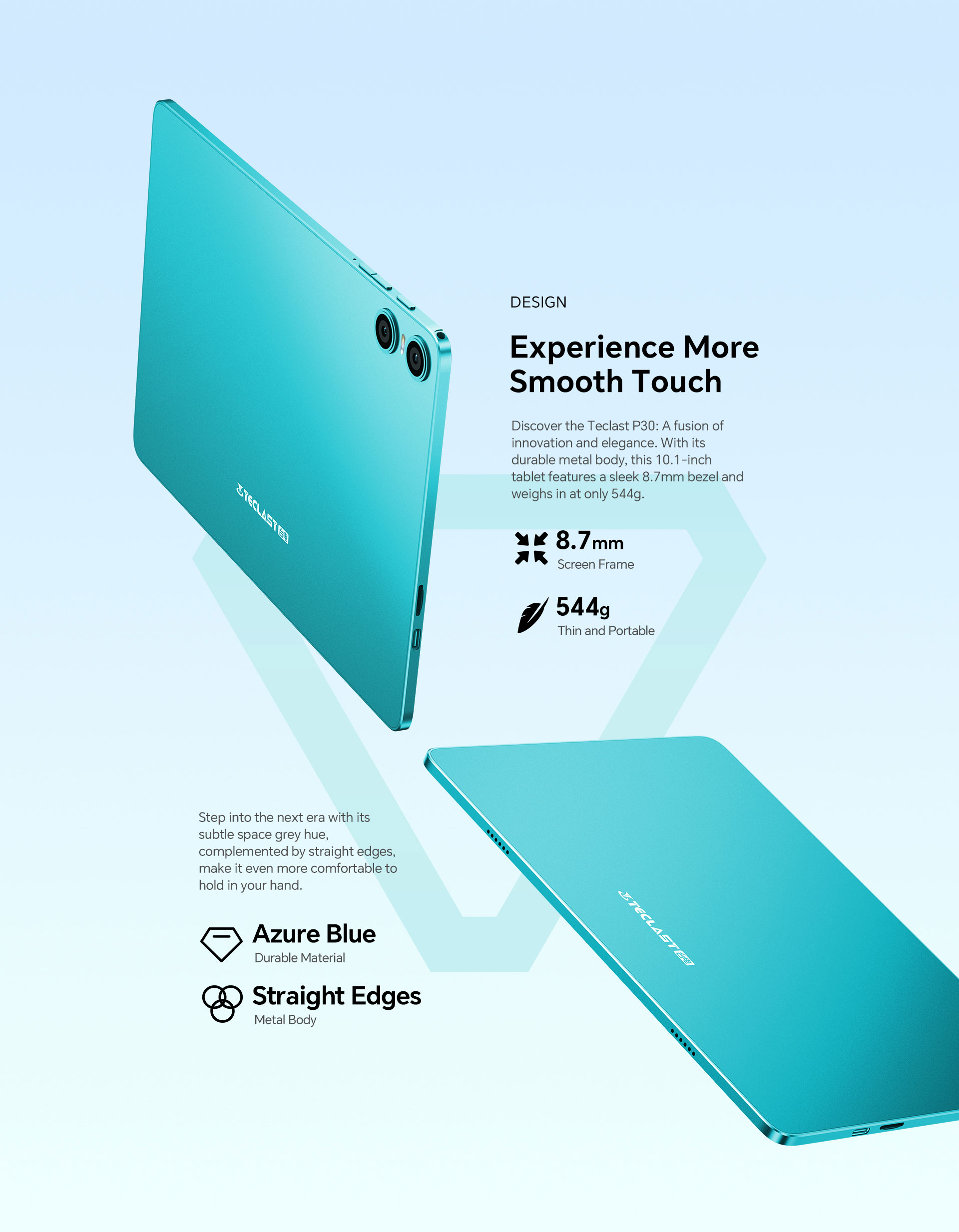 [Elegance in Design] Adorned with an azure blue Body, the P30 tablet exemplifies elegance and durability, offering a premium feel and robust build quality.