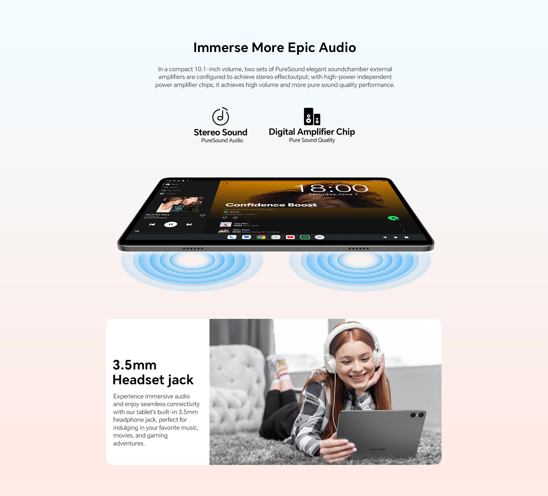 [Global Connectivity] Enjoy reliable wireless connectivity with Dual-band Wi-Fi and BT 5.0, providing power-efficient audio streaming to compatible wireless headphones.