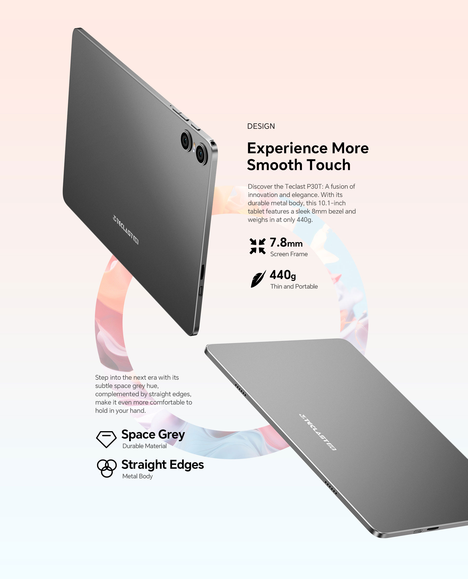 [Elegance in Design] Adorned with an azure blue Body, the P30T tablet exemplifies elegance and durability, offering a premium feel and robust build quality.
