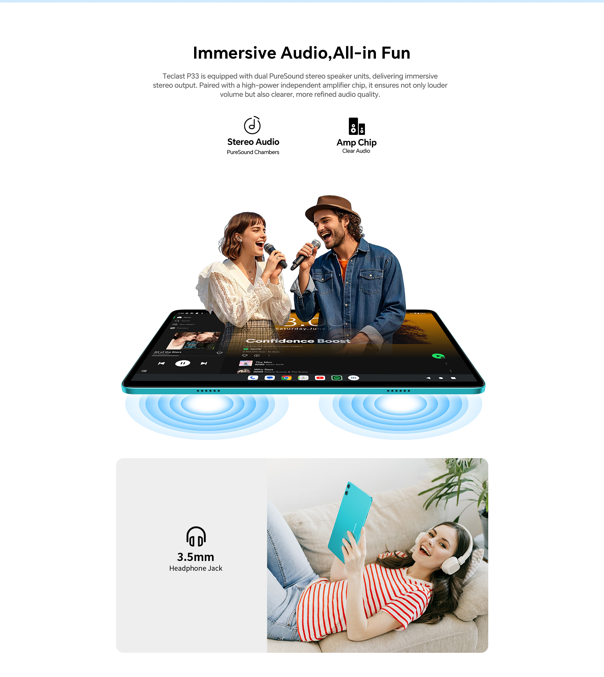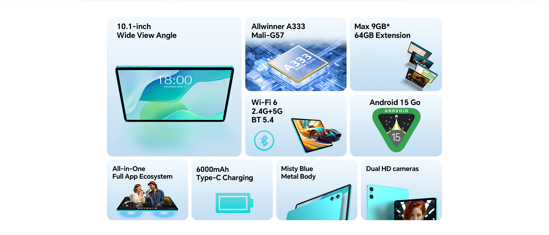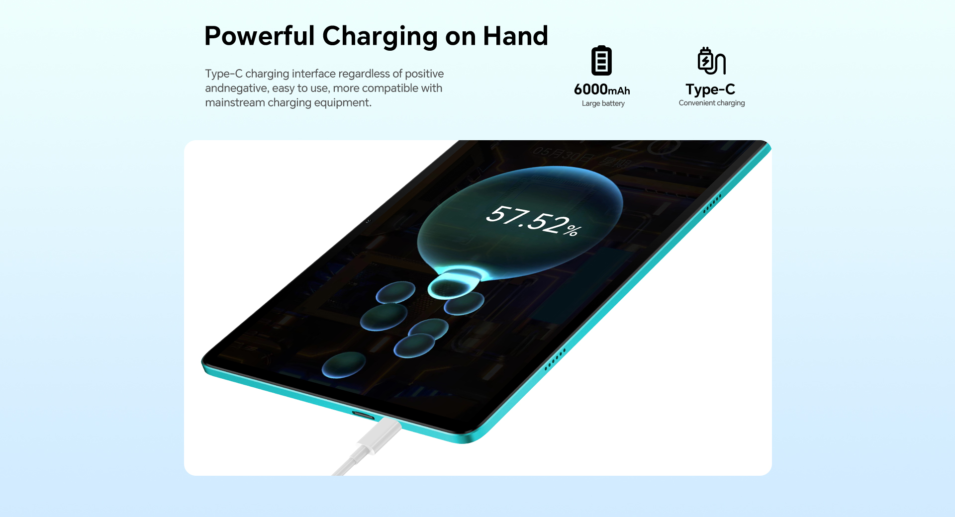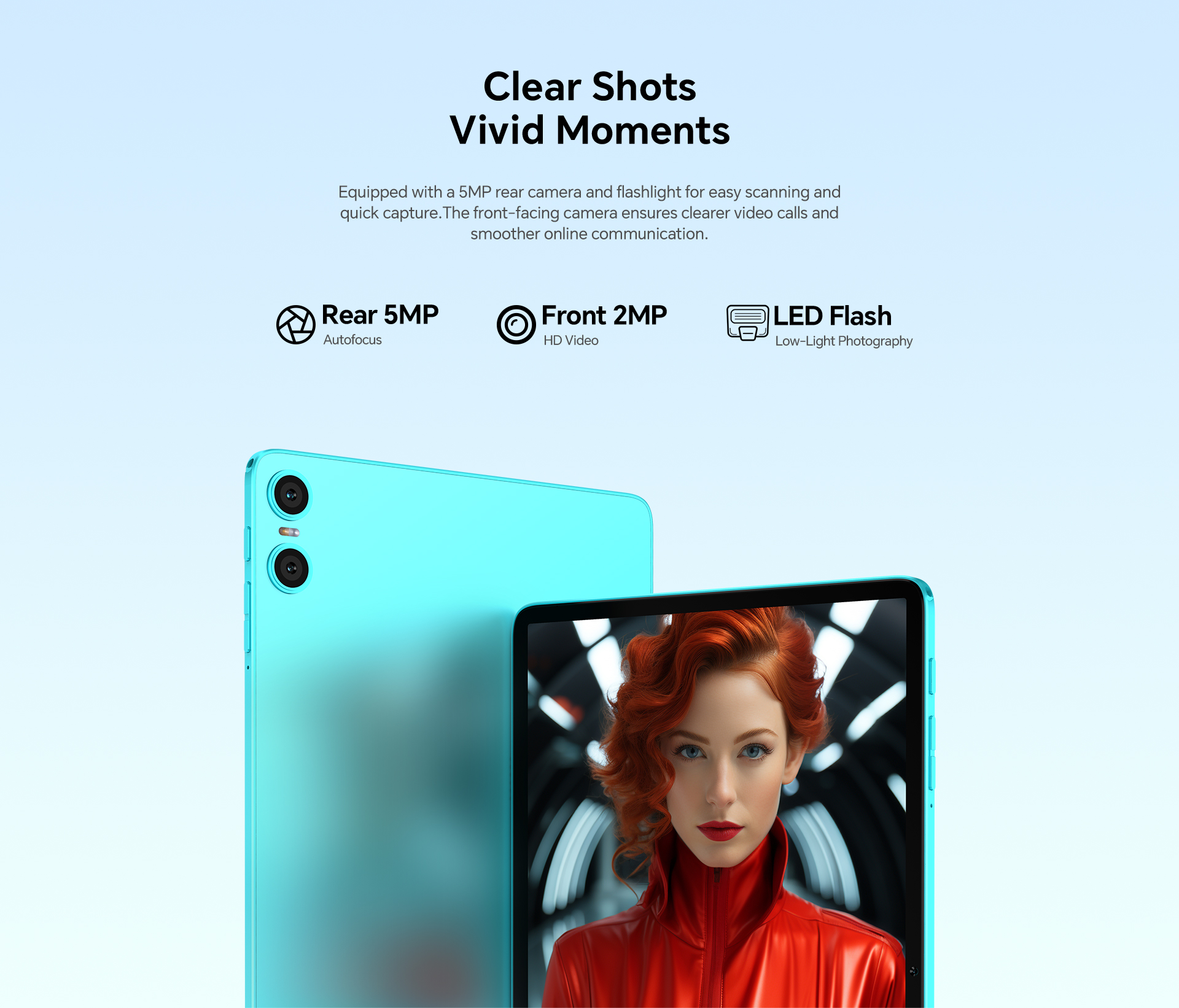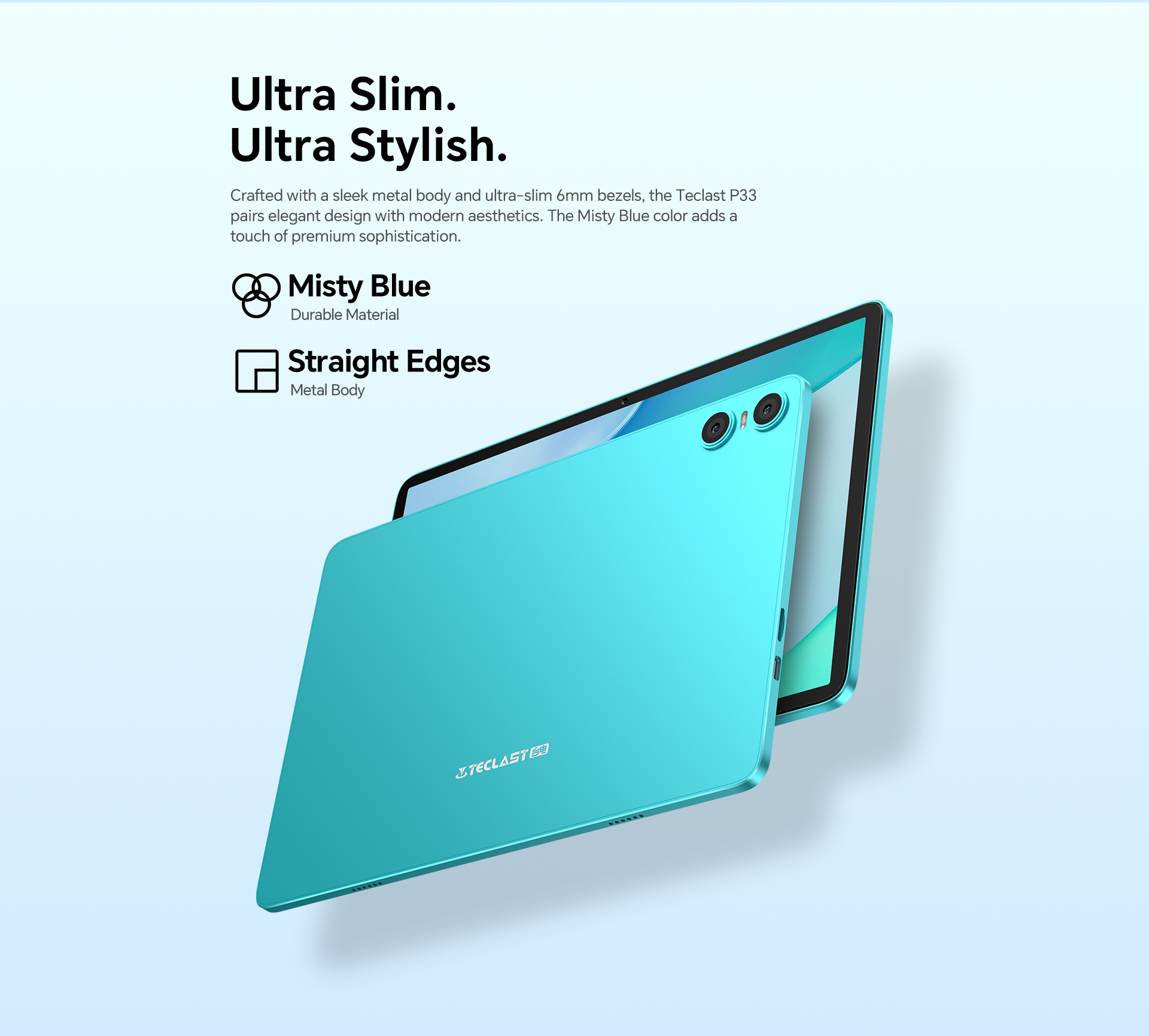 [Casual Daily Design] With a misty blue body, the P33 tablet boasts a sleek, attractive appearance and remains durable enough for everyday use.