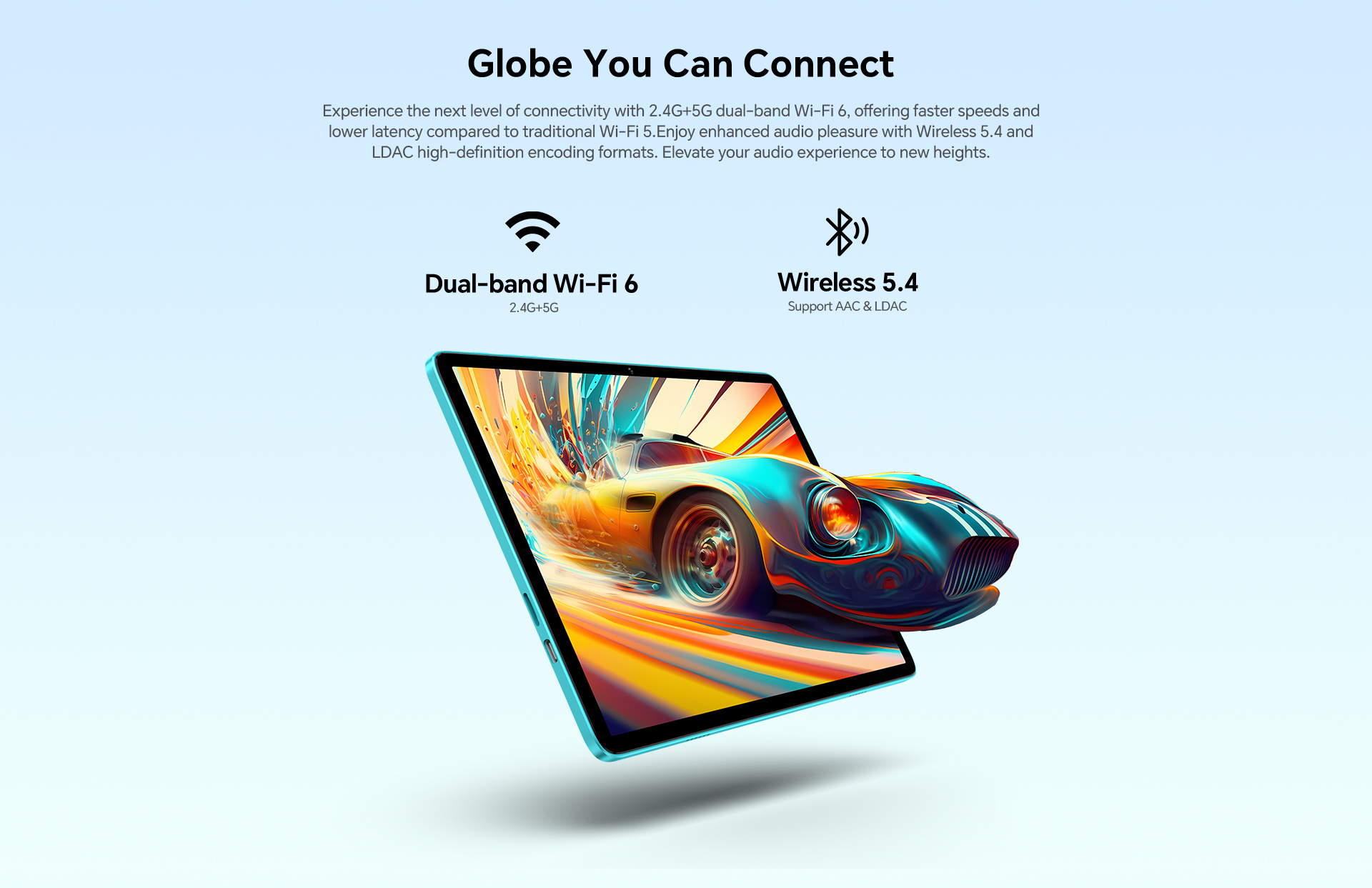 [Global Connectivity] Dual-band Wi-Fi 6 and wireless 5.4 bring reliable wireless access, supporting efficient audio streaming to compatible wireless headphones.