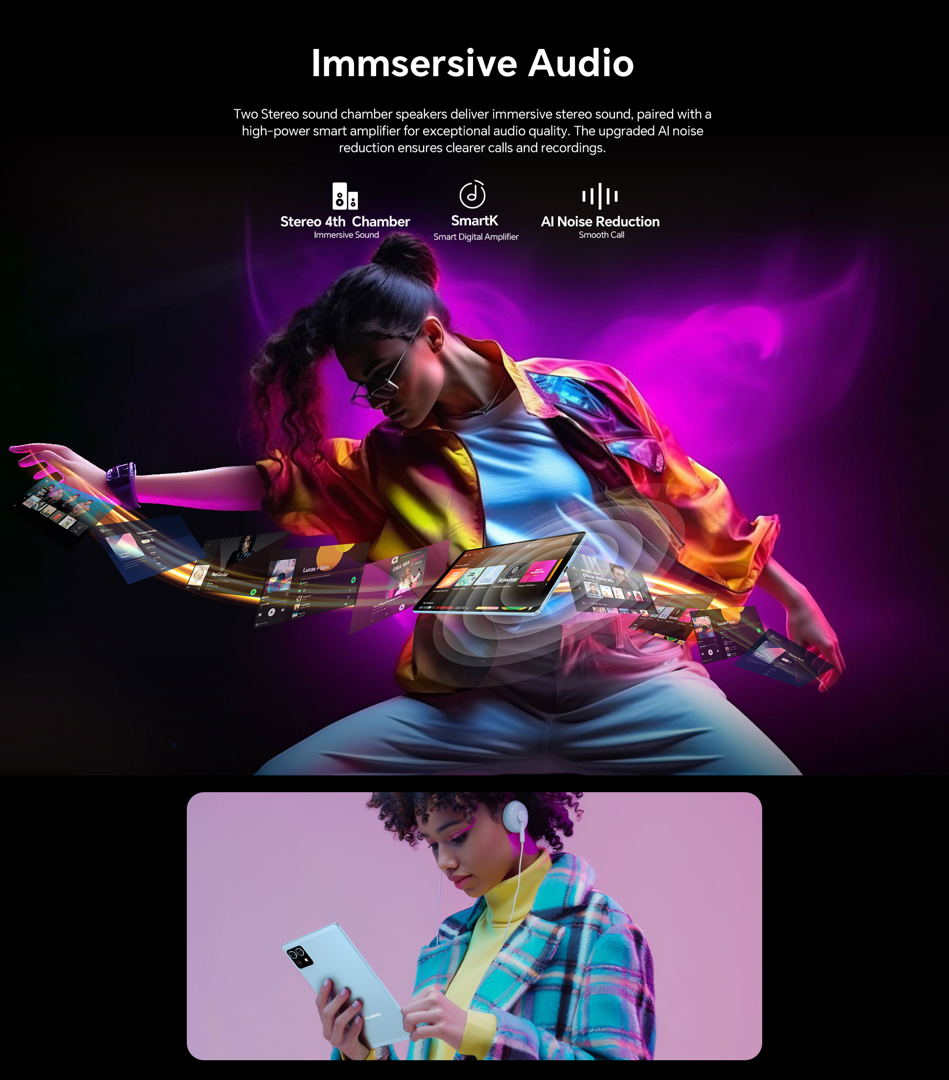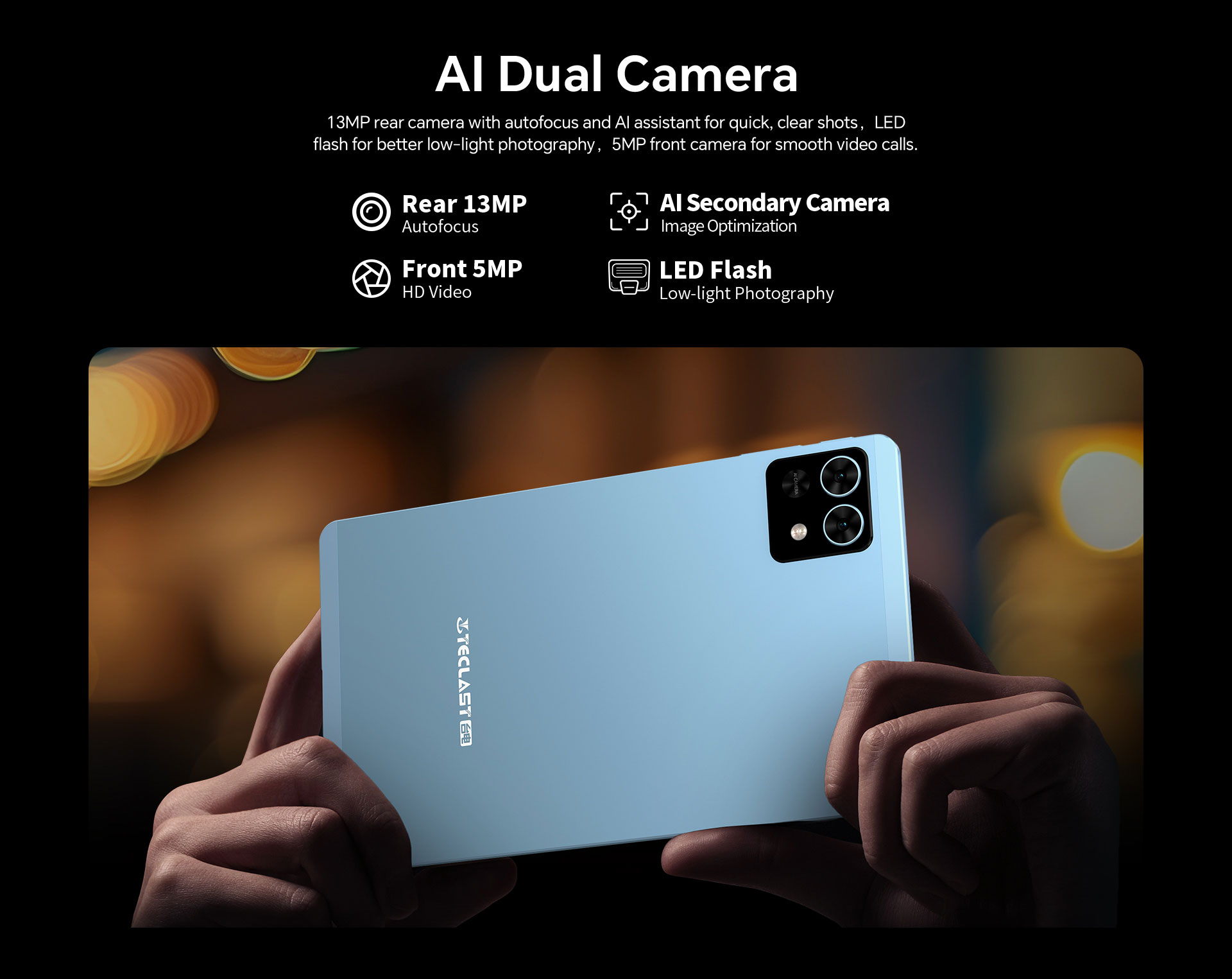 [Enhanced Camera Setup] Capture sharp photos with a 13MP AI dual rear camera and a 5MP front camera for high-quality video calls.
