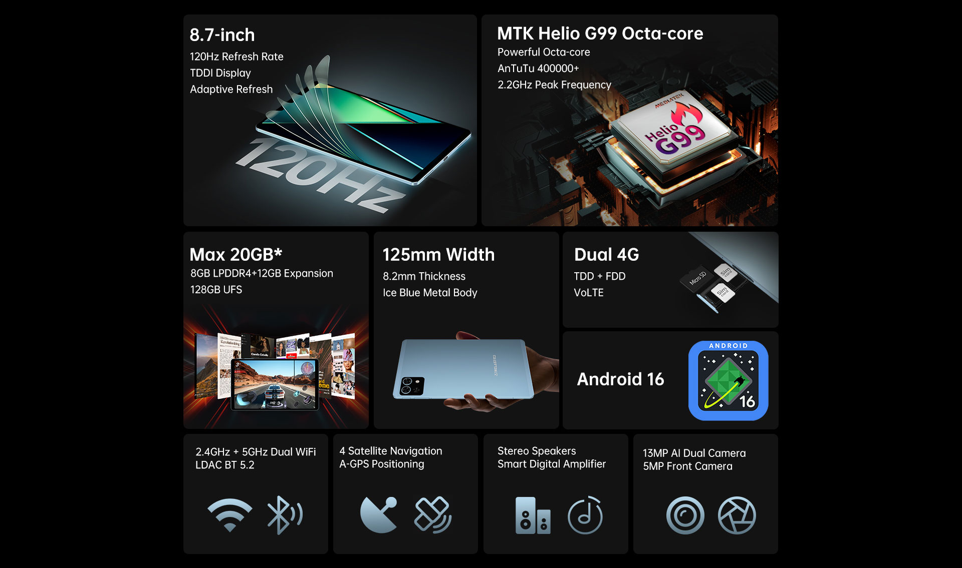 [Fast Connectivity] Enjoy fast 4G connectivity (TDD + FDD) and dual-band Wi-Fi (2.4GHz + 5GHz), plus BT 5.2 for seamless wireless connections.