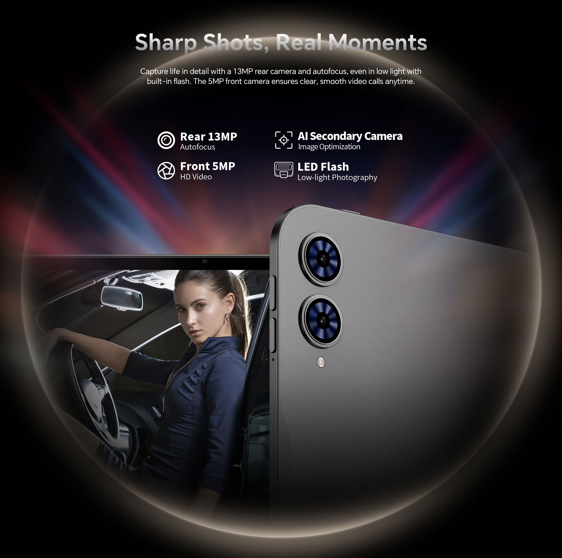 [Capture the Moment] Snap clear photos and enjoy smooth video calls with the 13MP rear and 5MP front cameras.
