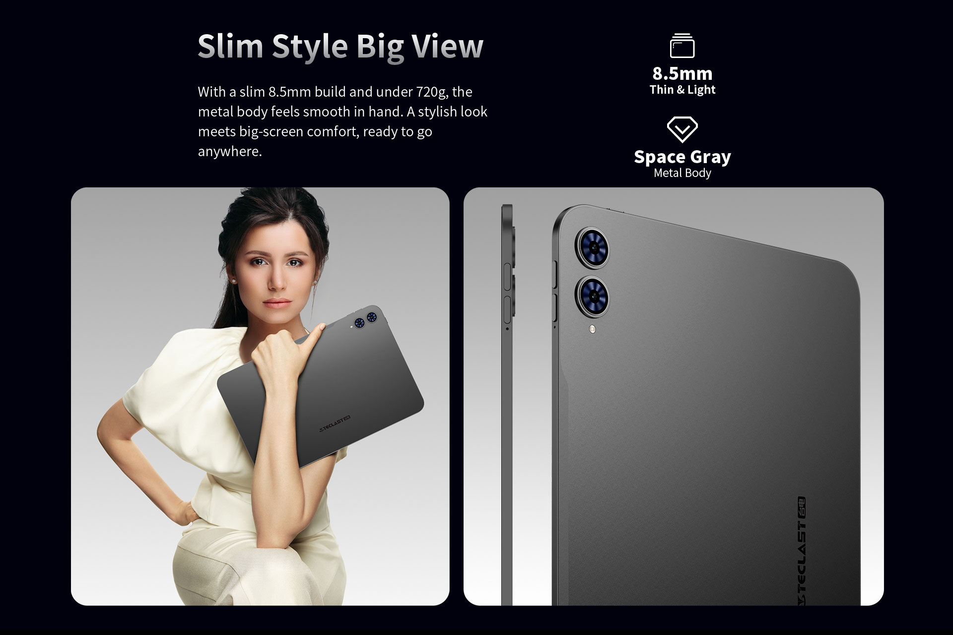 [Elegant Durability] Featuring a 8.5mm slim profile and CNC-machined aluminum body with a sandblasted finish, the T65 offers a premium feel that’s both stylish and strong. Straight edges and a concealed antenna design complete its modern look.