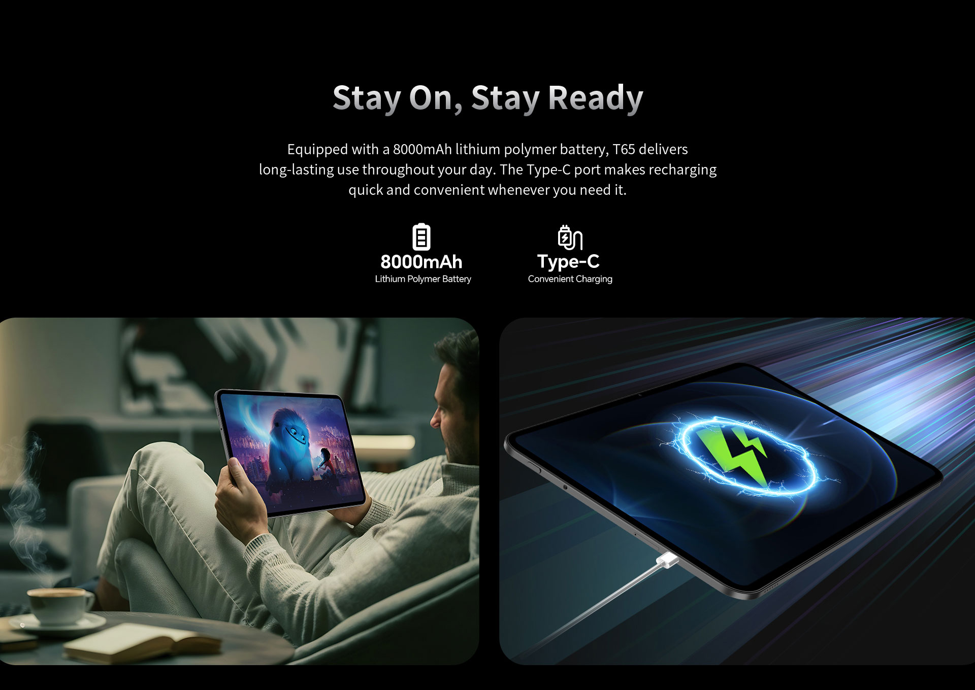 [Long-lasting Battery] Equipped with an Max 10000mAh battery and Type-C charging, the T65 keeps you powered through hours of productivity and play.