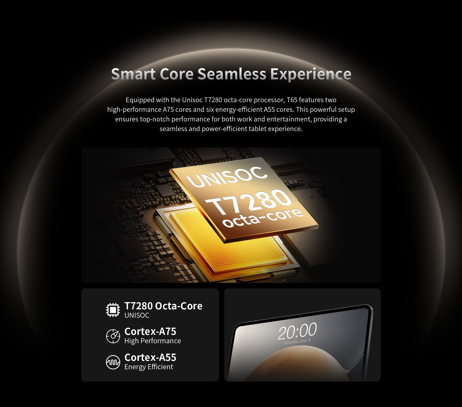 [Octa-Core Power] Powered by the Unisoc T7280 octa-core processor featuring A75 high-performance and A55 energy-efficient cores, the T65 delivers fast and stable performance for multitasking, entertainment, and daily use.