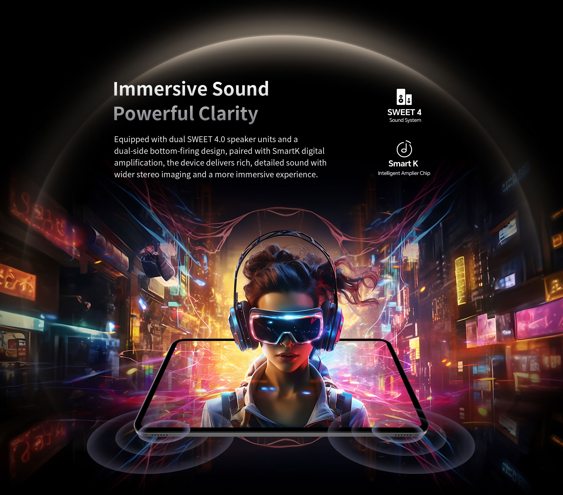 - Dual stereo speakers