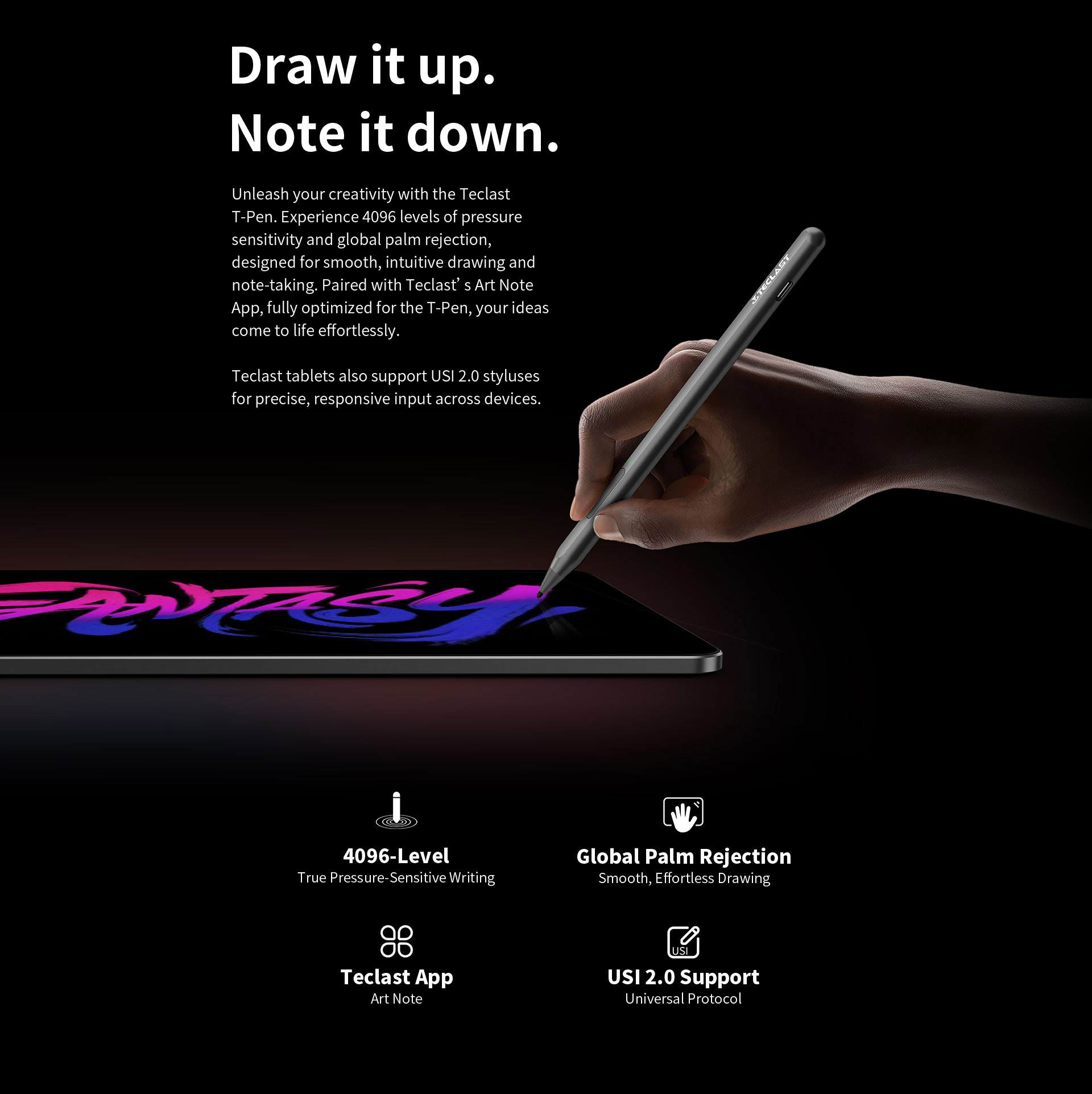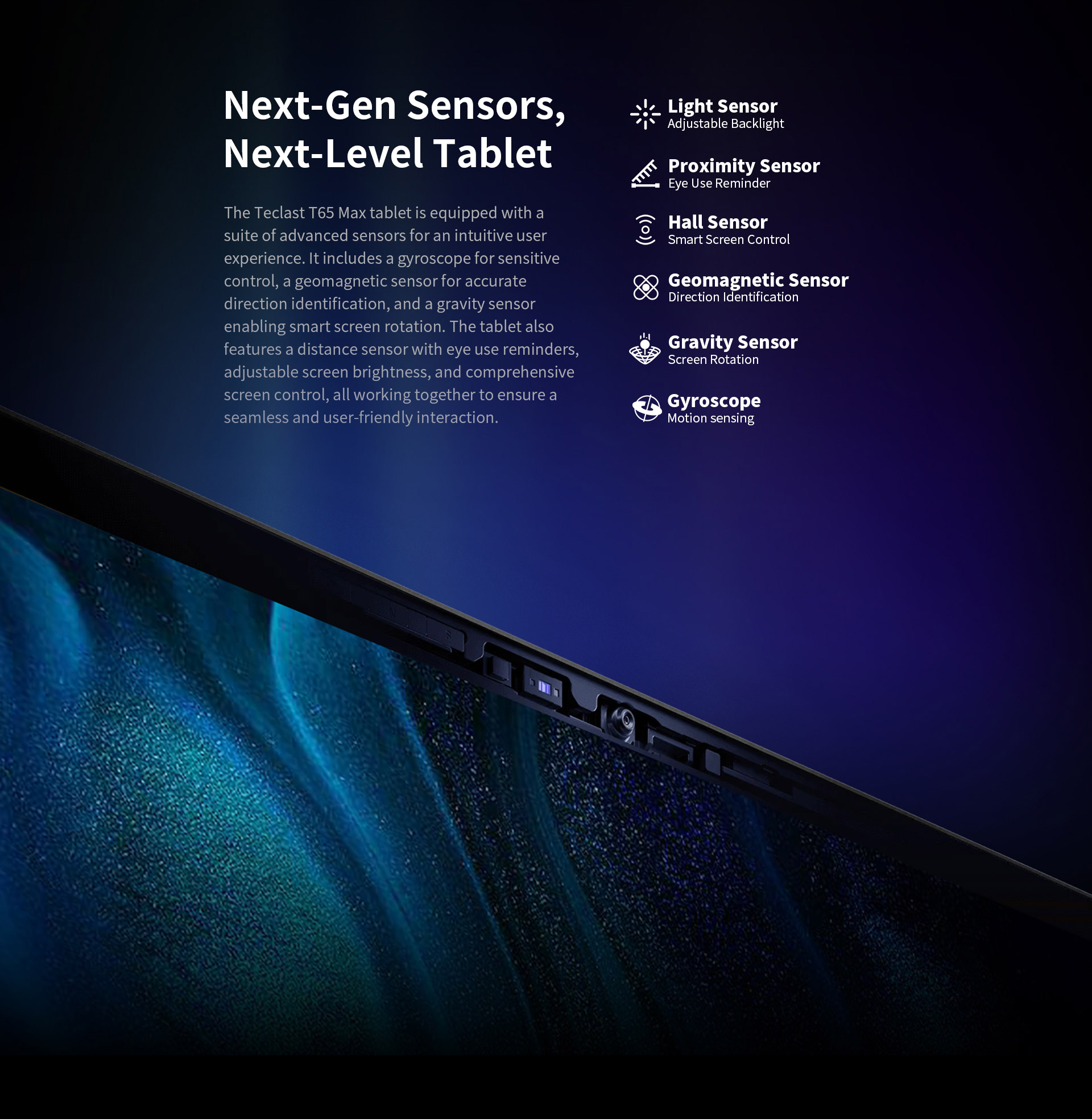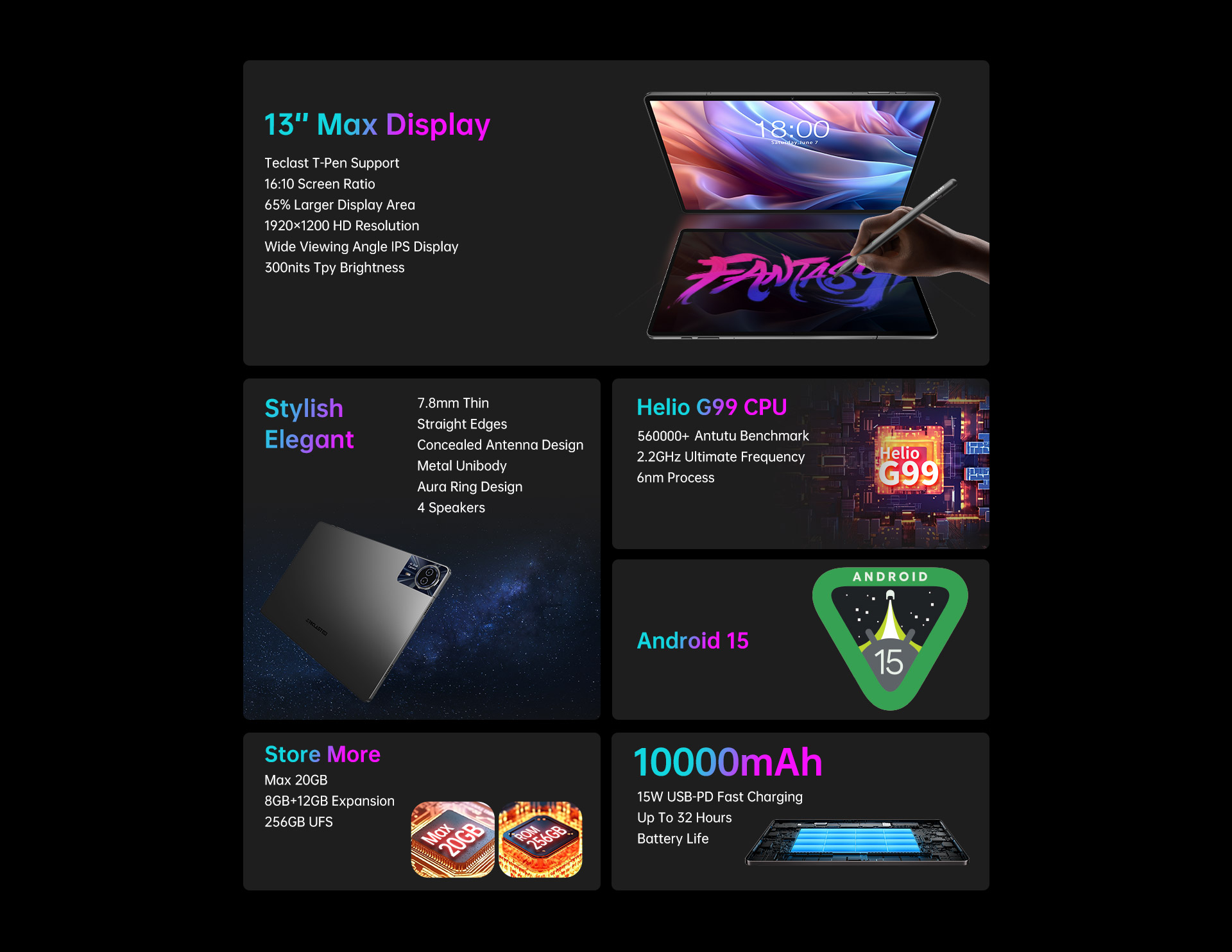 [13-inch Max View] The T65 Max 2025 tablet features a 13-inch IPS display with 1920x1200 resolution, 16:10 aspect ratio, and 60Hz refresh rate for smooth visuals. With Teclast T-Pen support, it enables intuitive drawing and note-taking, perfect for unleashing your creativity.