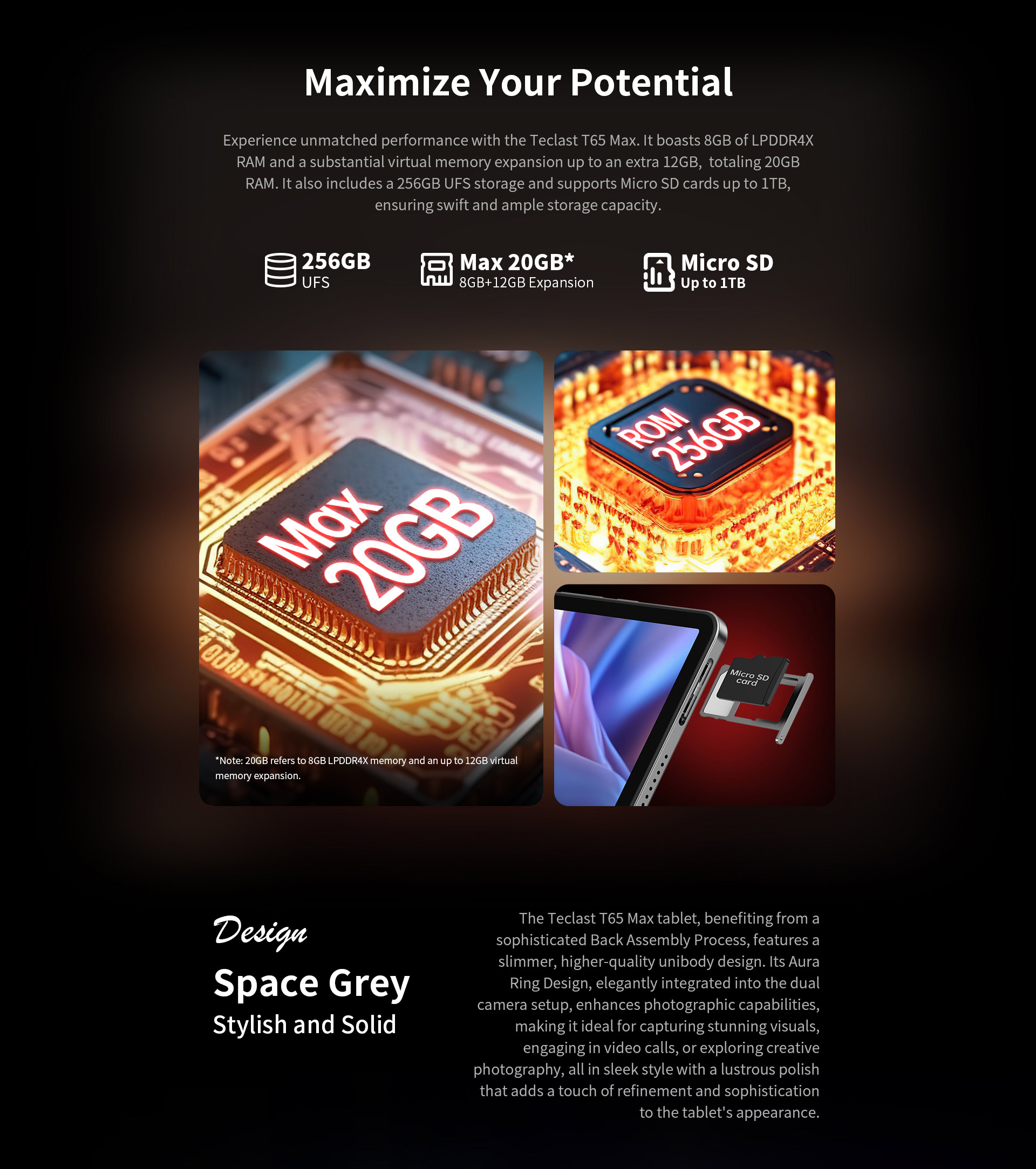 [Helio G99 Performance] Powered by the Helio G99 processor, the T65 Max 2025 features up to 20GB RAM (8GB base + 12GB expansion) and 256GB UFS storage, expandable to 1TB, ensuring smooth multitasking and high performance.