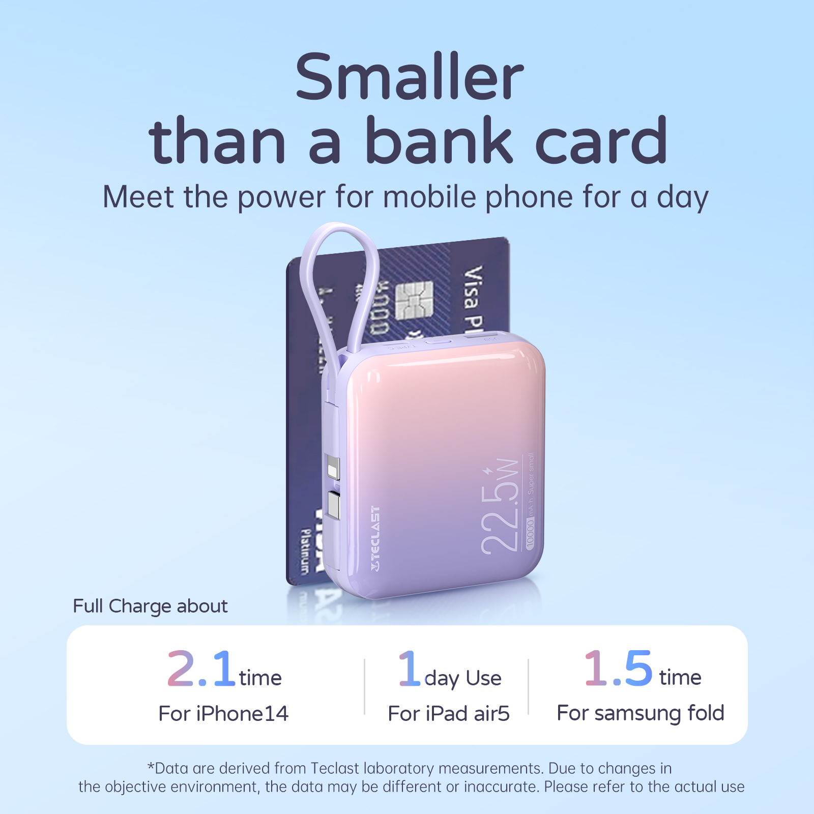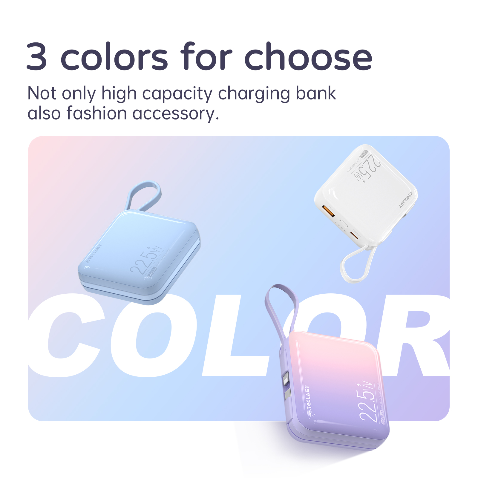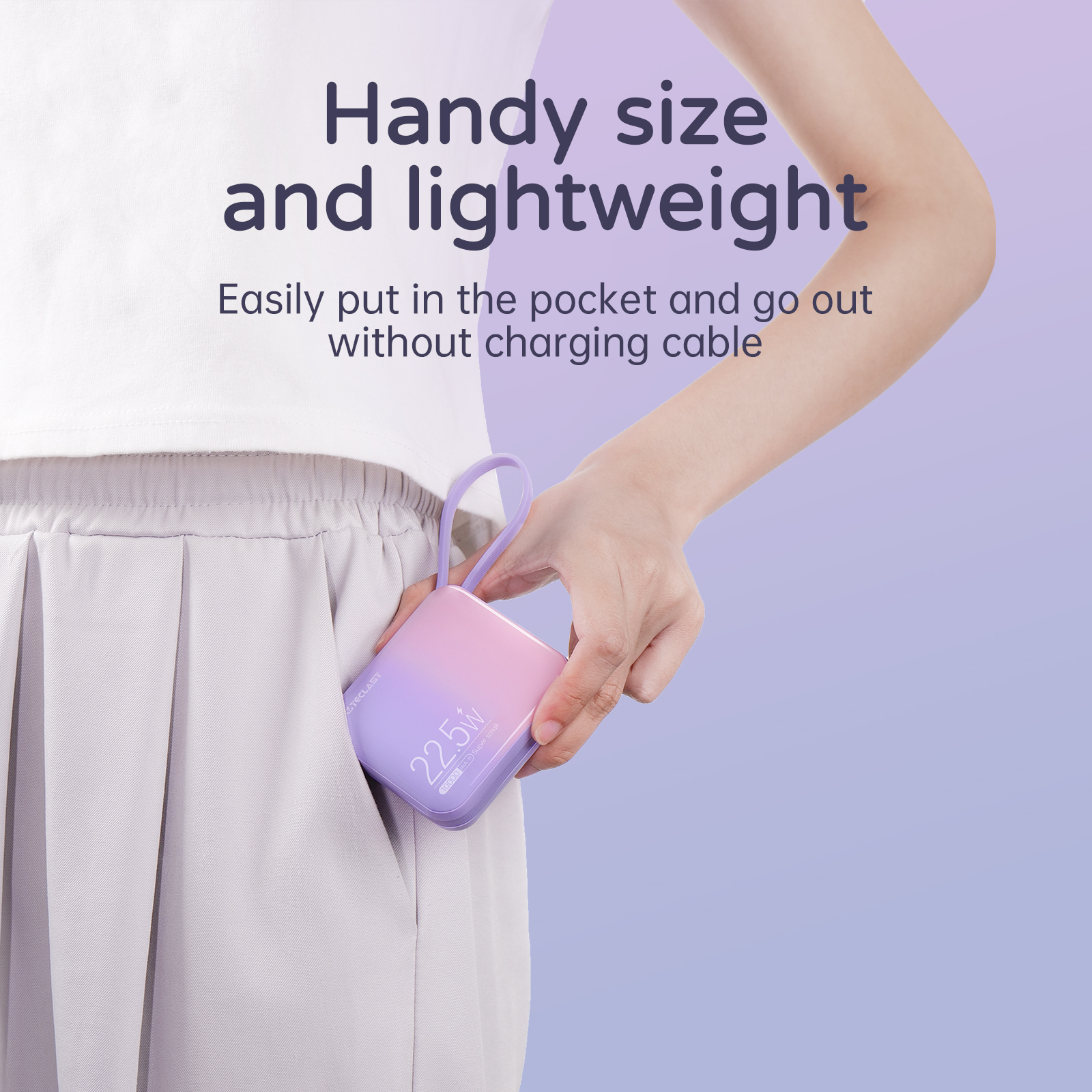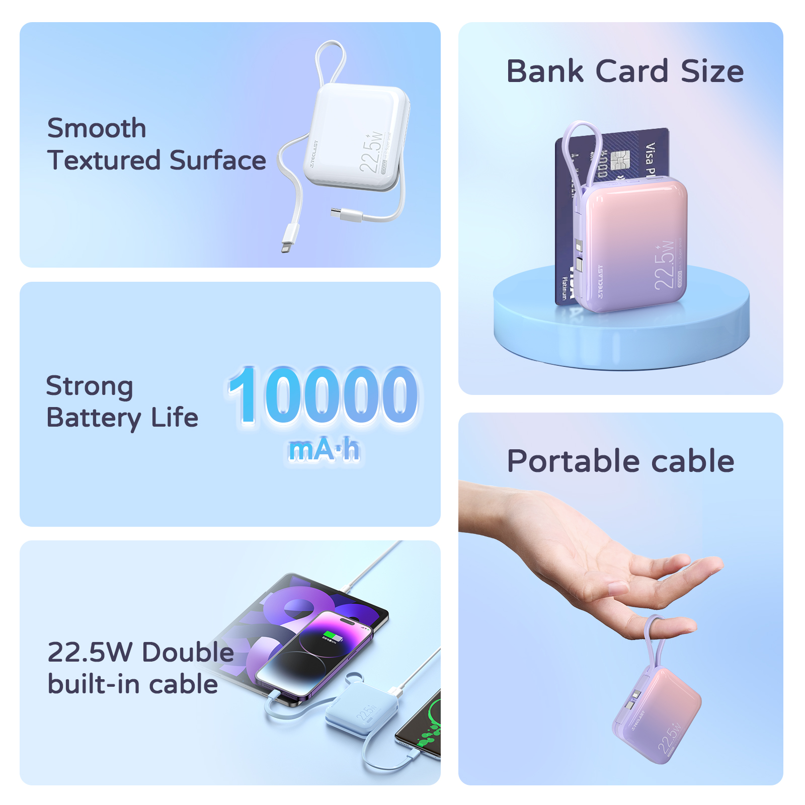 Built-in Type-C (22.5W) & Lightning (20W) cables, plus 3-port output for simultaneous multi-device charging.