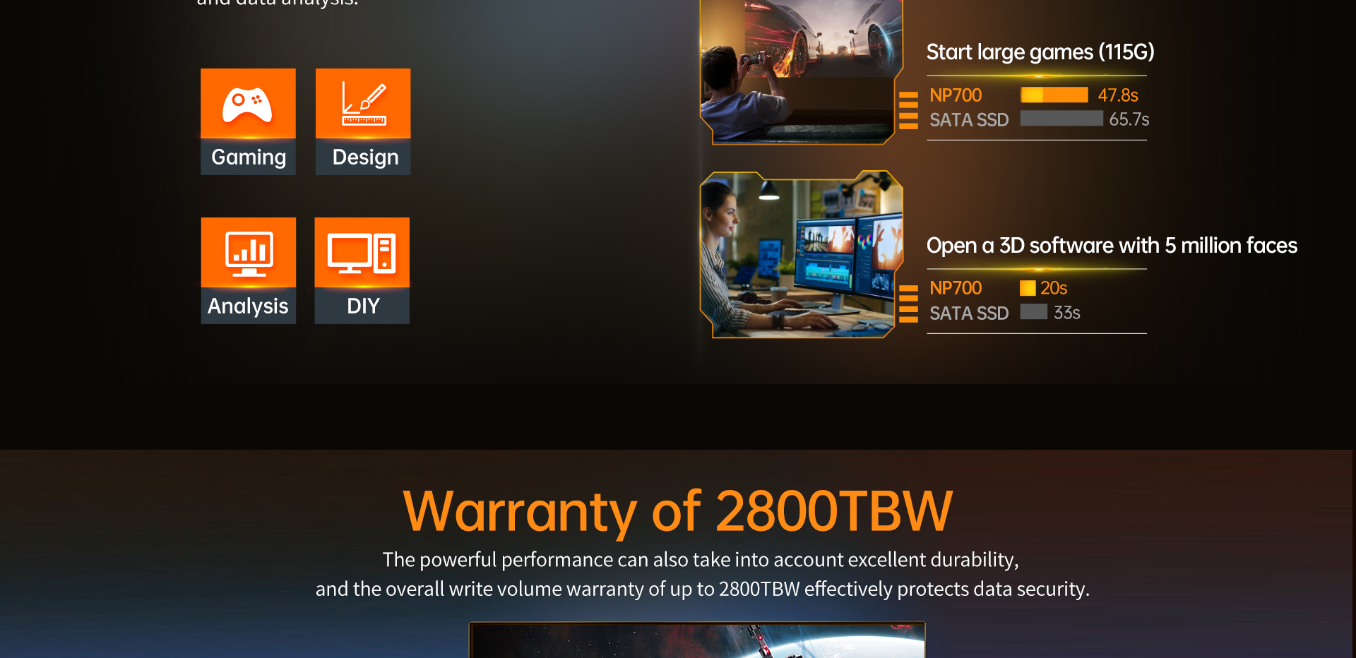 [Powerful Random Transmission Performance] With up to 1000K IOPS in both random read and write operations, the NP700 provides smooth system response, fast application loading, and efficient office productivity even during intensive multitasking.