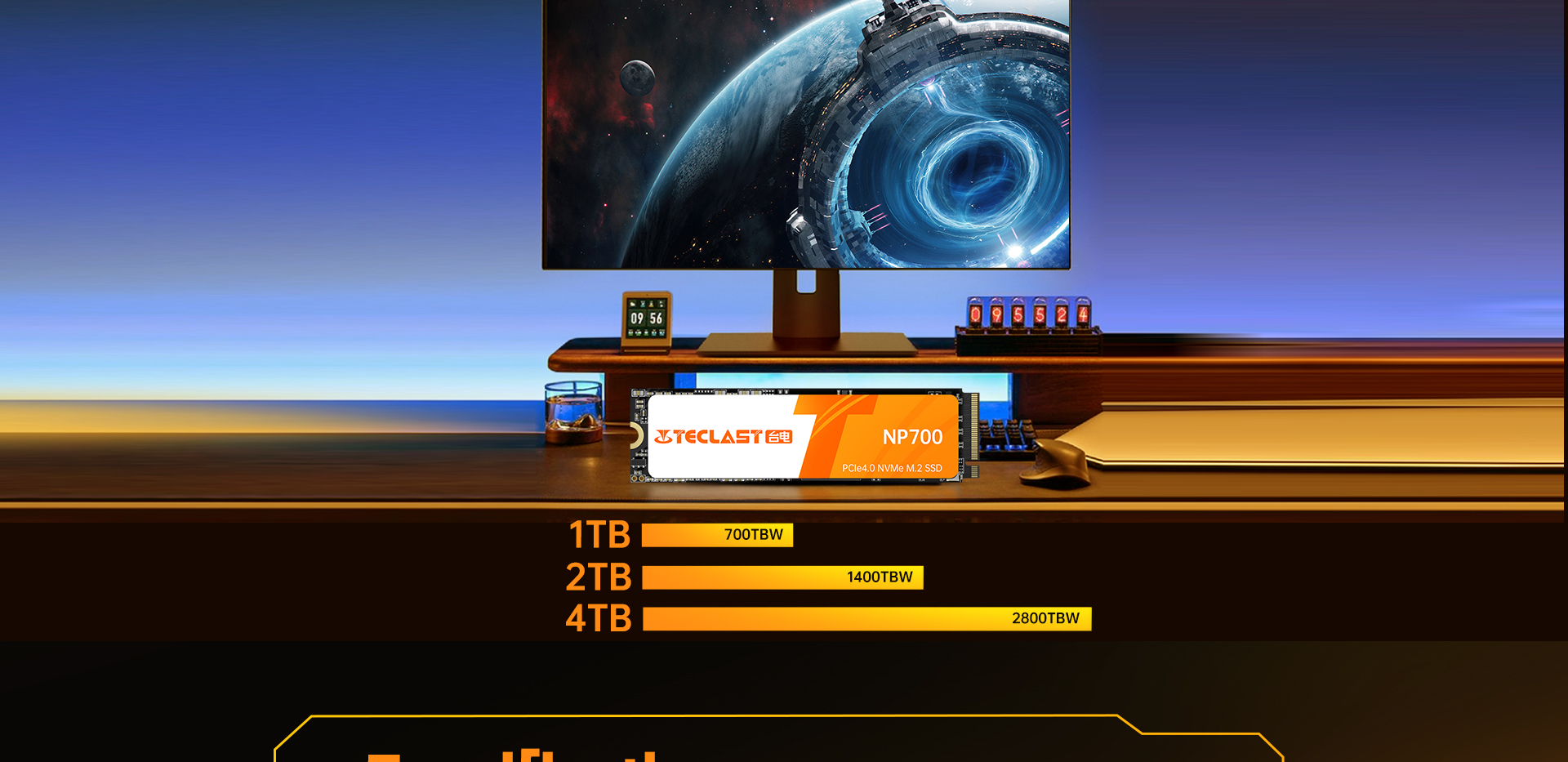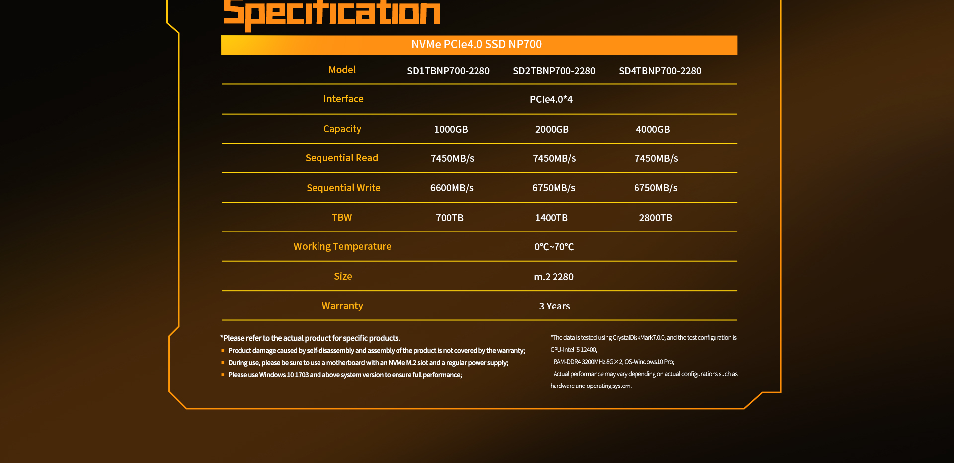 [Thunder Speed] The Teclast NP700 NVMe SSD delivers lightning-fast performance with sequential read speeds up to 7450MB/s and write speeds up to 6750MB/s, powered by PCIe 4.0 x4 and NVMe 2.0 technology for ultimate data transfer efficiency.