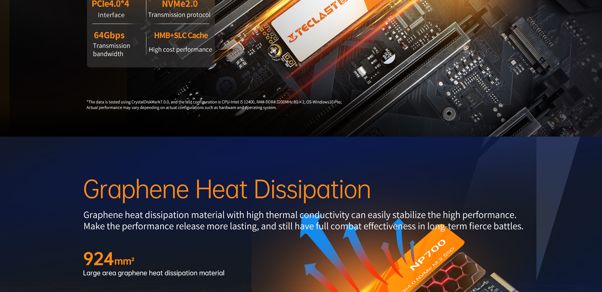 [Graphene Heat Dissipation] Equipped with a large-area graphene heat dissipation material (924mm²), the NP700 offers superior thermal conductivity—over 5300W/mK—more than 2.5 times that of traditional copper heat sinks, ensuring stable operation under heavy workloads.