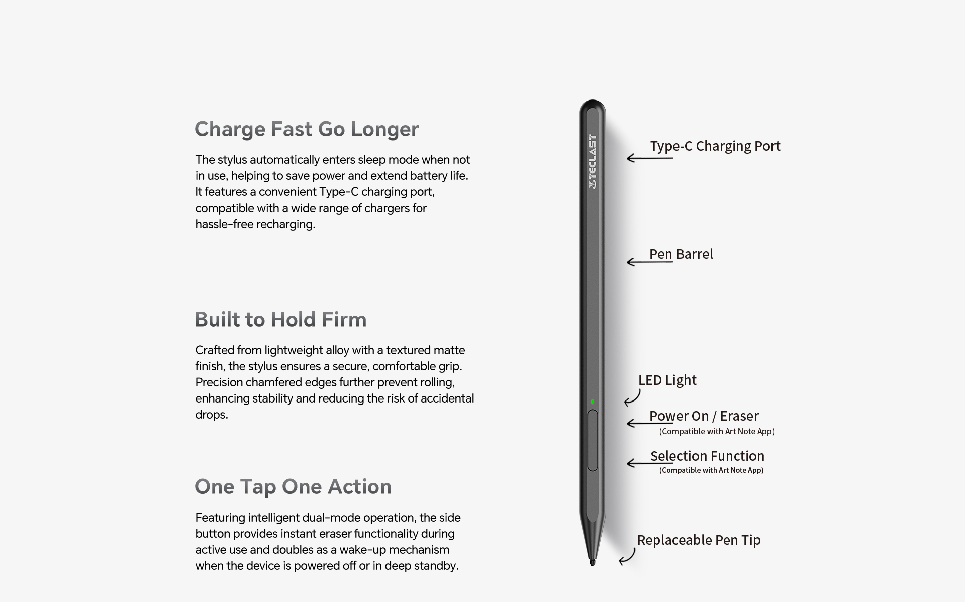 [USI 2.0 Protocol Support] Built on the Universal Stylus Initiative (USI) 2.0 standard, the T-Pen ensures wide compatibility and consistent performance across supported Teclast devices.