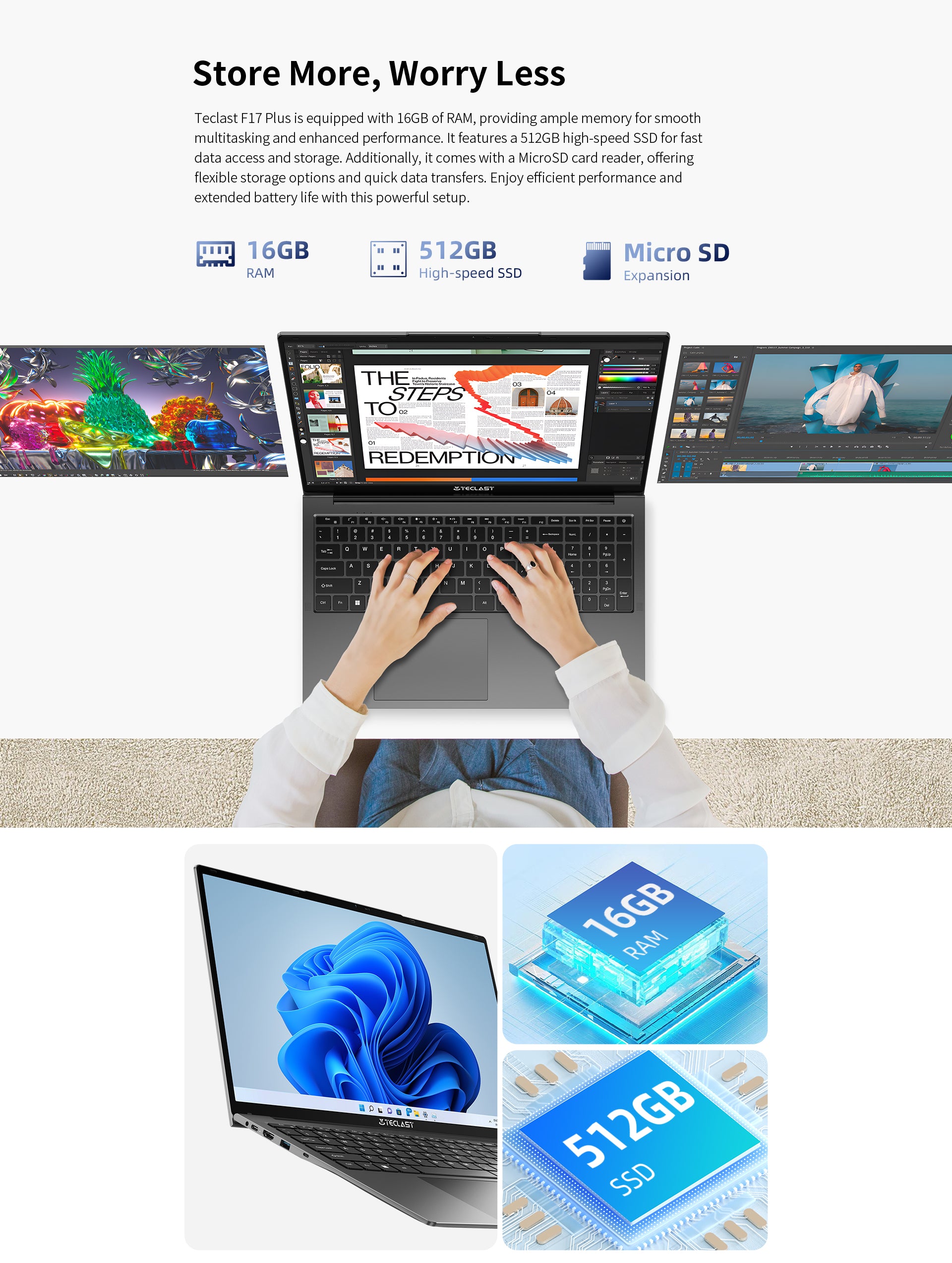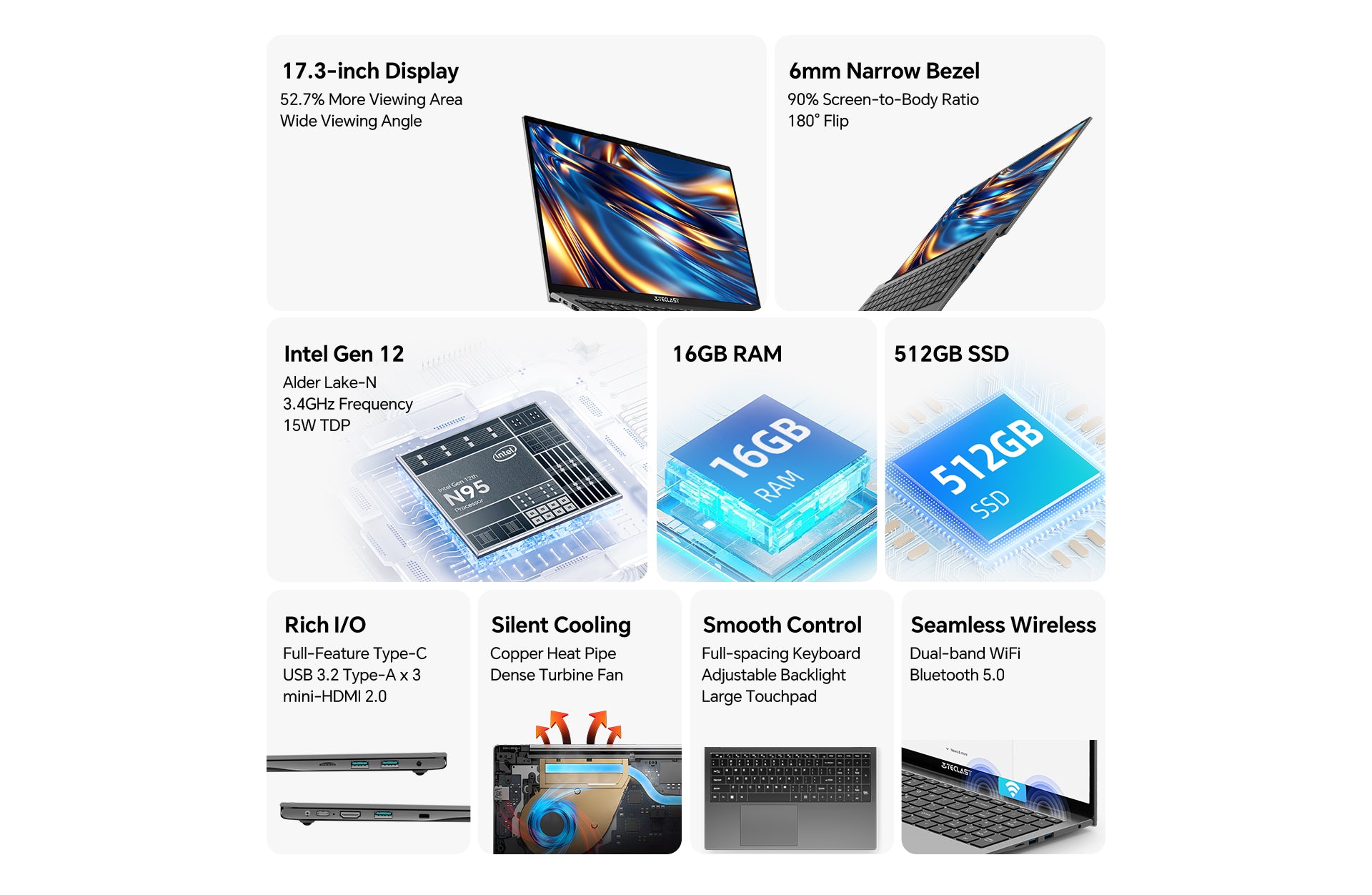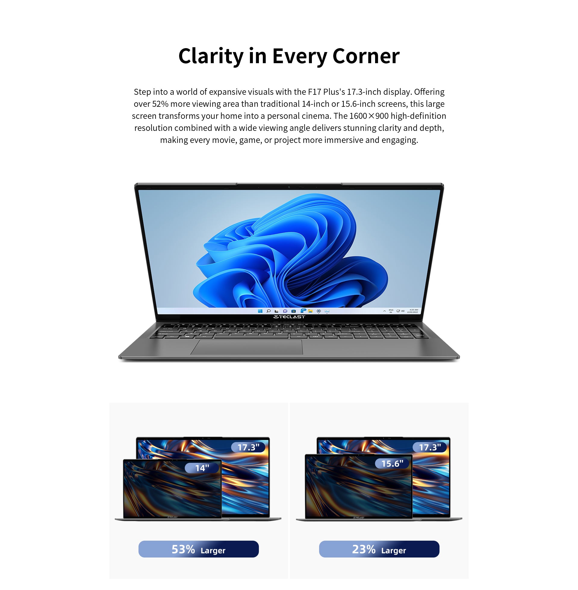 - Großes 17,3-Zoll-Display mit 52,7 % mehr Anzeigebereich