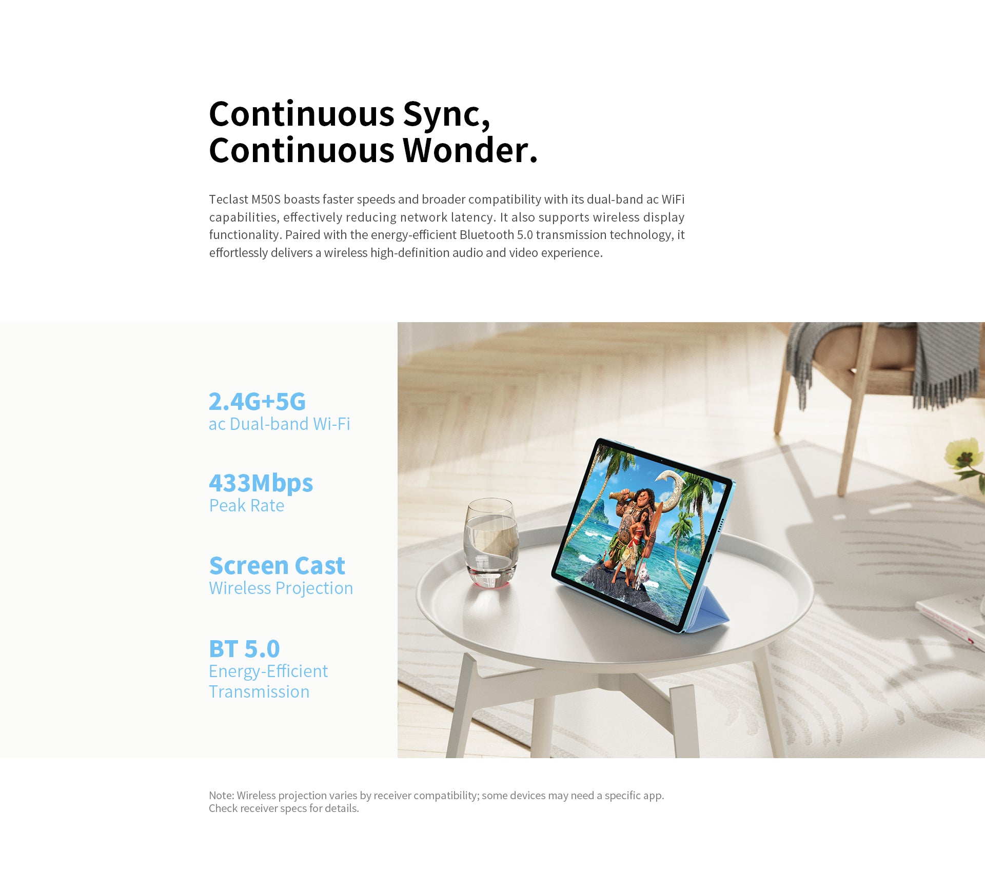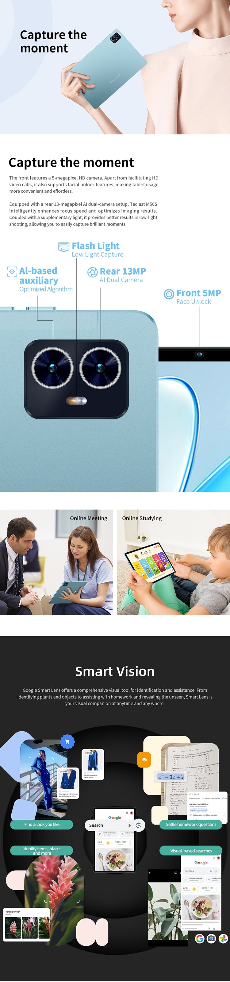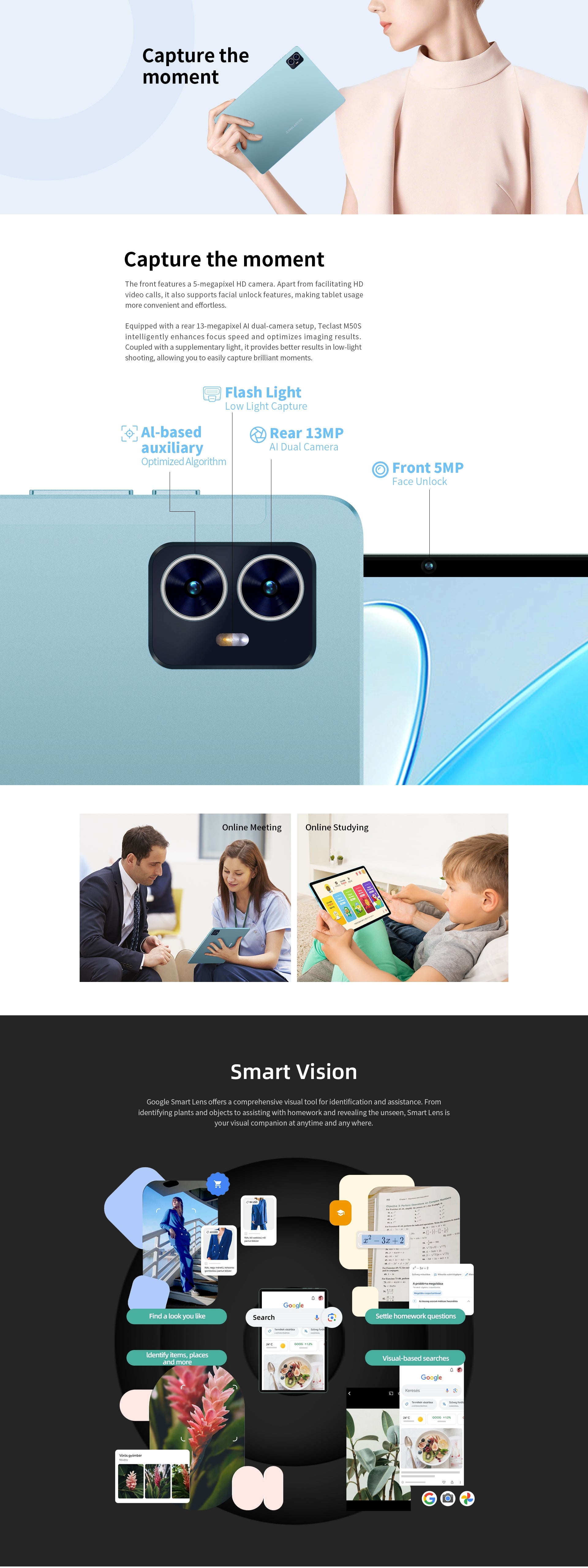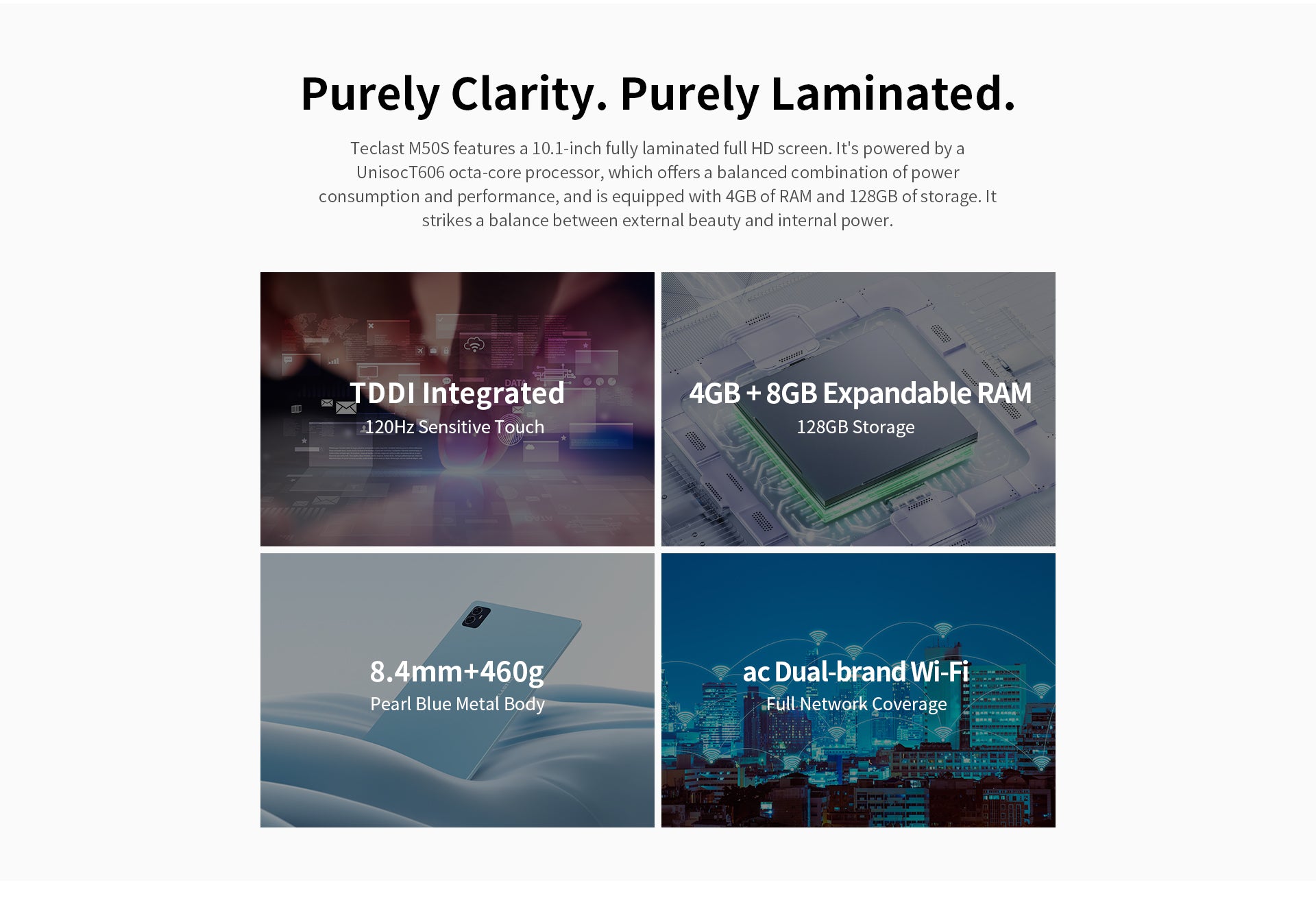 [Pearl Blue Design] Der M50S hat einen „Pearl Blue“-Farbton, ein schlankes 8,4-mm-Profil und wiegt nur 460 g. Dank seiner kompakten und federleichten Form ist es bequem zu tragen, sodass Sie unterwegs arbeiten oder spielen können.