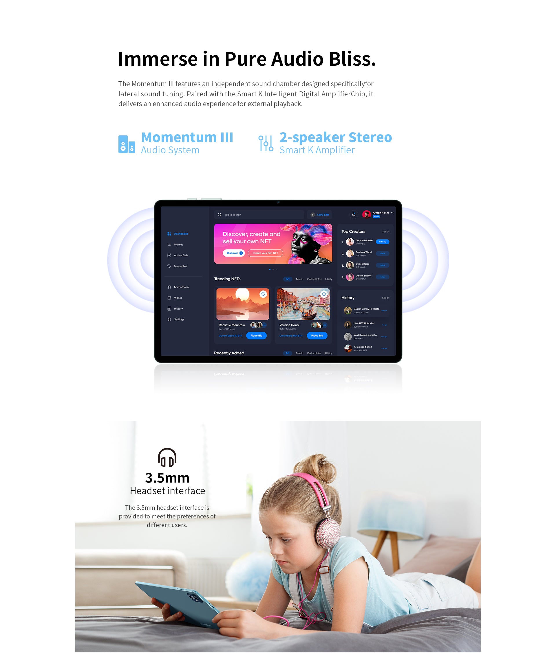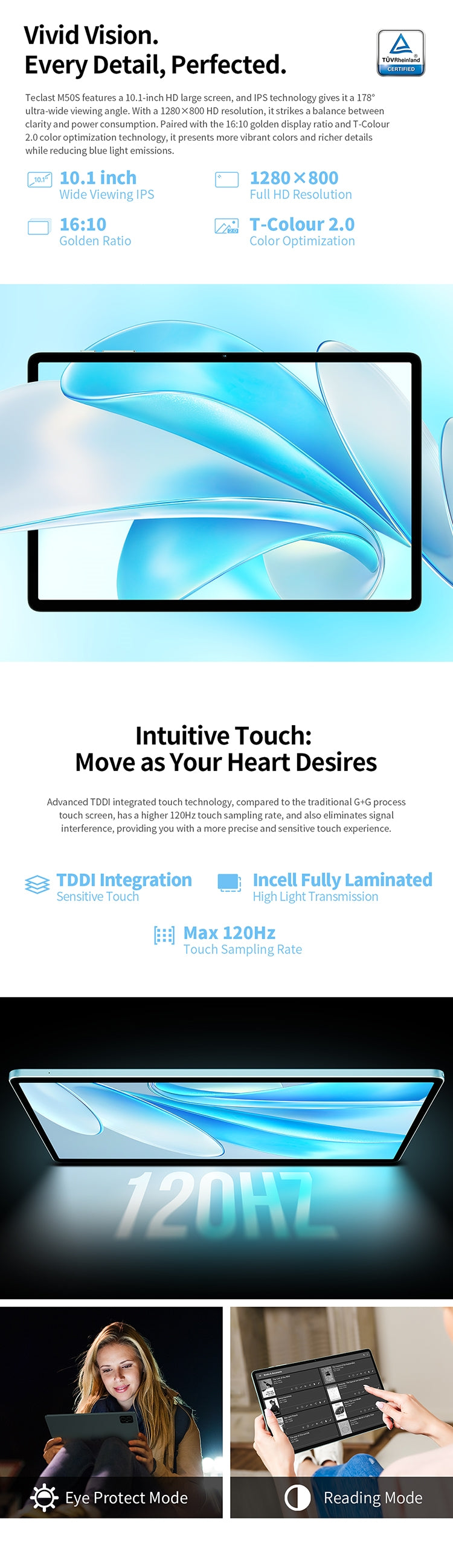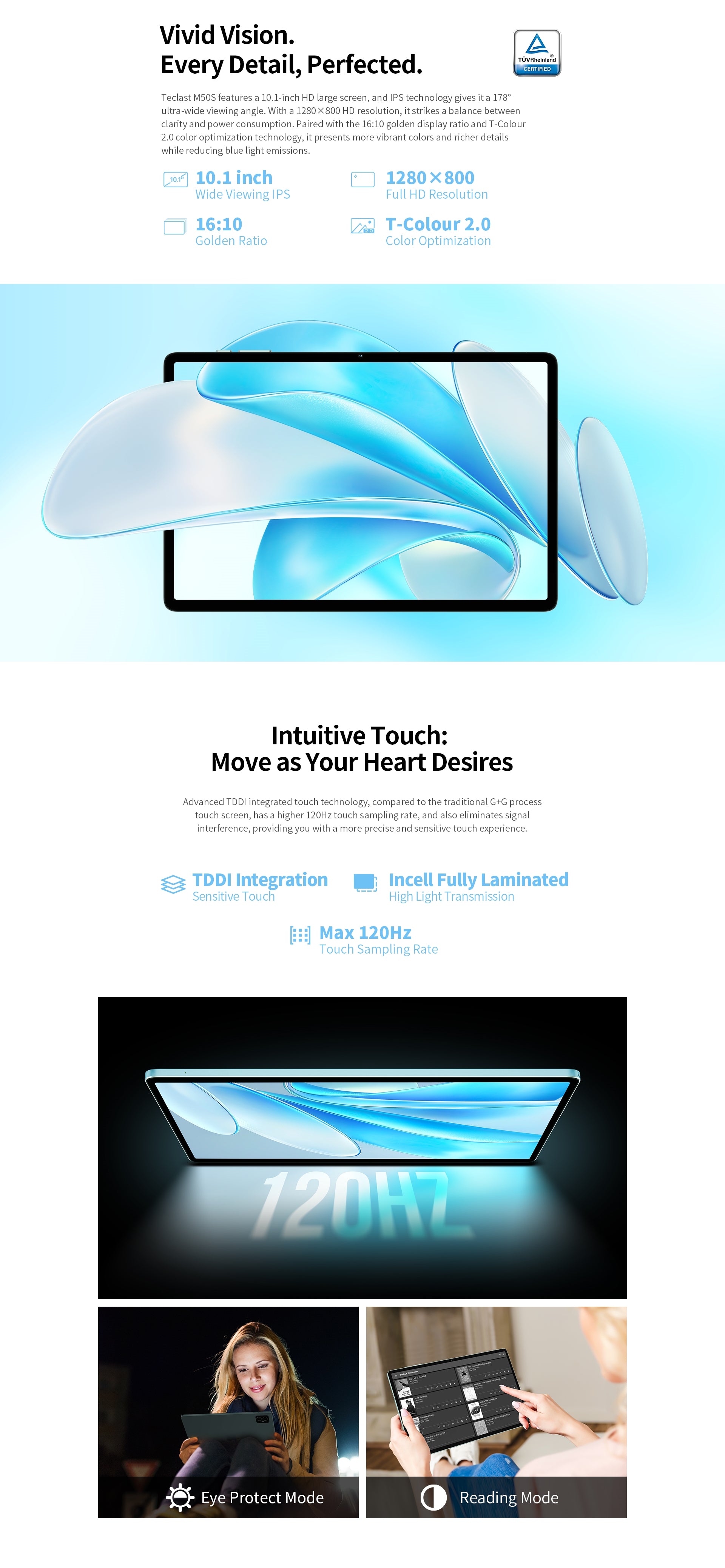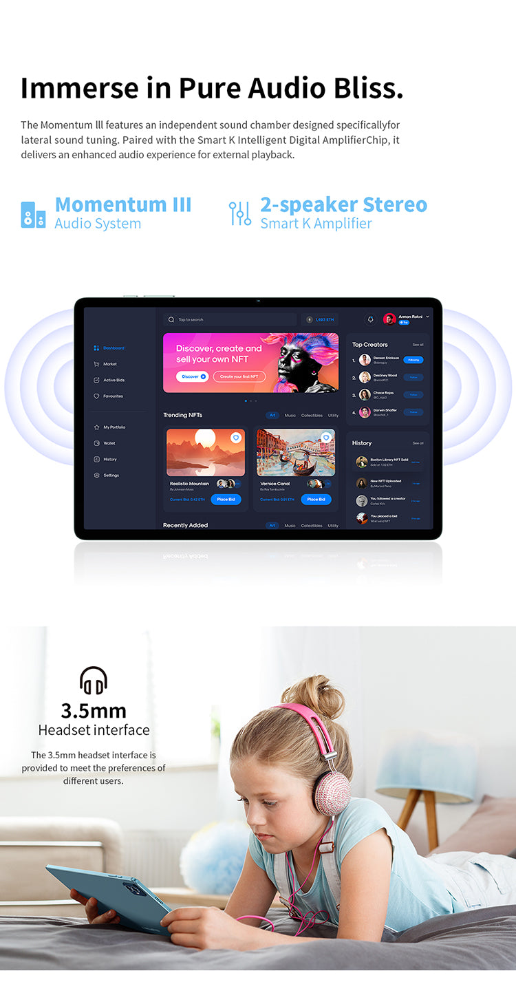 [Elegantes Display] M50S verfügt über einen 10,1-Zoll-IPS-Bildschirm mit einer Auflösung von 1280 x 800 und einem beeindruckenden Bildschirm-zu-Gehäuse-Verhältnis von 83 %. Dies stellt sicher, dass der Betrachter in ein umhüllendes visuelles Vergnügen hineingezogen wird.