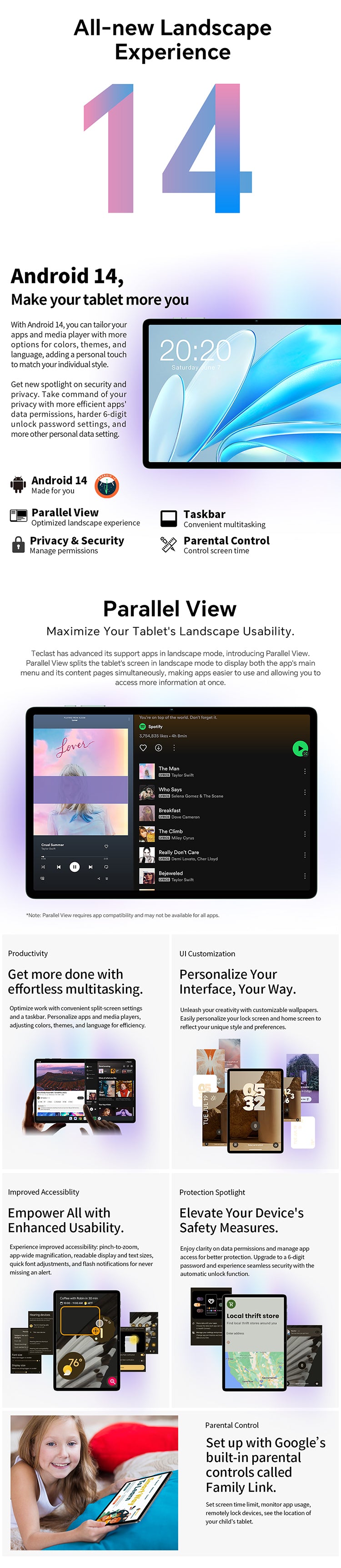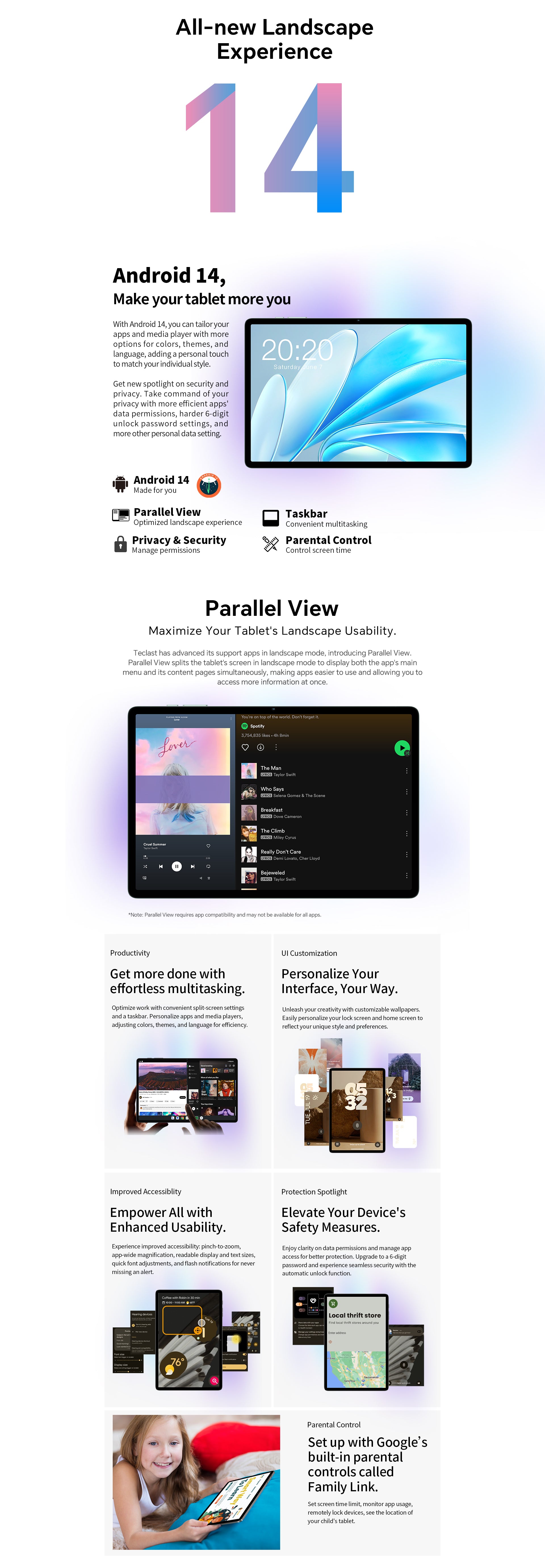 [Android 14] M50S verwendet das Betriebssystem Android 14 mit personalisierten App-Einstellungen, ästhetischen Verbesserungen und Multitasking-Funktionen. Es verfügt außerdem über eine robuste Kindersicherung und Widevine L1-Unterstützung für hochwertiges Streaming, was sowohl Vielseitigkeit als auch Sicherheit im Benutzererlebnis gewährleistet.