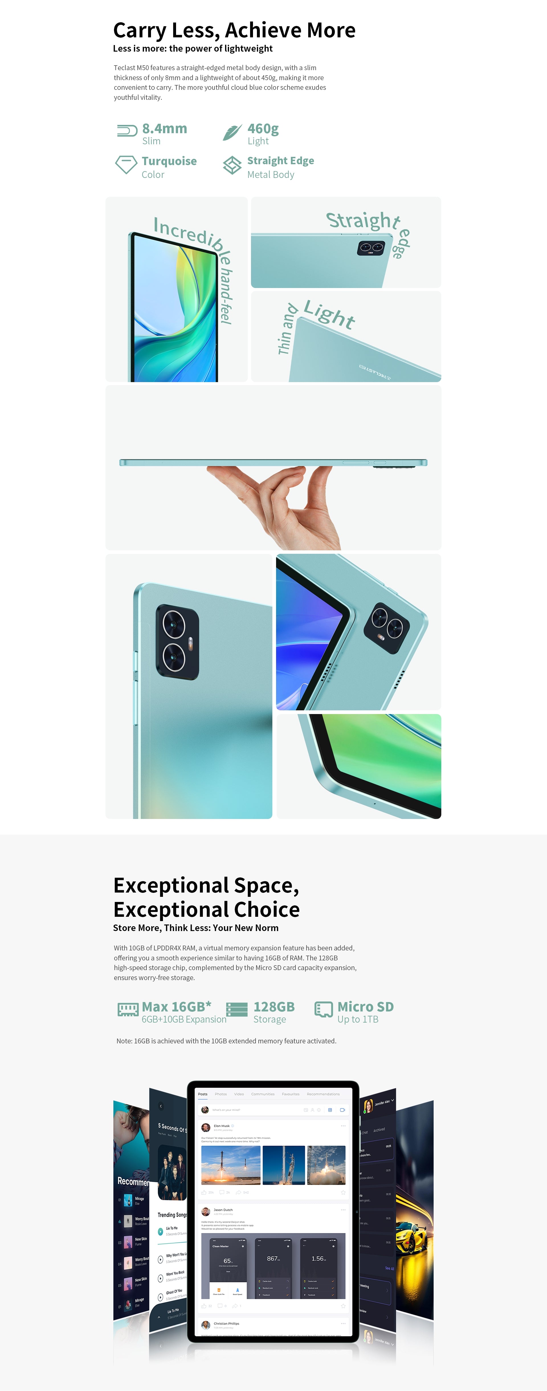[Hochleistungsrechnen] Angetrieben von einem Unisoc T606 Octa-Core-Prozessor und einer Mali-G57-GPU Das Tablet kann bis zu 16 GB RAM (6 GB Basis plus 10 GB Erweiterung) verarbeiten und bietet 128 GB Speicher für effizientes Multitasking und ausreichend Speicherplatz.