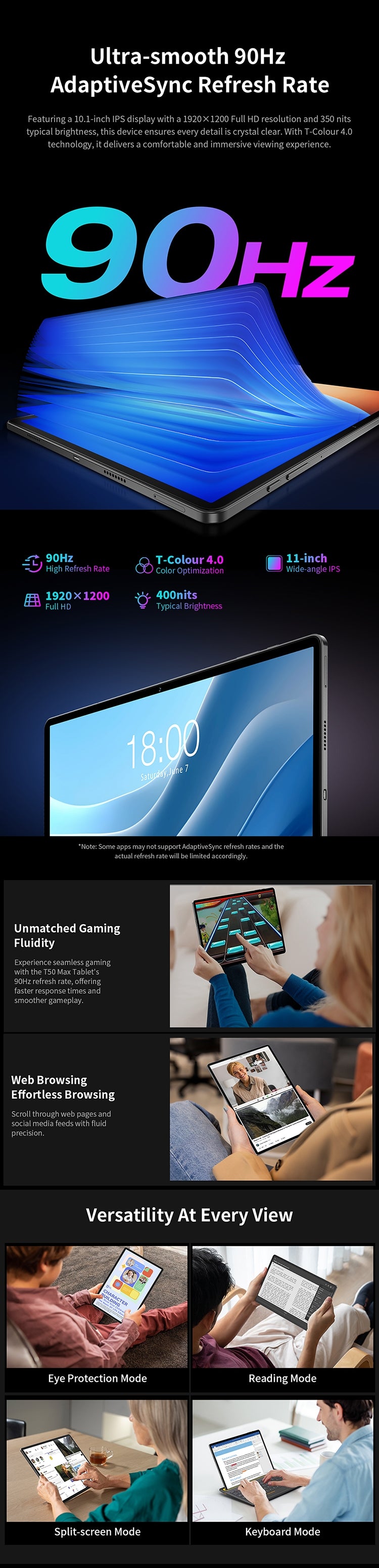 [90Hz hohe Bildwiederholfrequenz] Genießen Sie flüssige, nahtlose Animationen auf dem 11-Zoll-Full-HD-Bildschirm mit einer 90 Hz AdaptiveSync-Bildwiederholfrequenz und der TÜV Rheinland Low Blue Light-Zertifizierung. Das IPS-Panel bietet eine Auflösung von 1920 x 1200, ideal für Arbeit und Unterhaltung.