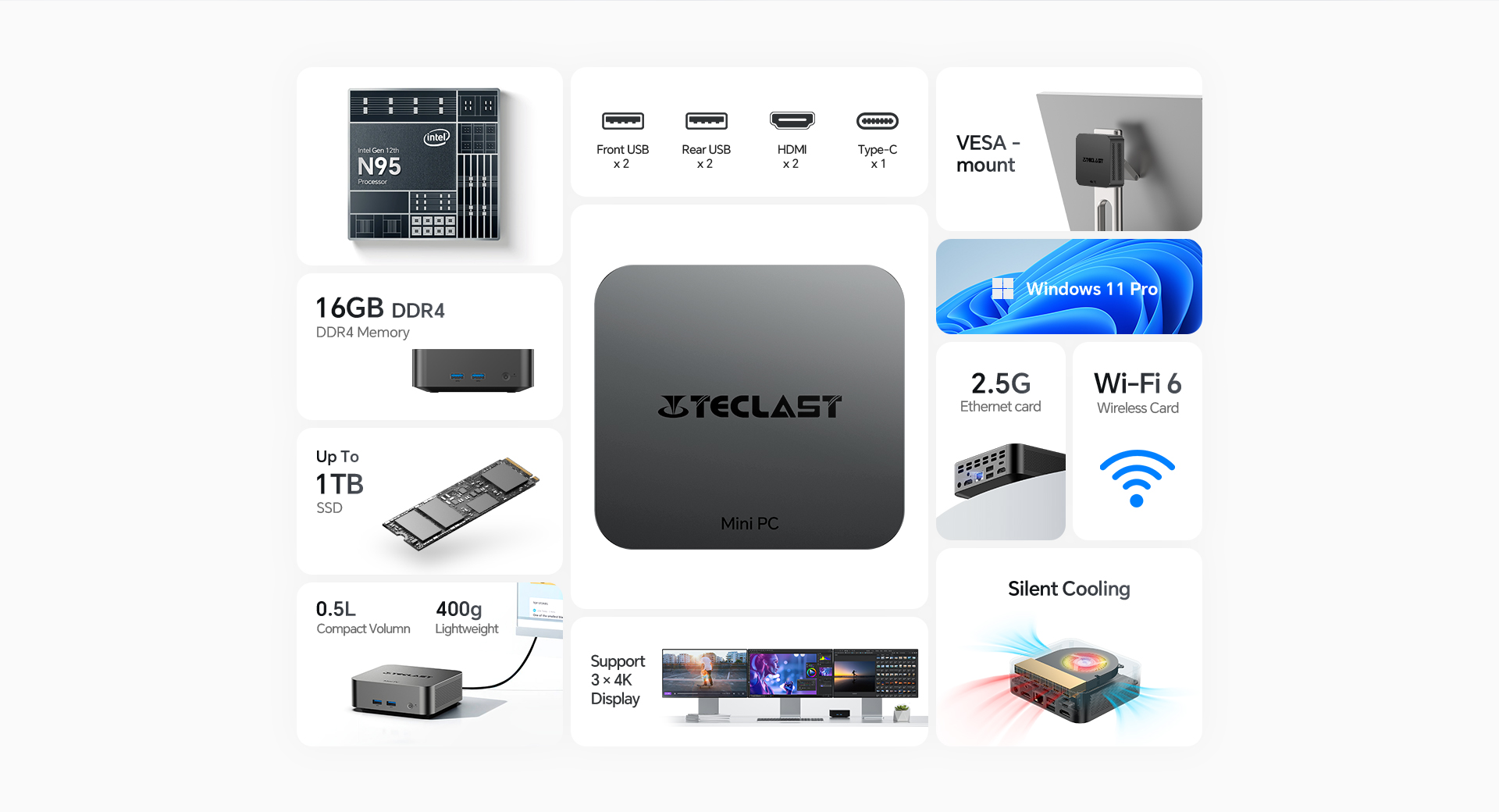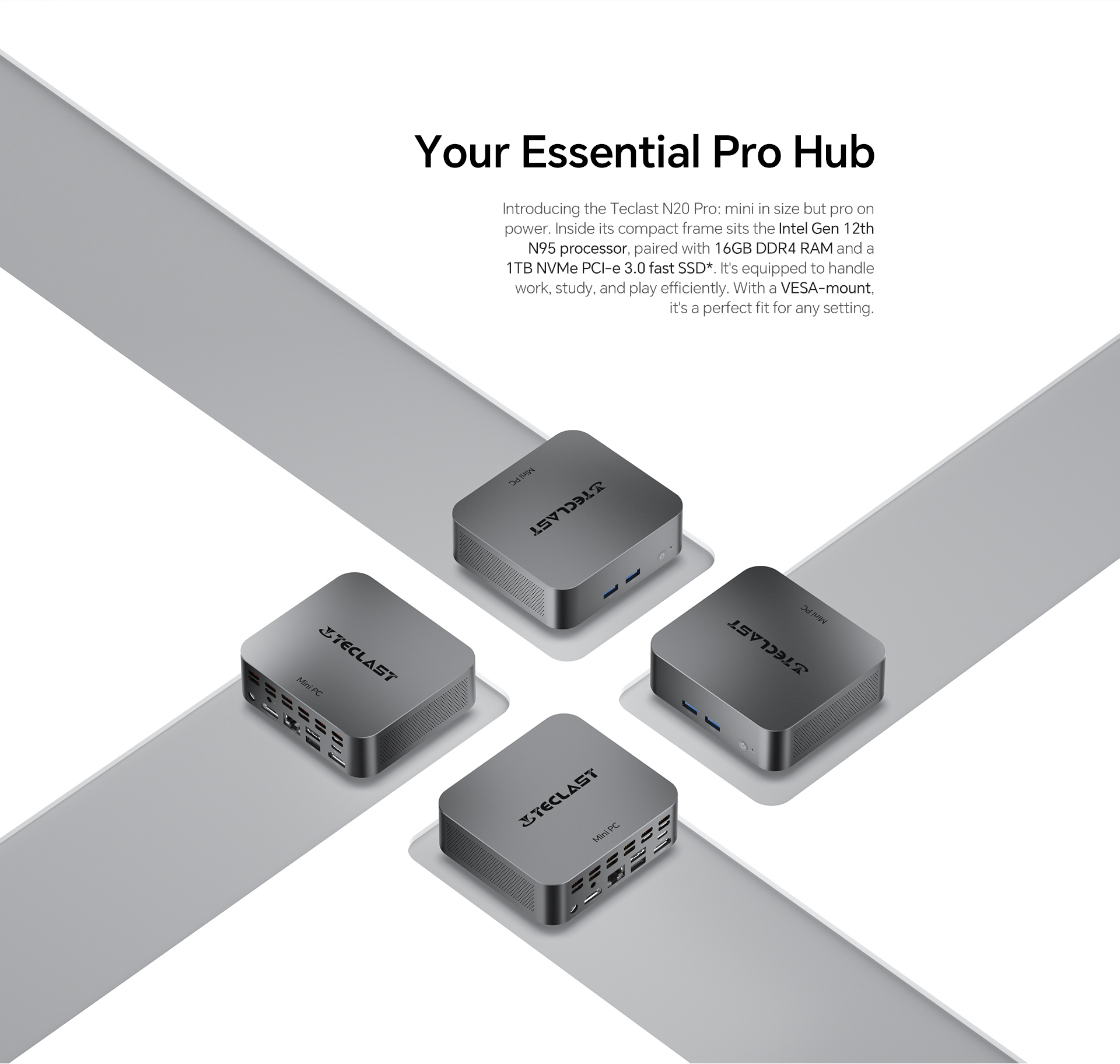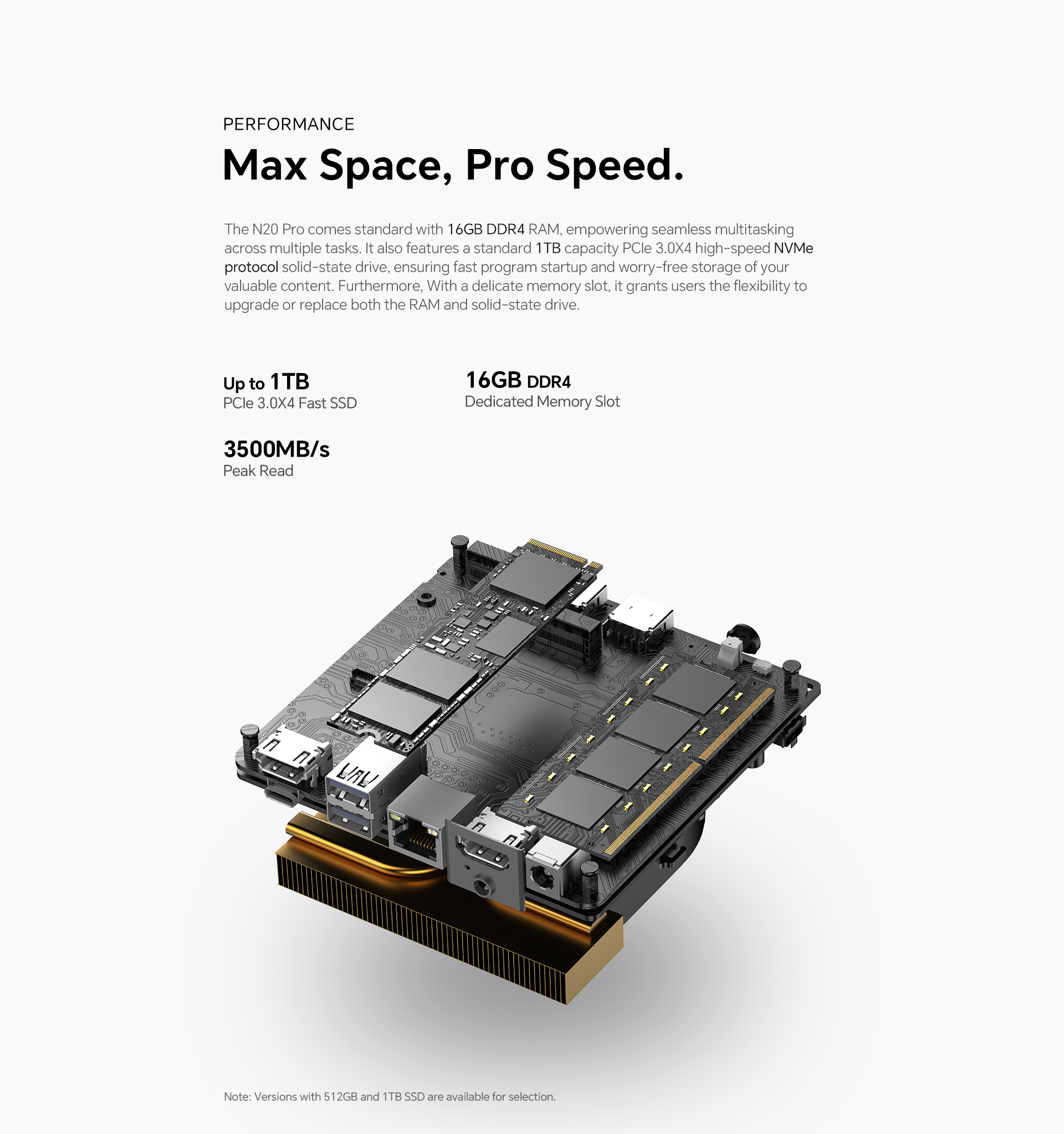 [High-Performance CPU] The N20 Pro boasts an Intel N95 processor from the 12th Gen Alder Lake series, with a quad-core setup peaking at 3.4GHz for faster performance.