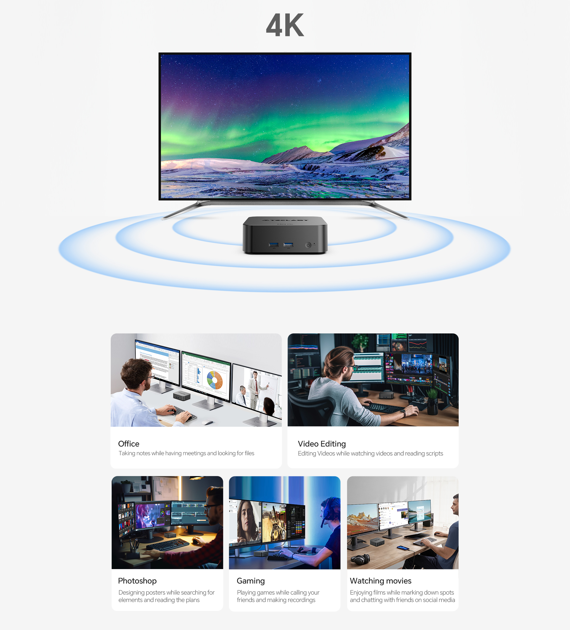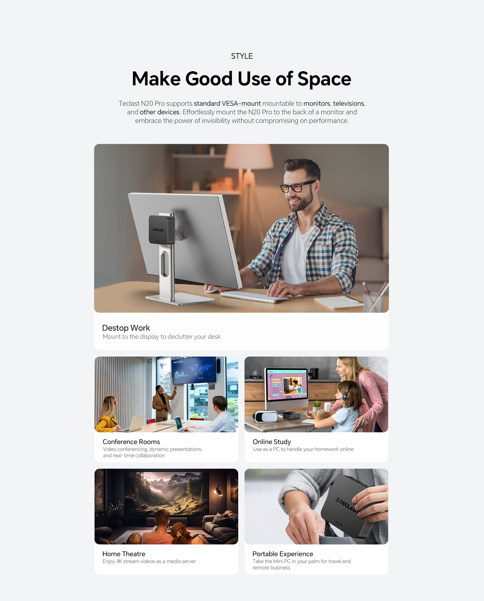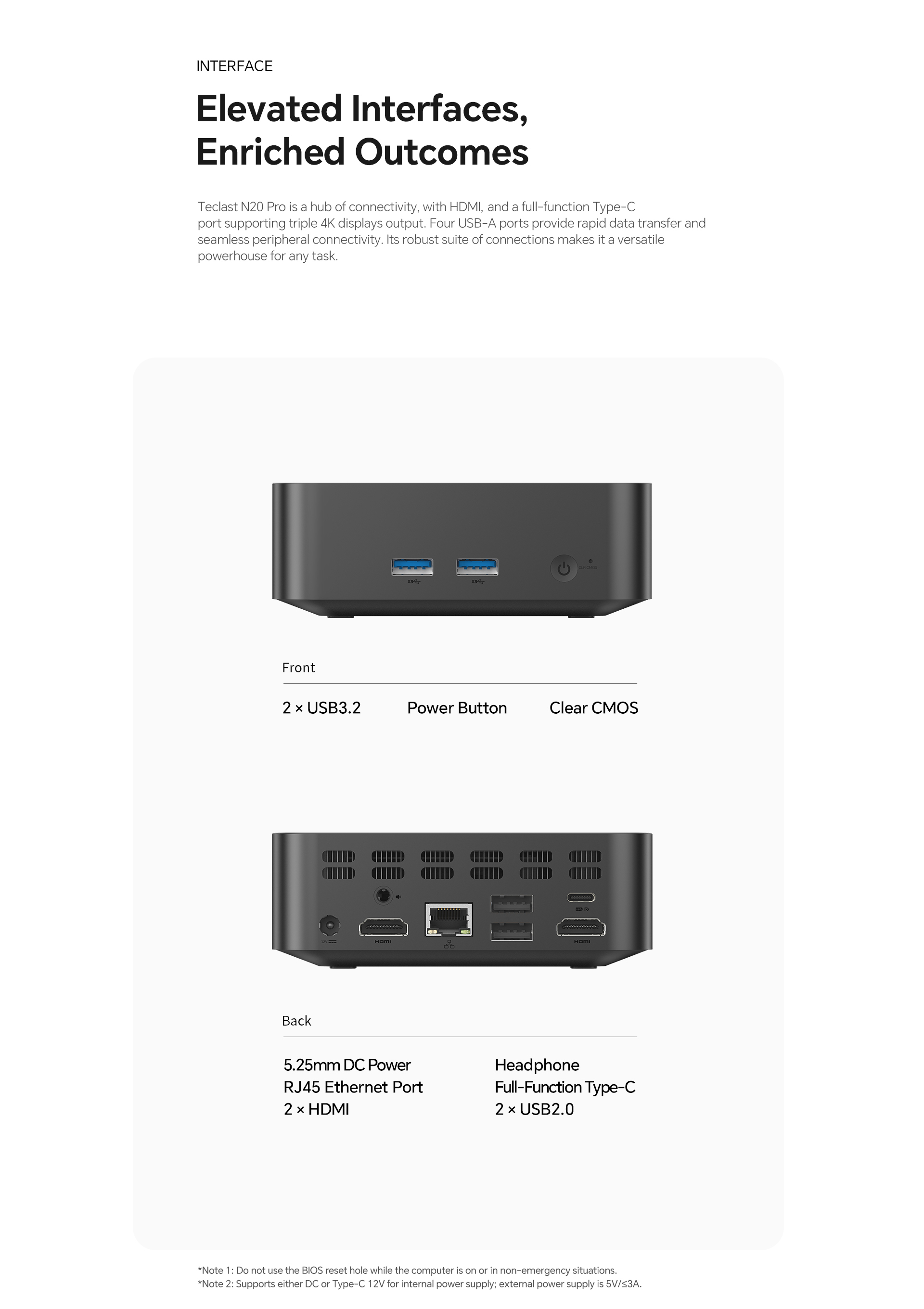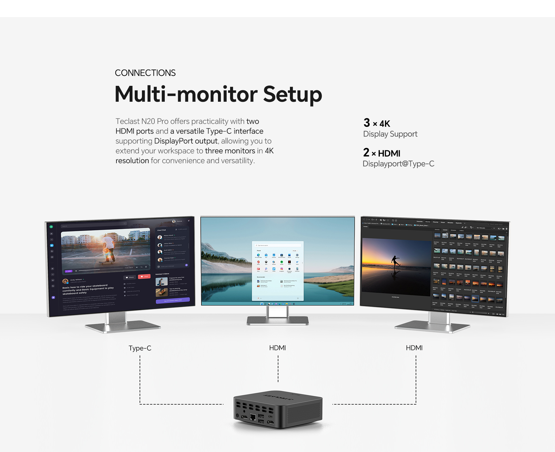 [Extensive Connectivity] The N20 Pro features dual HDMI, a full-function Type-C port for triple 4K displays, and four USB-A ports for comprehensive connectivity.