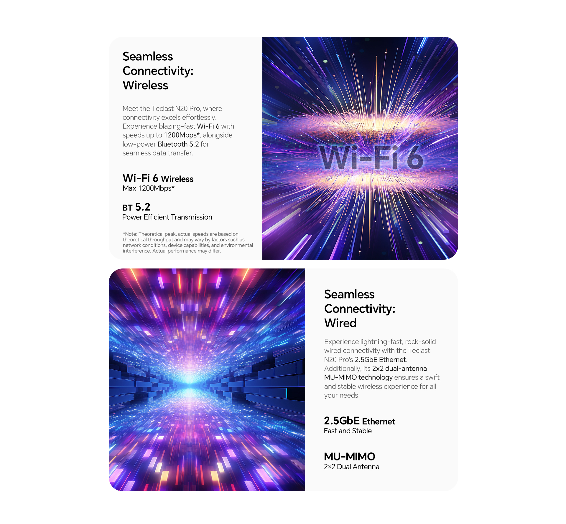 [Upgraded Graphics] Featuring Intel 12th Gen UHD graphics with 16 Execution Units, the N20 Pro reaches 1.2GHz, delivering a 58% performance increase and supporting advanced DirectX 12.1 and AV1 decoding.