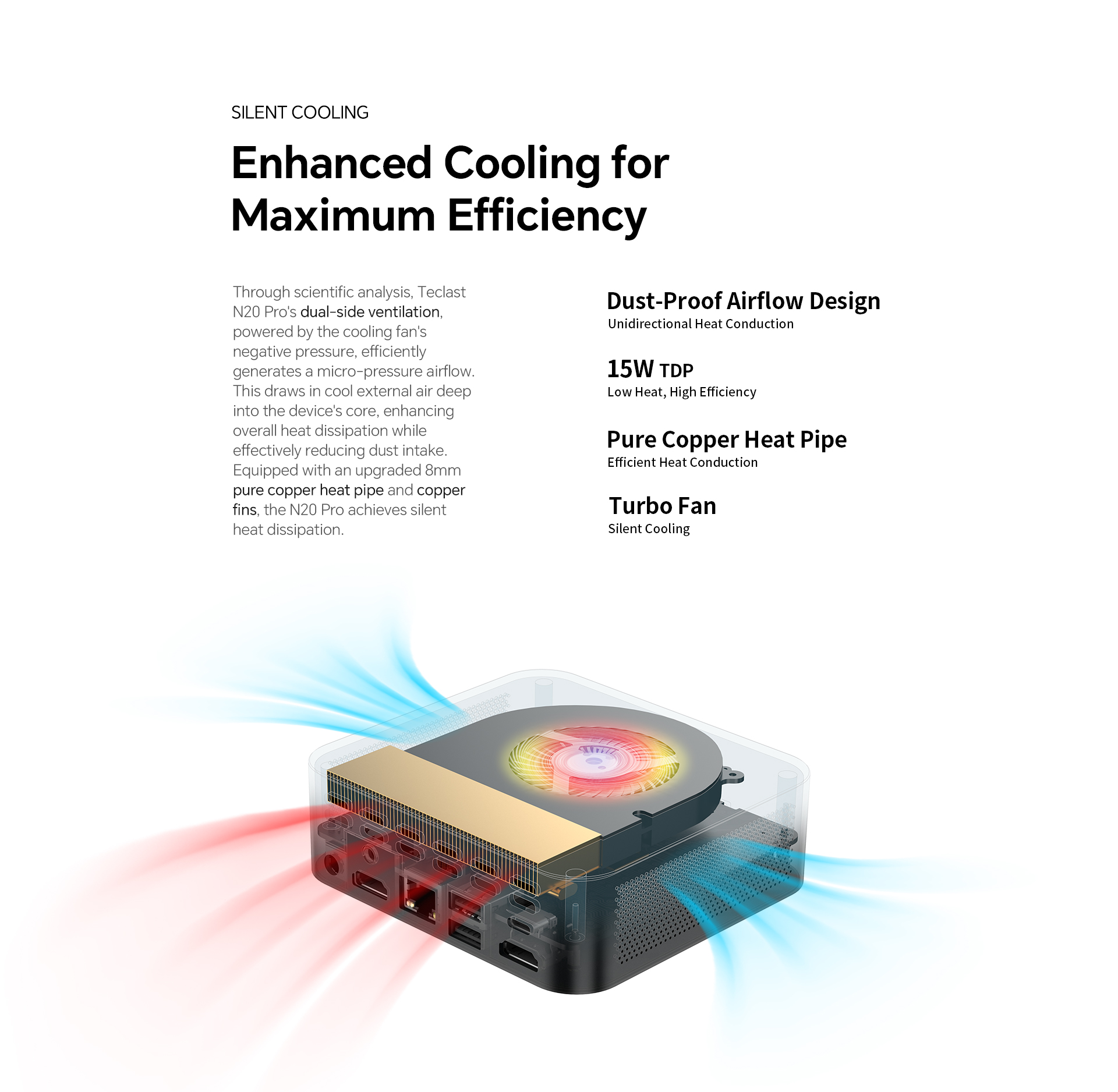 [Quiet Cooling System] An 8mm copper heat pipe with fins ensures silent and efficient cooling, maintaining optimal performance quietly.