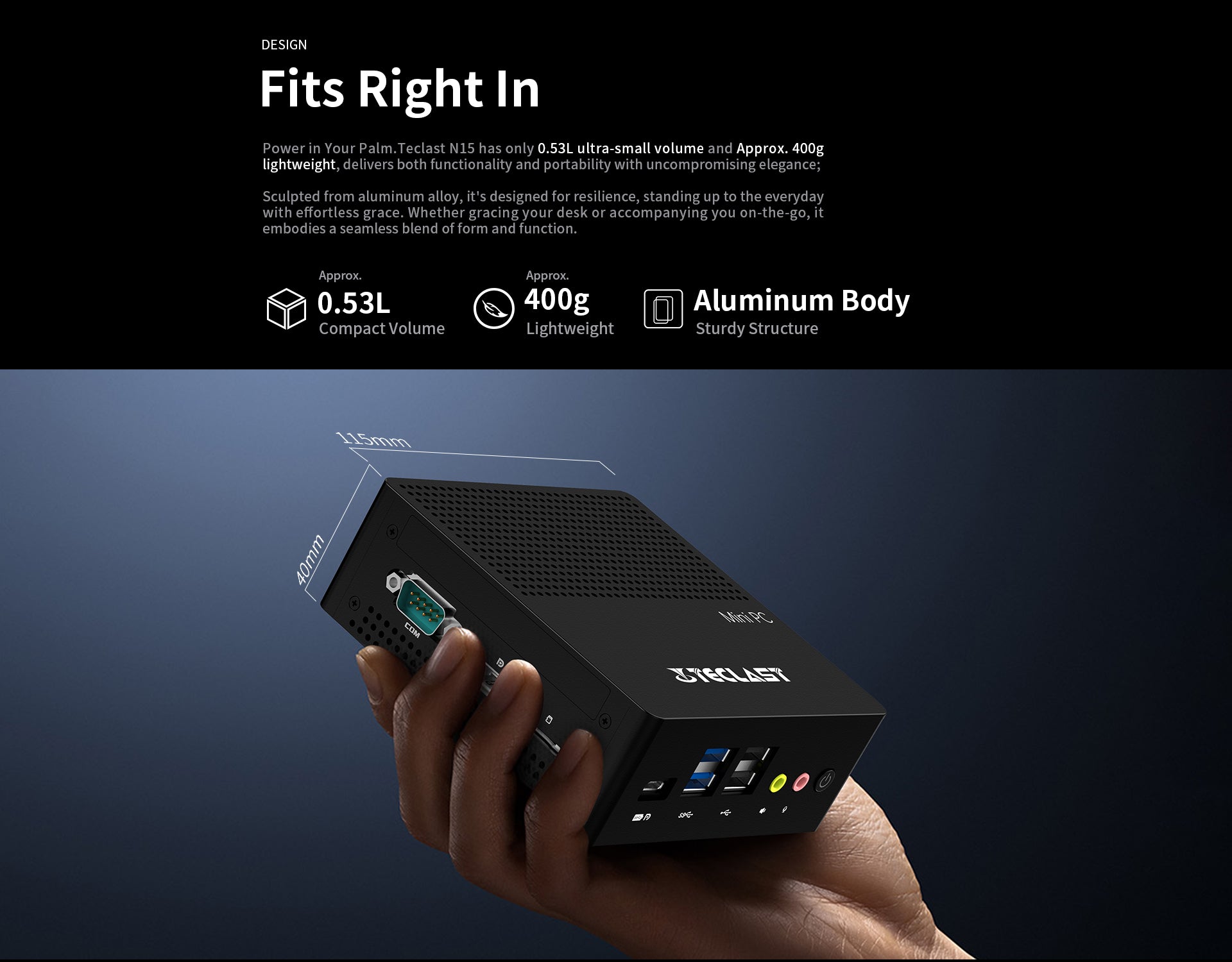 [Lightweight & Portable] N15 defines elegance and portability in its ultra-compact 0.53L volume and lightweight design of approximately 400g. Crafted from durable aluminum alloy, it's designed for resilience and is suitable for a wide range of applications.