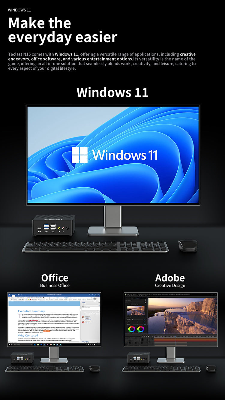 [Powered by Windows 11] N15 comes with Windows 11. It's versatile, supporting a wide range of applications, from creative endeavors and office software to gaming.