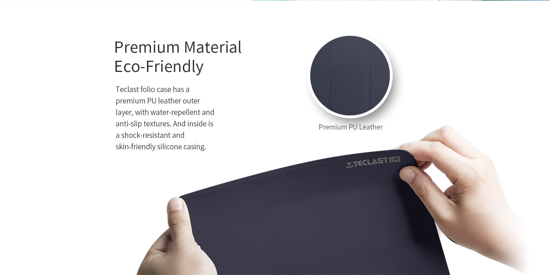 La cubierta tipo folio está hecha de cuero PU con una funda de goma suave para proteger la pantalla de su tableta contra rasguños mientras se siente bien al tacto.