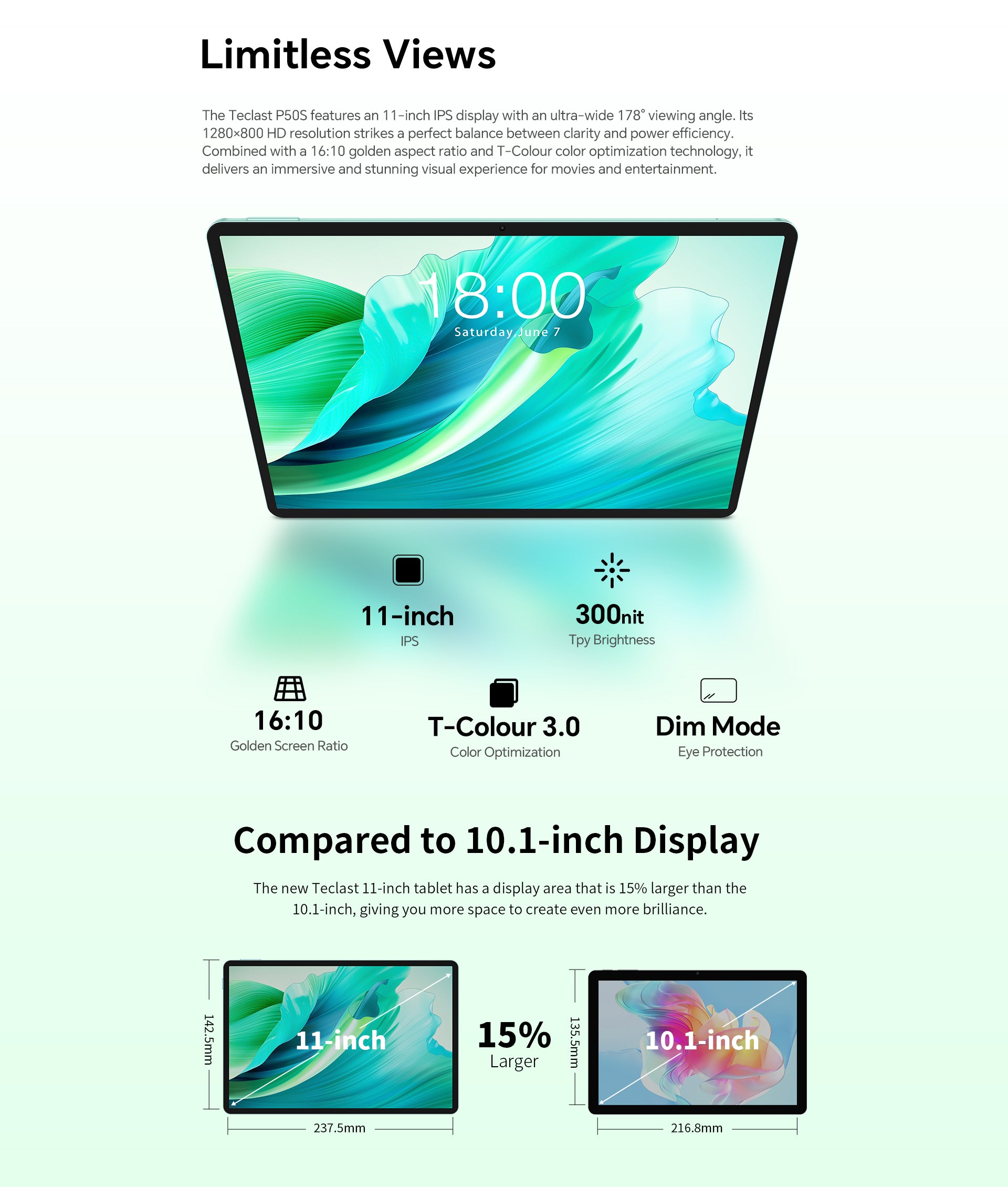 [Pantalla de confort visual de 11 pulgadas] Disfrute de una visualización cómoda con la pantalla 16:10 de 11 pulgadas, resolución de 1280 x 800, certificada por TÜV Rheinland para minimizar la fatiga visual.