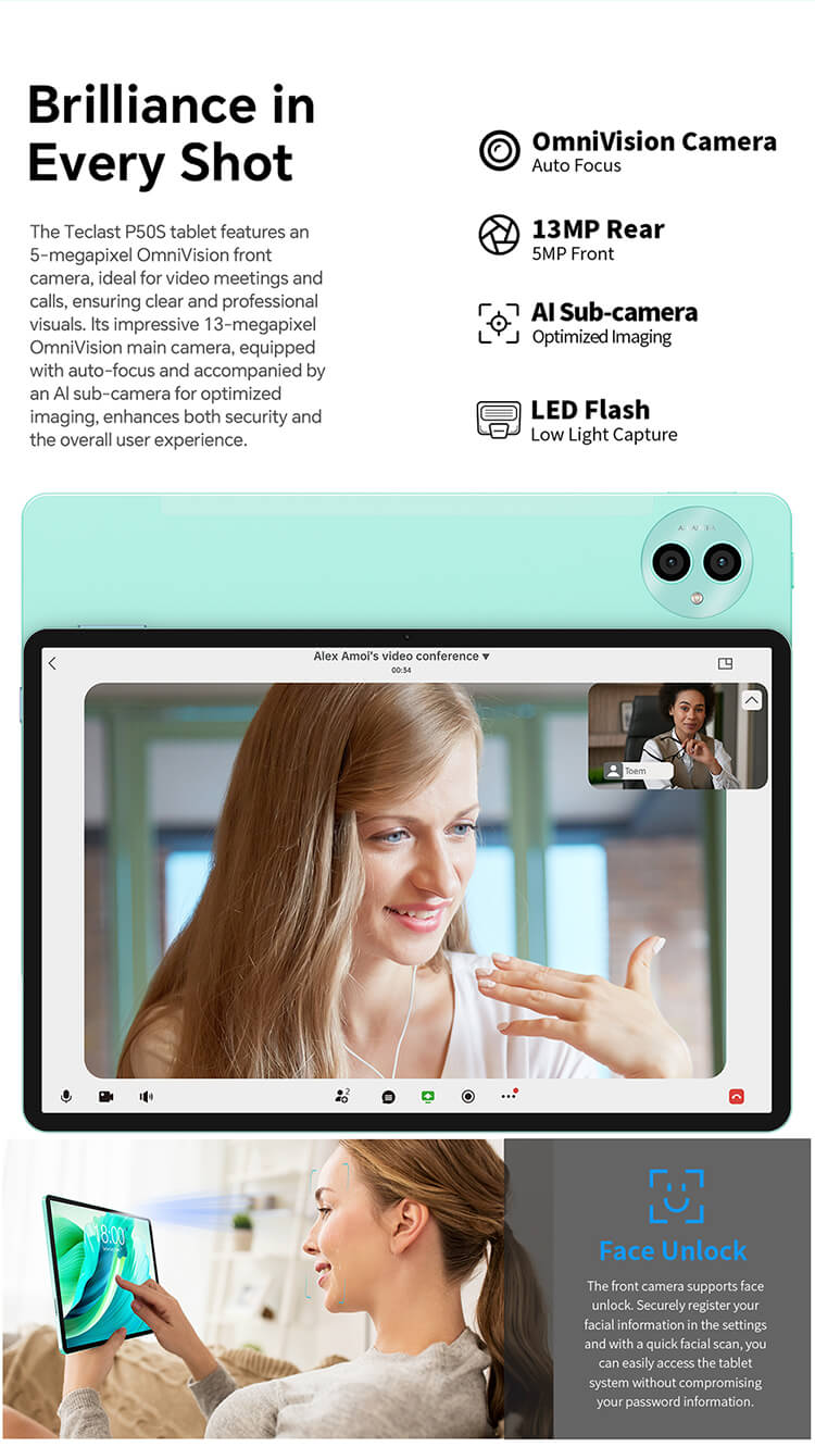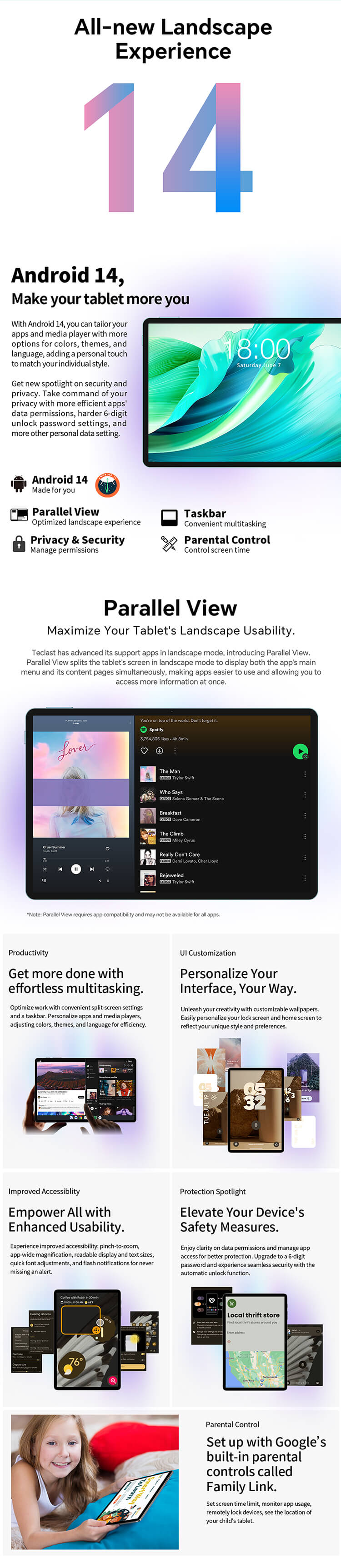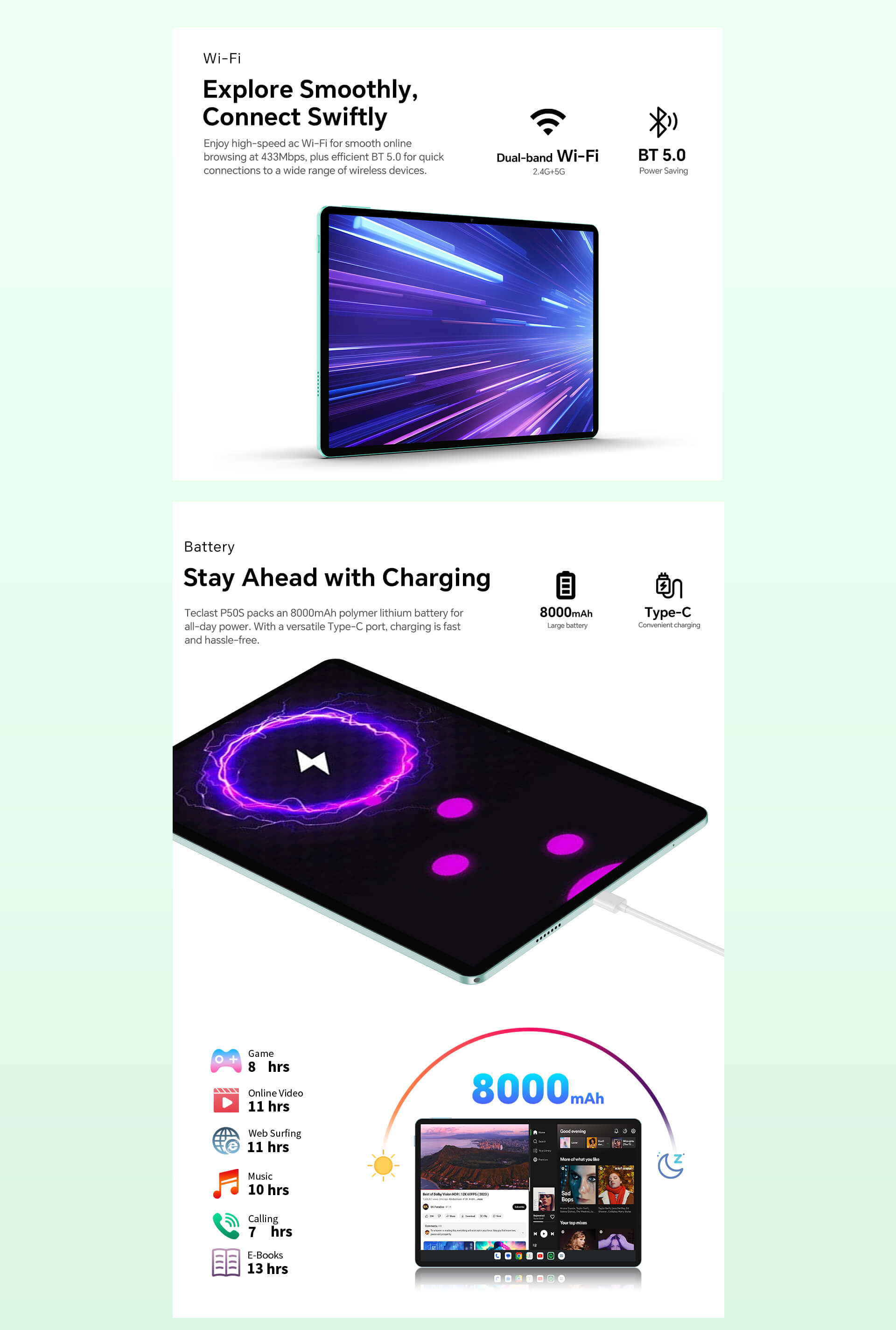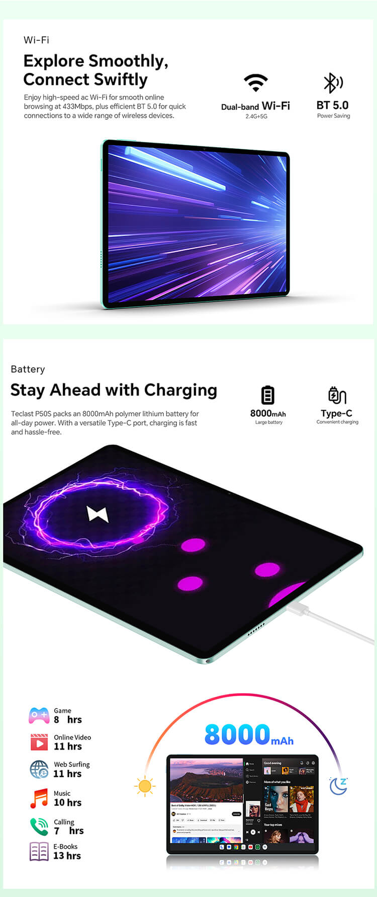 [Batería de larga duración] Equipada con una batería de 8000 mAh, esta tableta ofrece hasta 13 horas de uso, lo que respalda su día sin recarga constante.