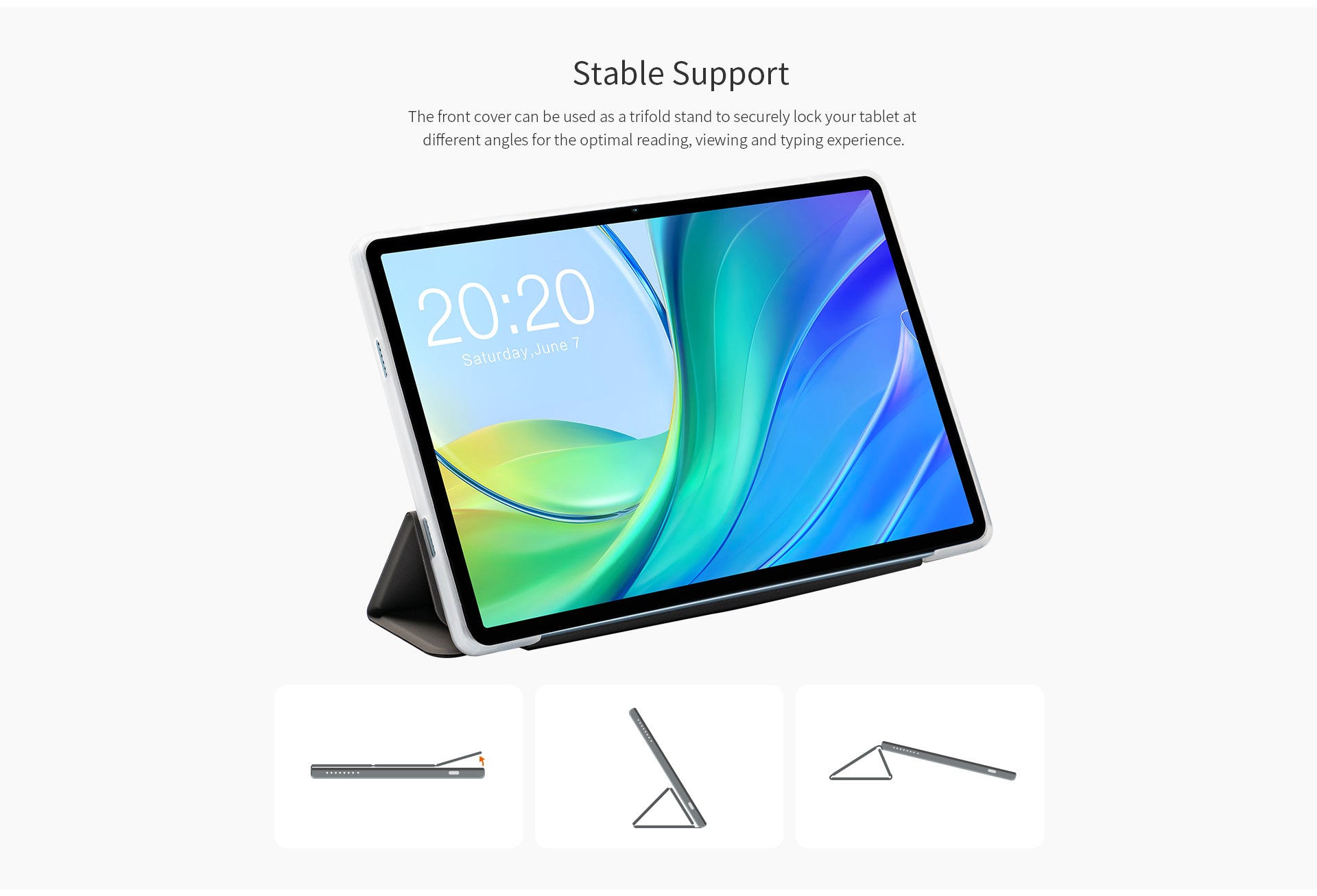La coque avant peut être utilisée comme un support à trois volets pour verrouiller en toute sécurité votre tablette sous différents angles pour une lecture, une visualisation et une lecture optimales. expérience de frappe.