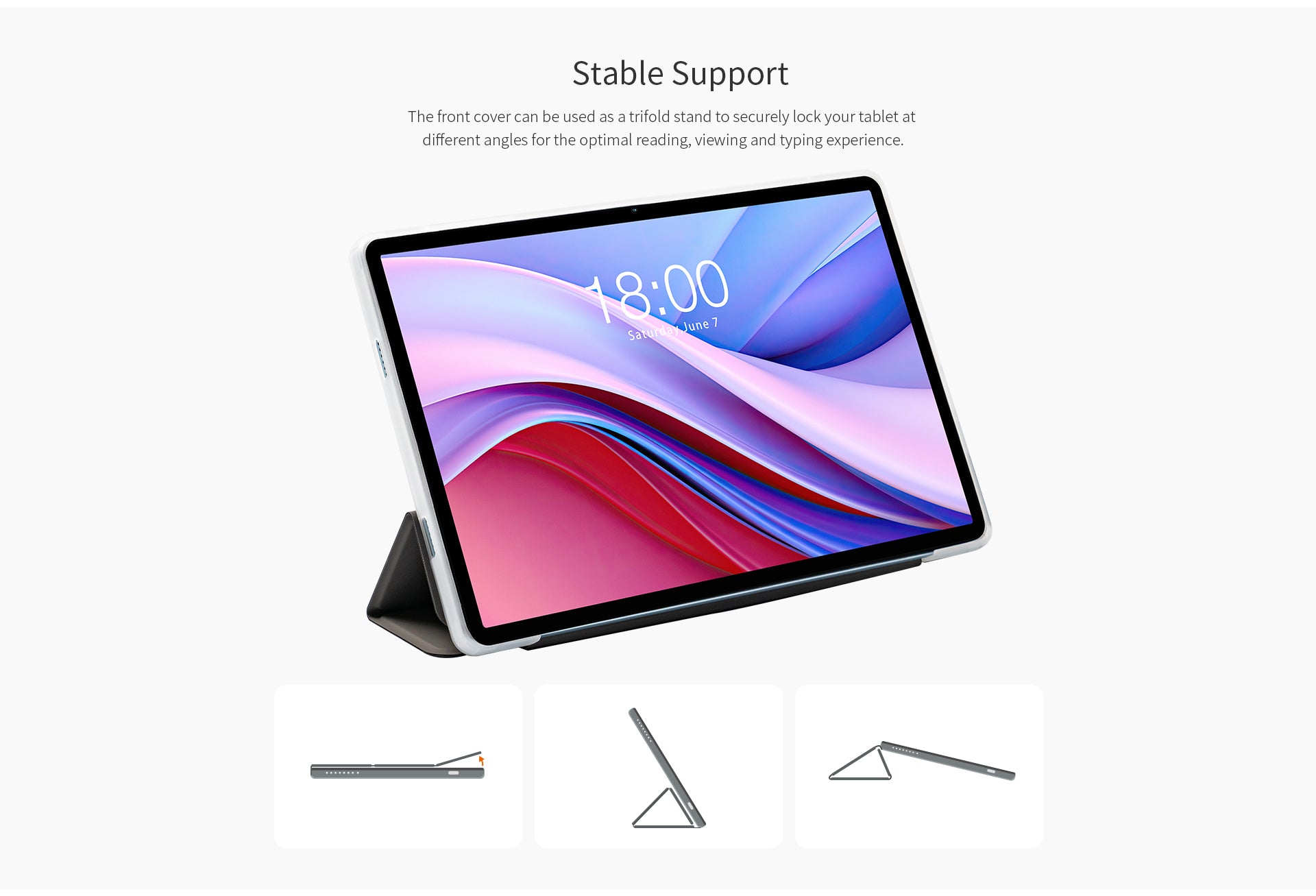 La coque avant peut être utilisée comme un support à trois volets pour verrouiller en toute sécurité votre tablette sous différents angles pour une lecture, une visualisation et une lecture optimales. expérience de frappe.
