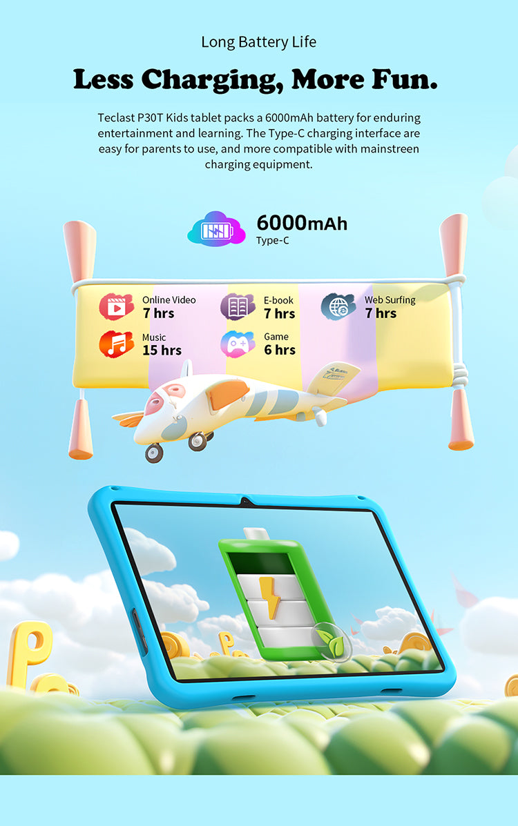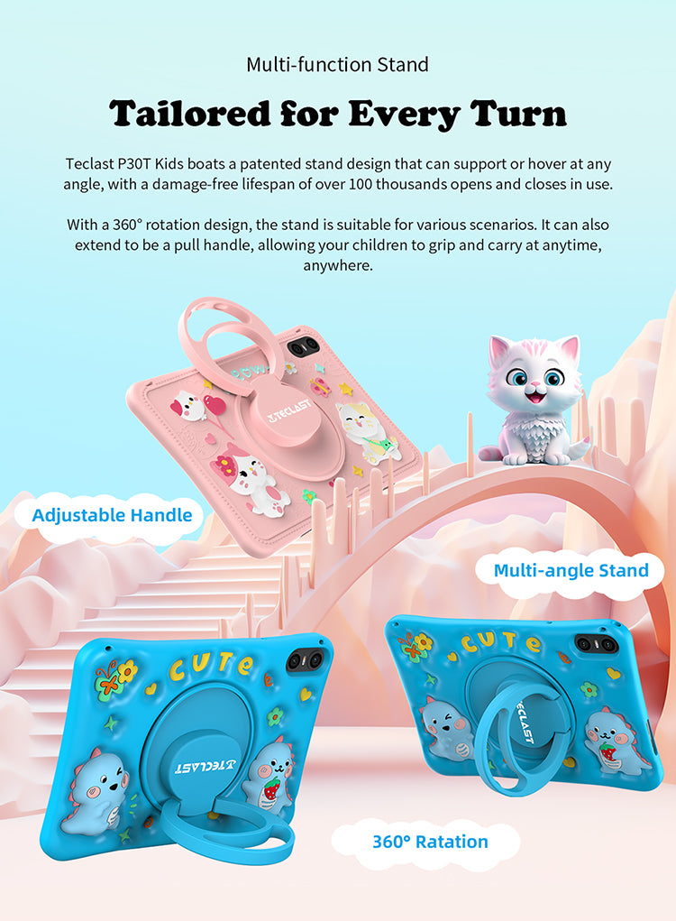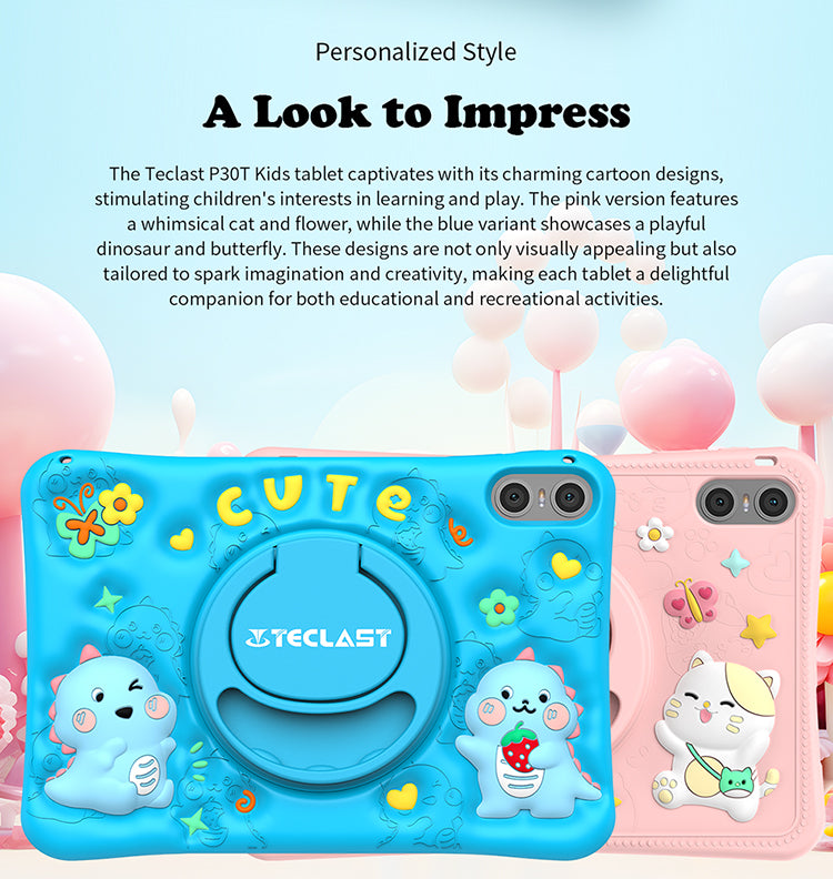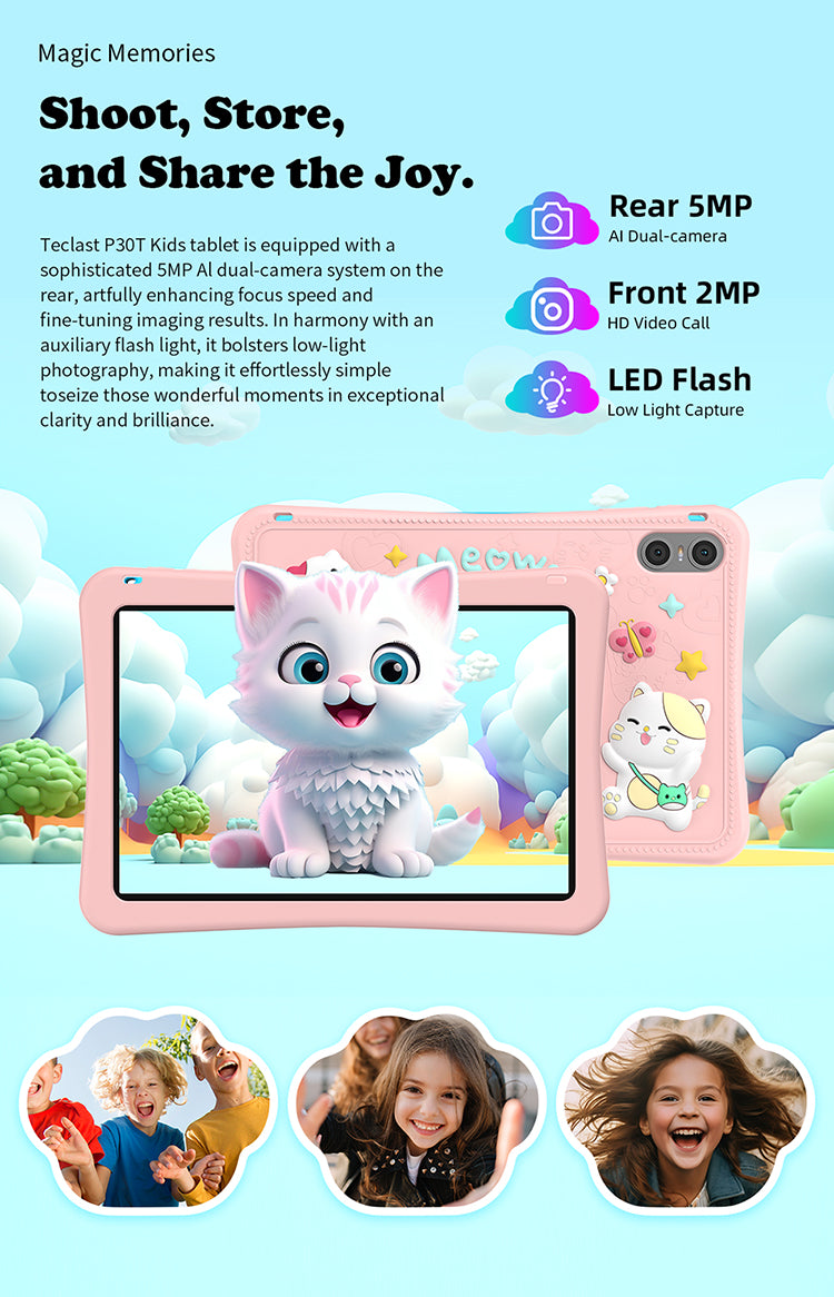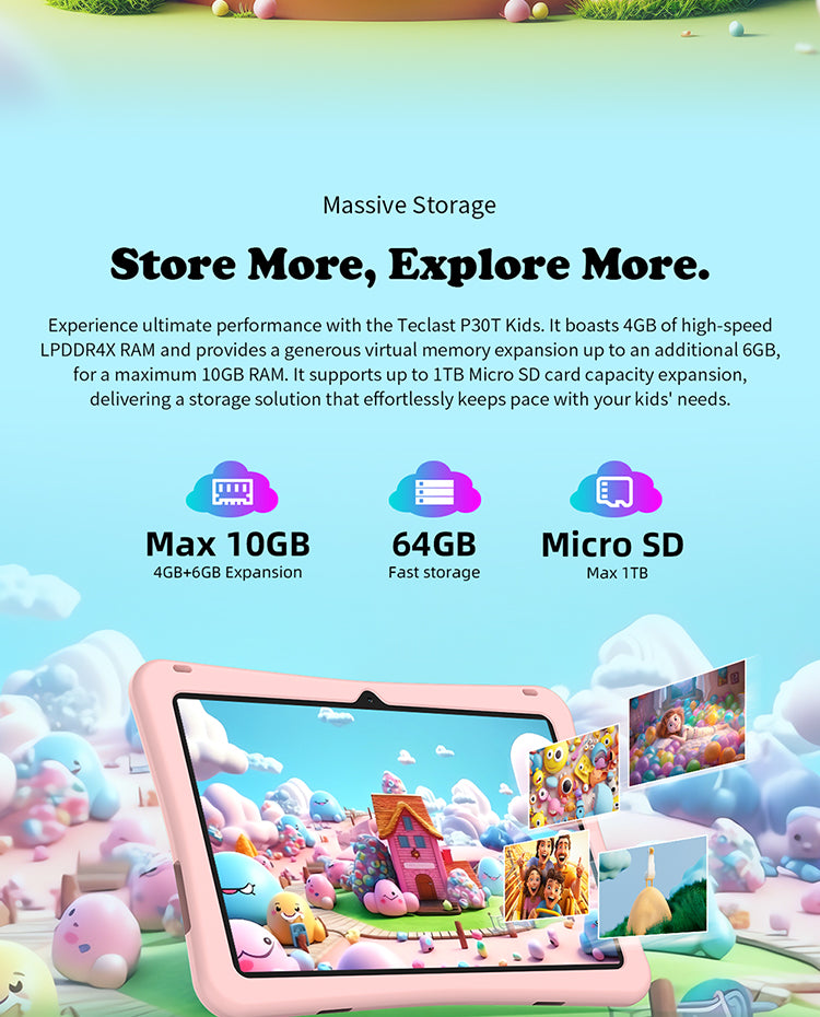 [Performances puissantes] Équipé d'un maximum de 10 Go de RAM (4 Go de base plus 6 Go d'extension) et de 64 Go de stockage, le P30TKids offre des performances fluides et suffisamment d'espace pour des découvertes infinies.