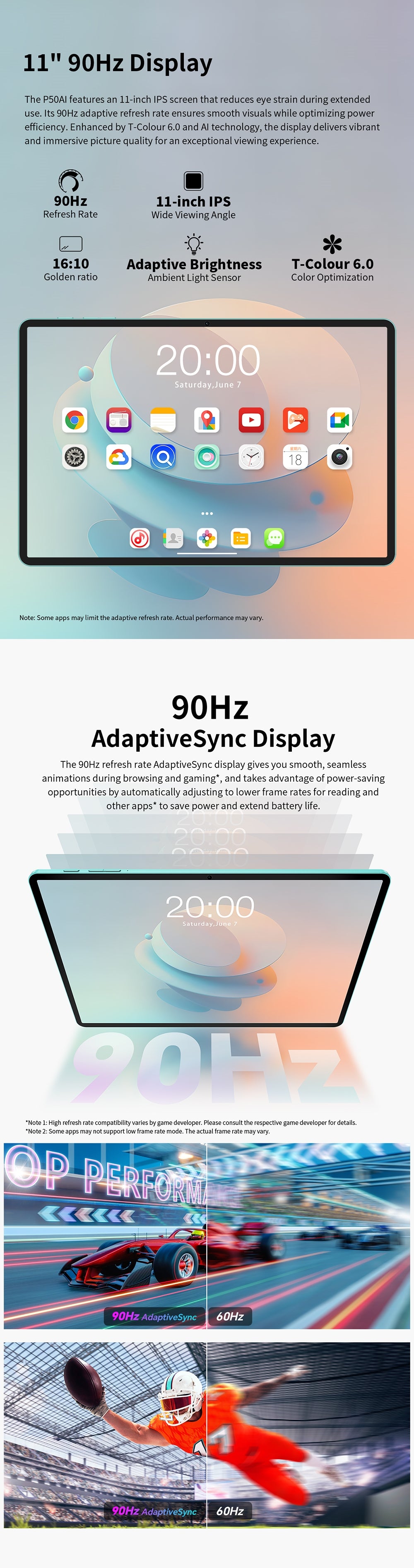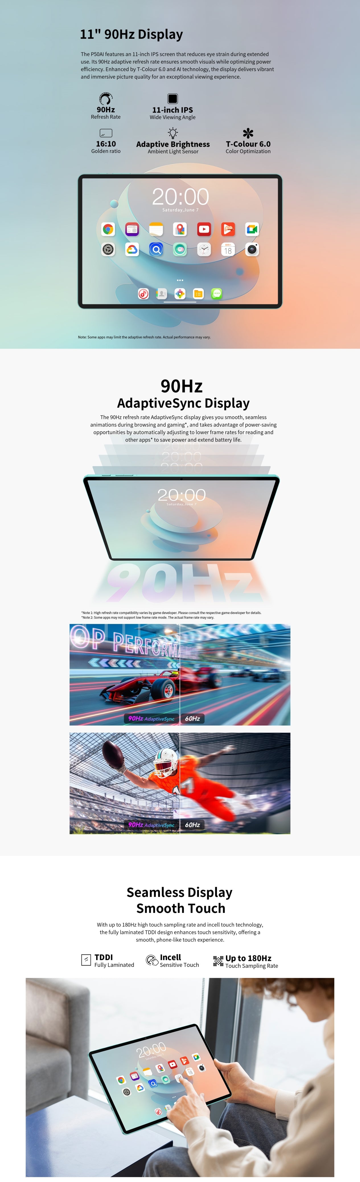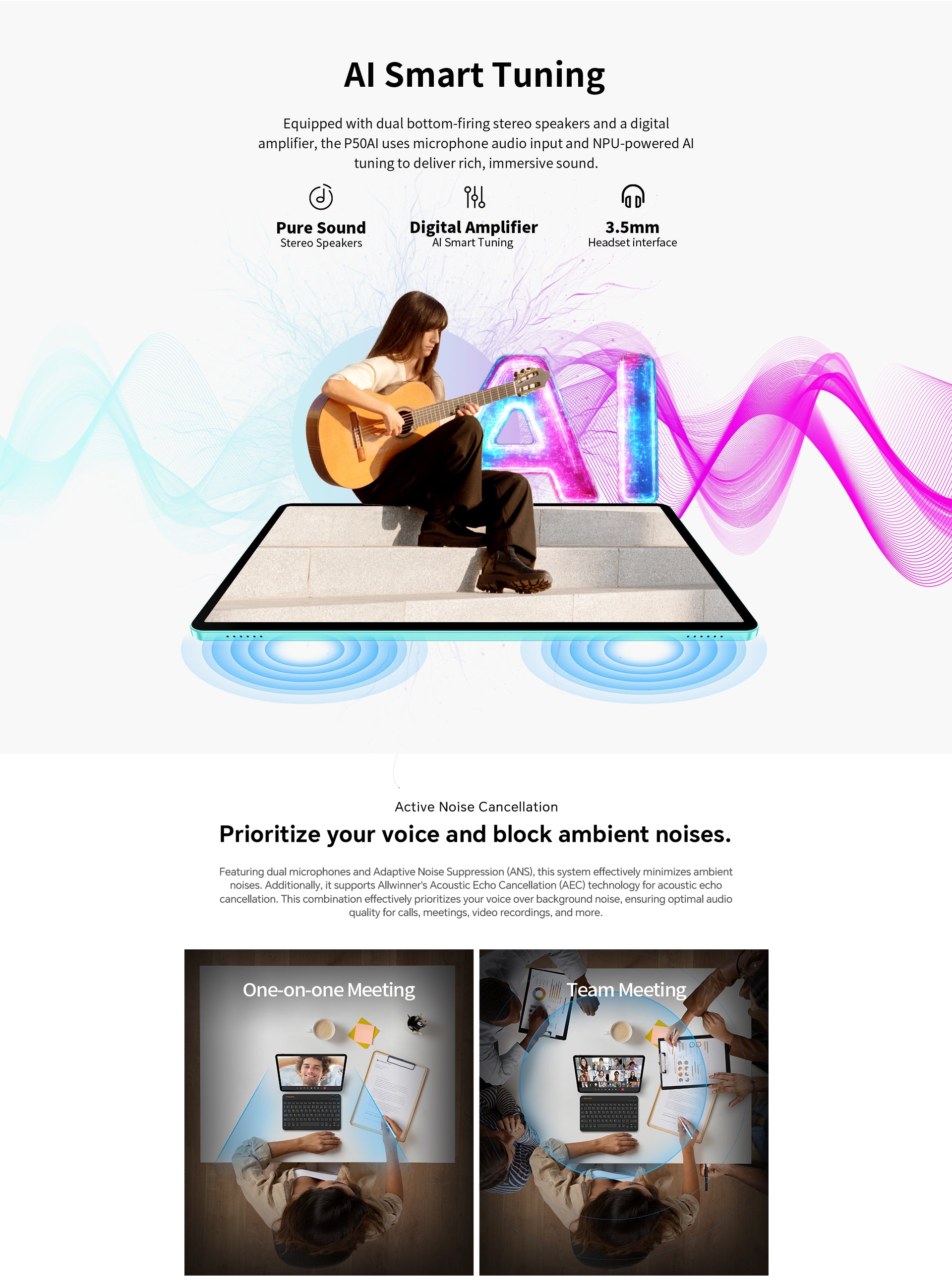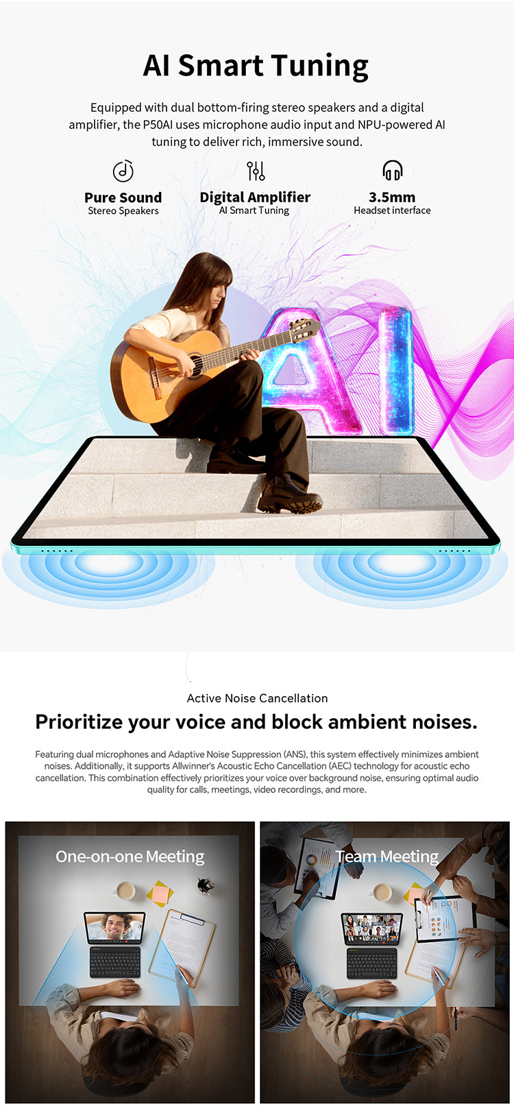 [Allwinner A733 Octa-Core] La tablette P50AI est équipée du puissant processeur Allwinner A733 Octa-Core, offrant un multitâche hautes performances et économe en énergie. Il garantit des temps de réponse rapides, une utilisation plus fluide des applications et des performances optimales pour toutes vos applications.
