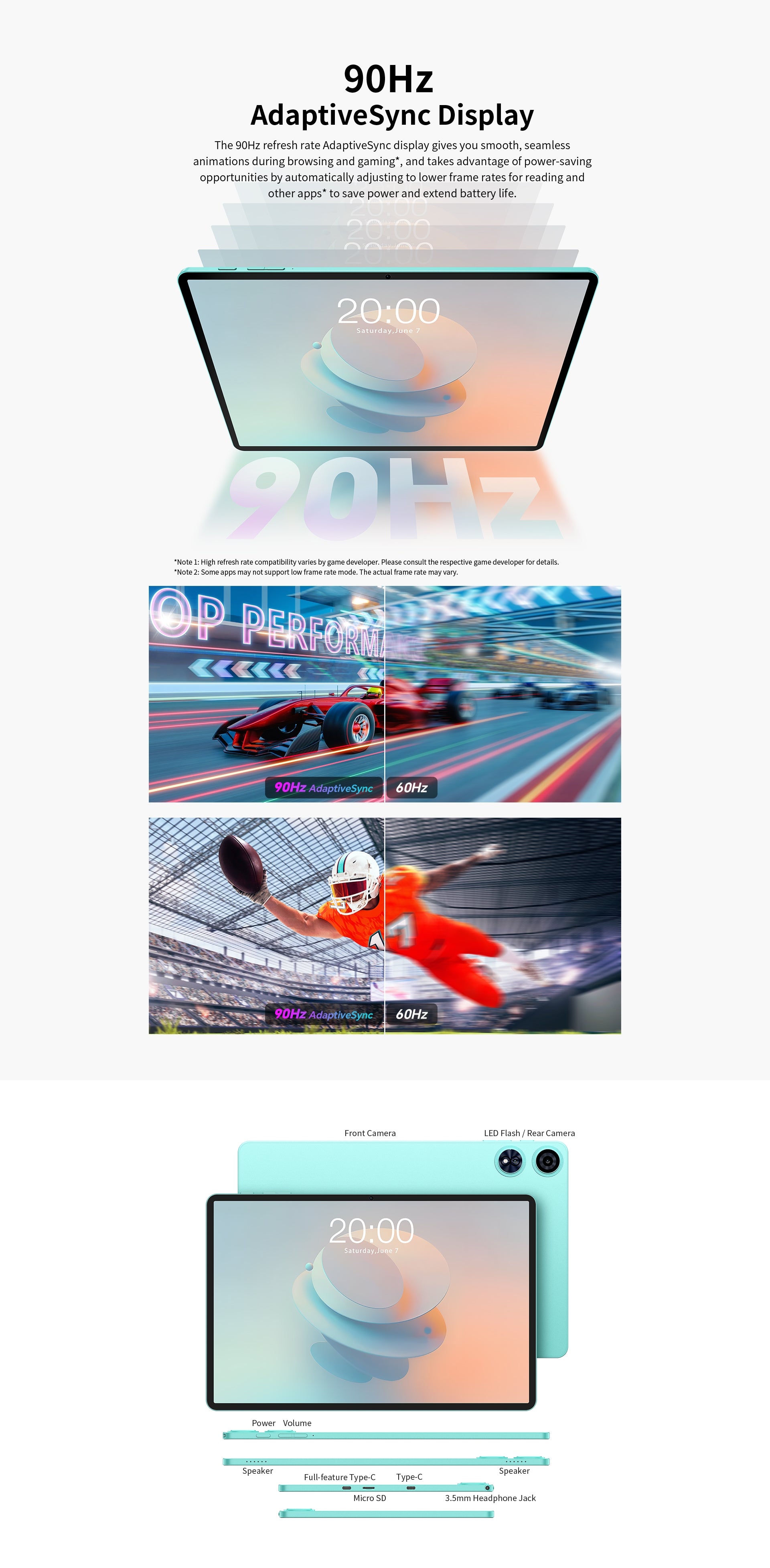 [Affichage du taux de rafraîchissement de 90 Hz de 11 pouces] Profitez d'images fluides sur l'écran de 11 pouces avec un taux de rafraîchissement adaptatif de 90 Hz, parfait pour des transitions plus fluides et une réduction du flou de mouvement. Cet écran offre une expérience dynamique et immersive pour les médias, les jeux et la navigation.