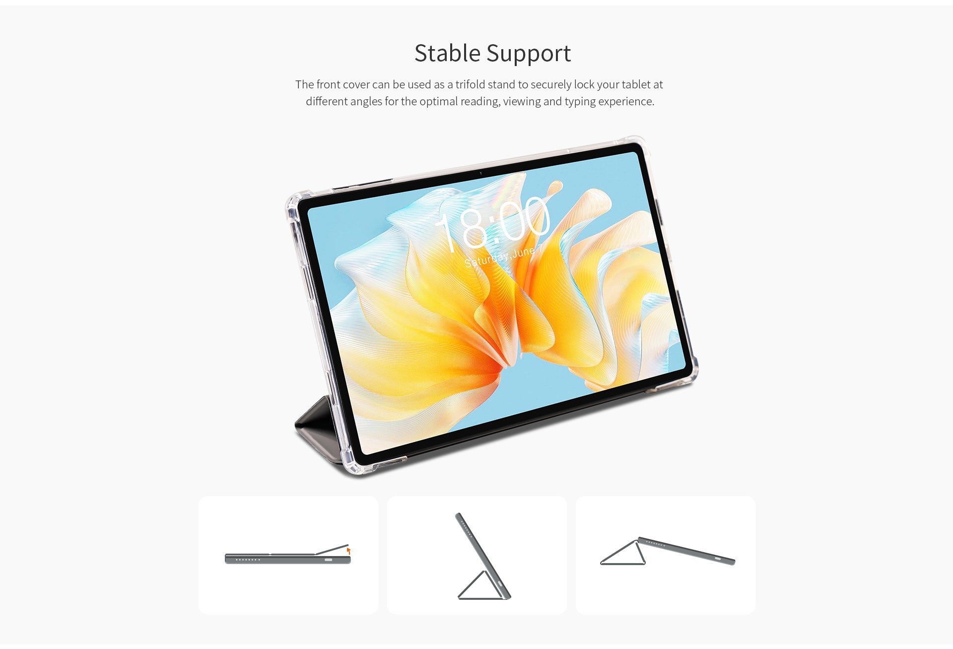 La coque avant peut être utilisée comme un support à trois volets pour verrouiller en toute sécurité votre tablette sous différents angles pour une lecture, une visualisation et une lecture optimales. expérience de frappe.