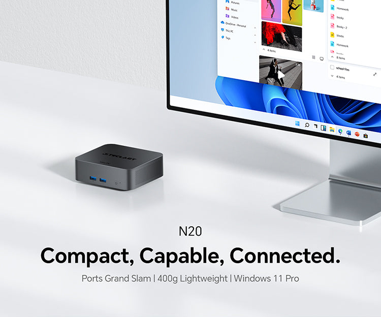 [Windows 11 Pro abilitato] L'N20 esegue Windows 11 Pro, offrendo una gamma versatile di applicazioni, tra cui attività creative, software per ufficio e varie opzioni di intrattenimento.