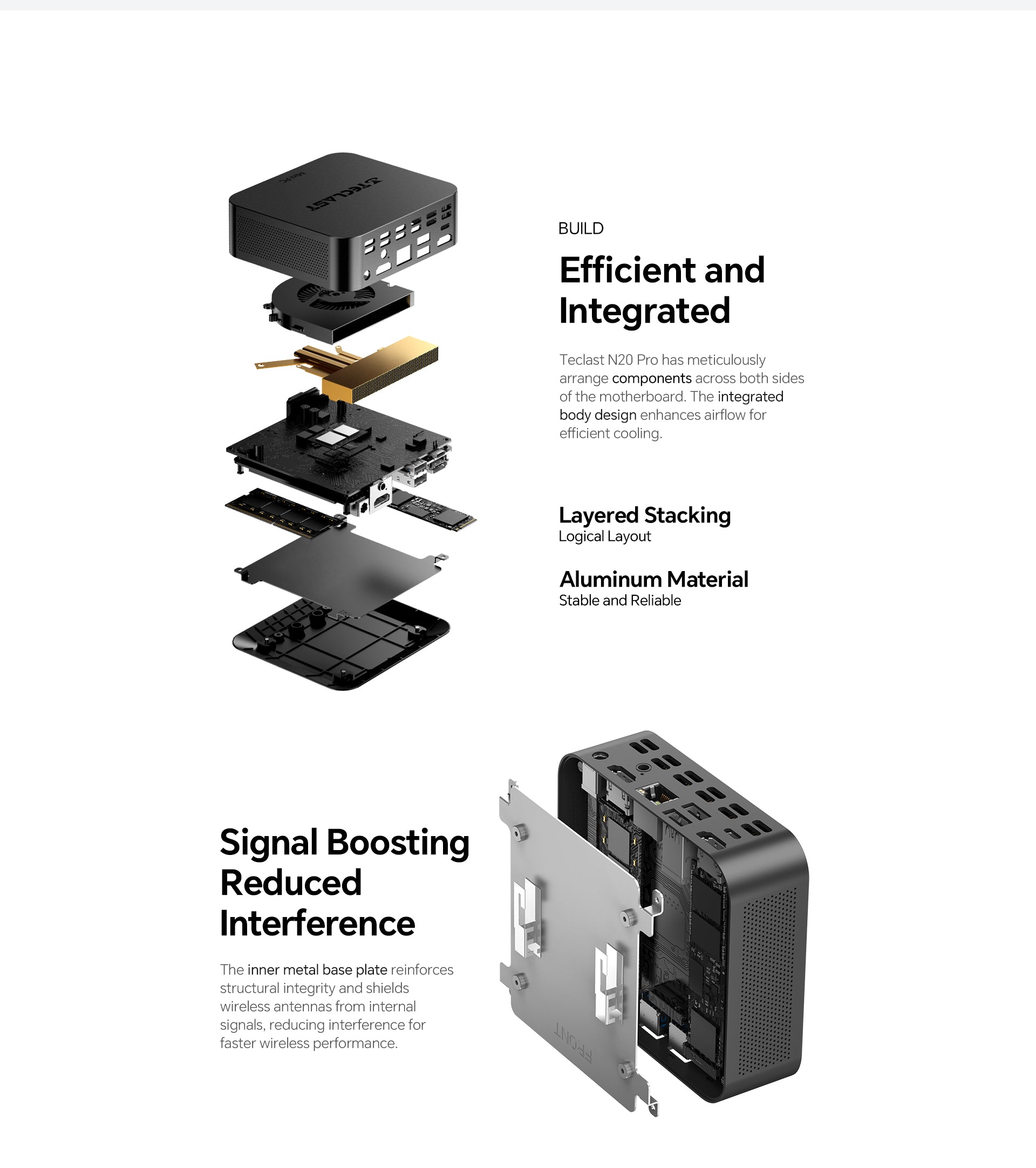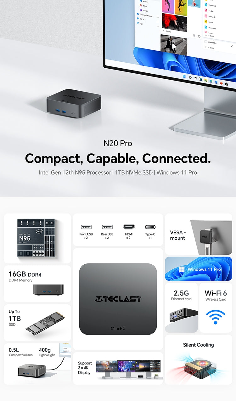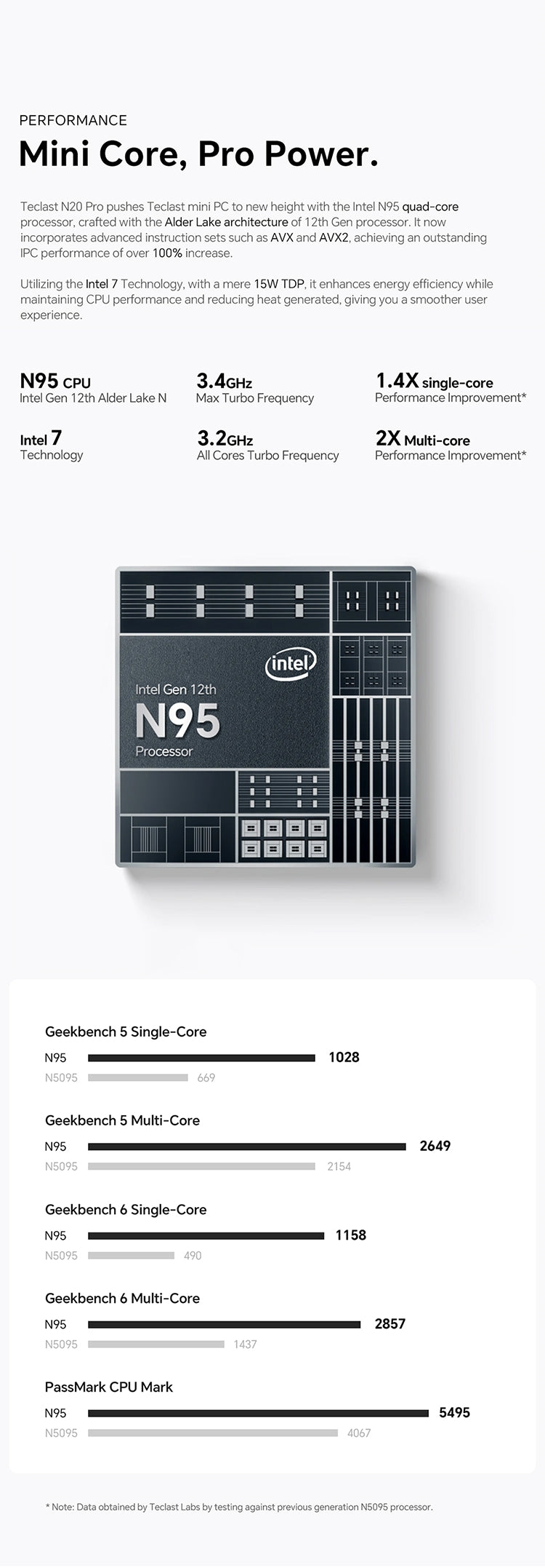 [CPU ad alte prestazioni] Il N20 Pro vanta un processore Intel N95 della serie Alder Lake di 12a generazione, con una configurazione quad-core con un picco di 3.4 GHz per prestazioni più veloci.