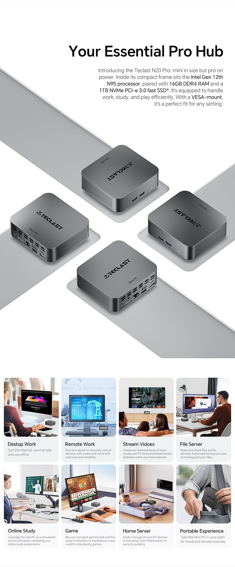 [Archiviazione espandibile] Con 16 GB di RAM DDR4 e SSD NVMe fino a 1 TB, N20 Pro offre archiviazione ad alta velocità, aggiornabile per prestazioni migliorate.