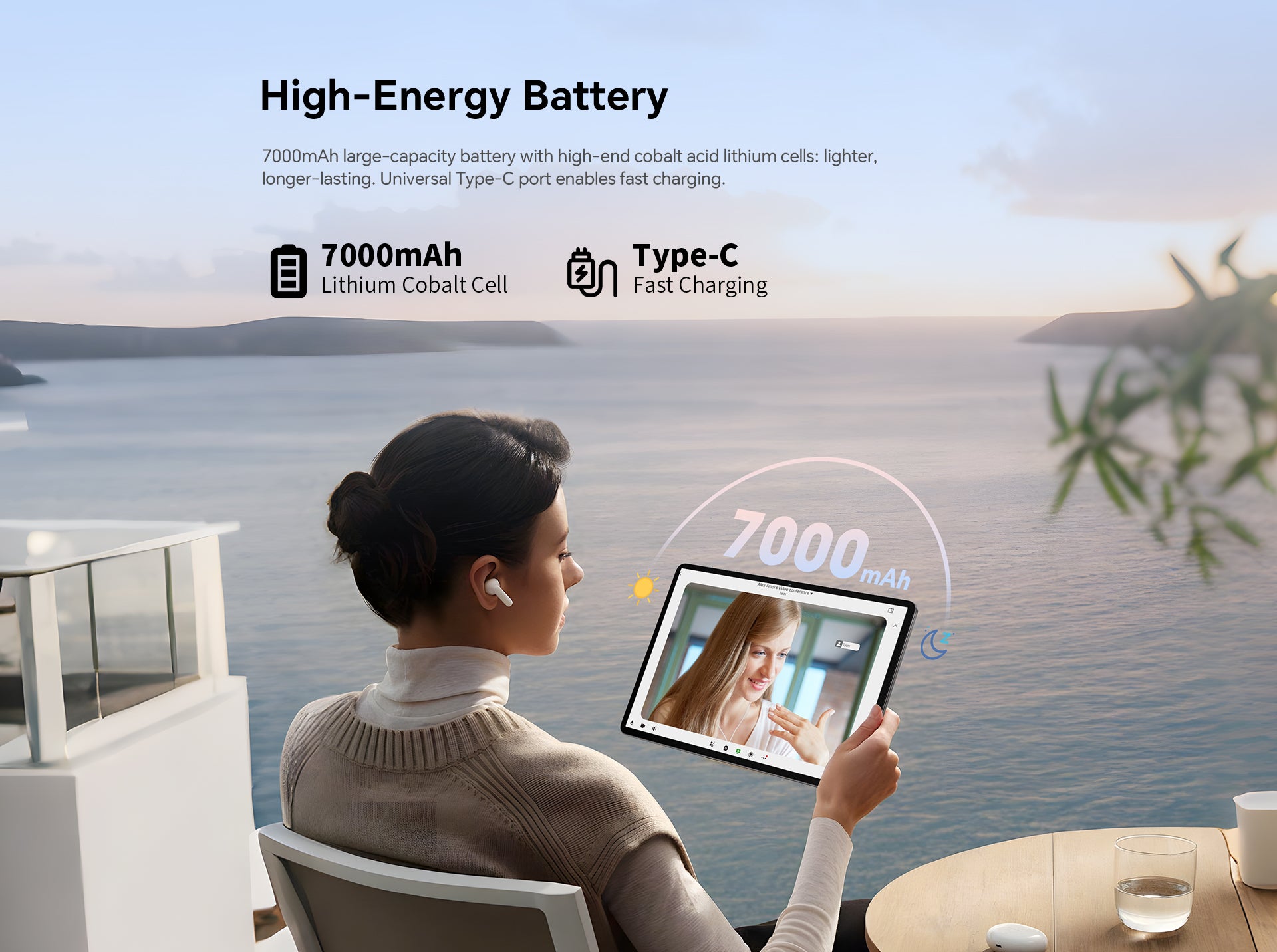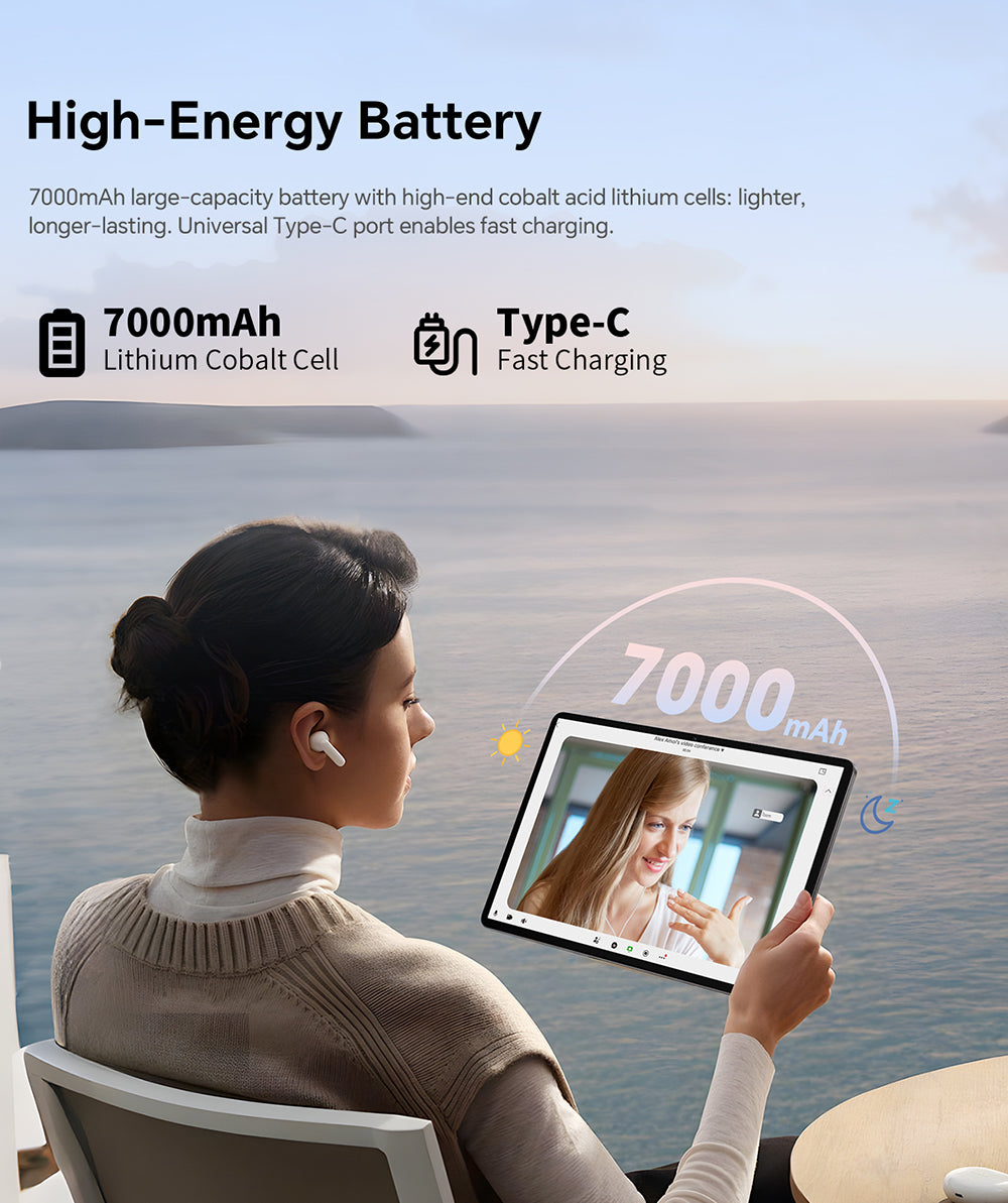 [Extended Battery Life] Equipped with an impressive 7000mAh battery, the P50T offers up to 13 hours of use on a single charge, making it perfect for long working sessions, video streaming, or gaming without worrying about constant recharging.