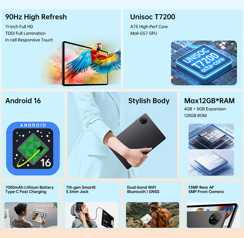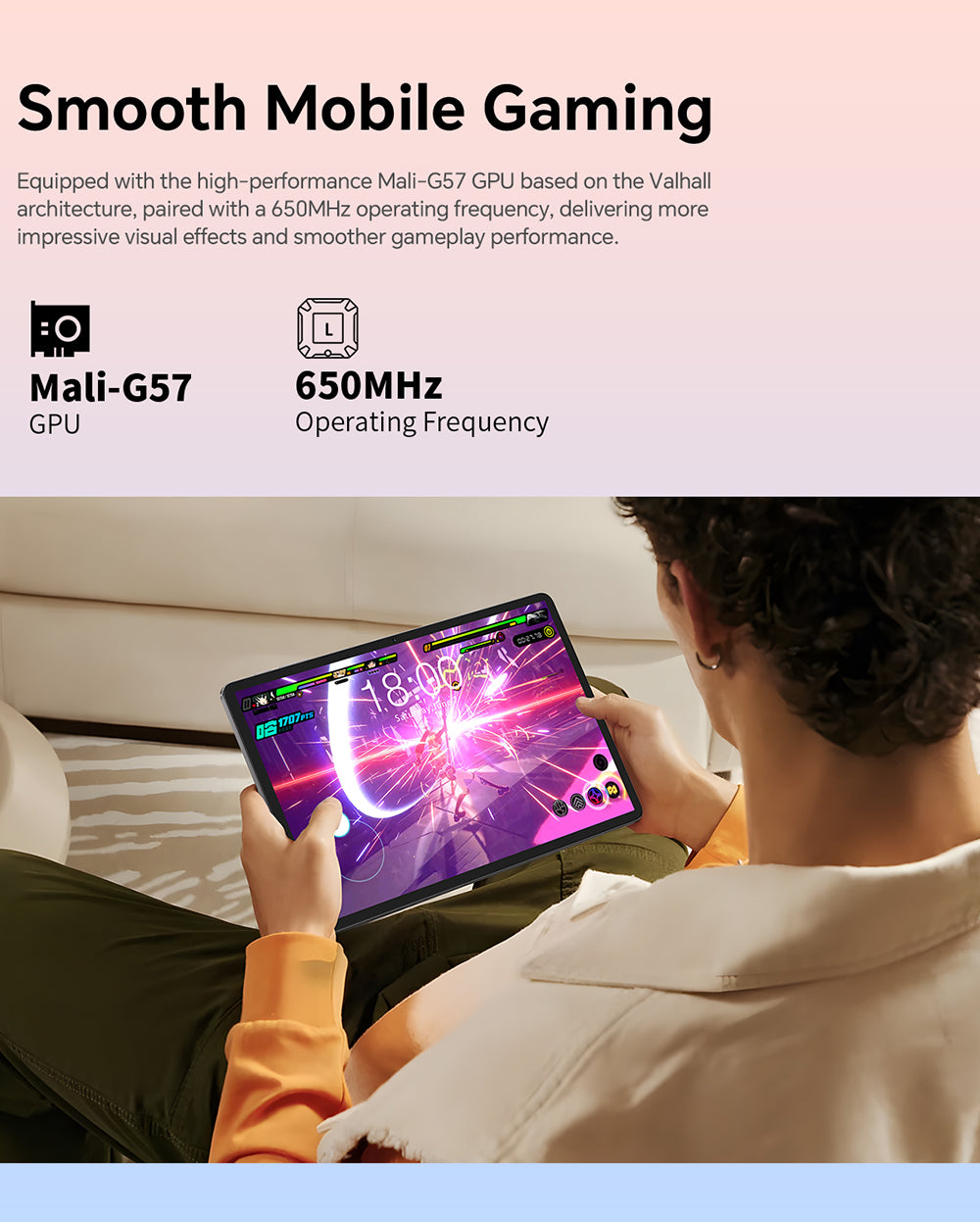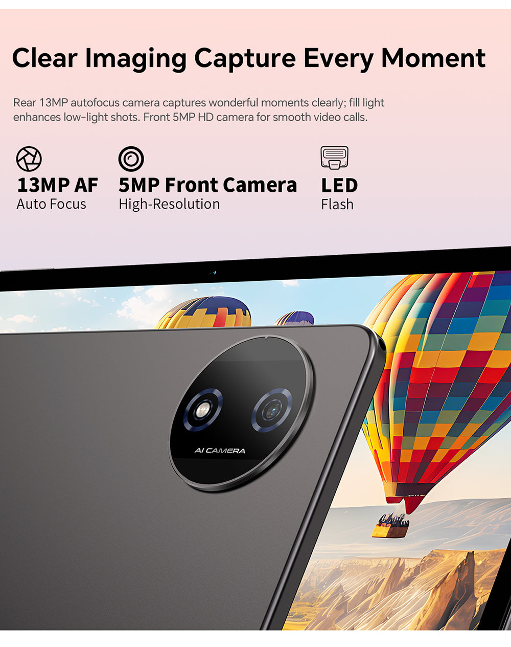 [Powerful Performance] Powered by the Unisoc T7200 Octa-Core processor and Mali-G57 GPU, the P50T handles up to 12GB RAM (4GB base with 8GB expansion) and 128GB storage, delivering fast multitasking performance and ample storage for apps, media, and more.